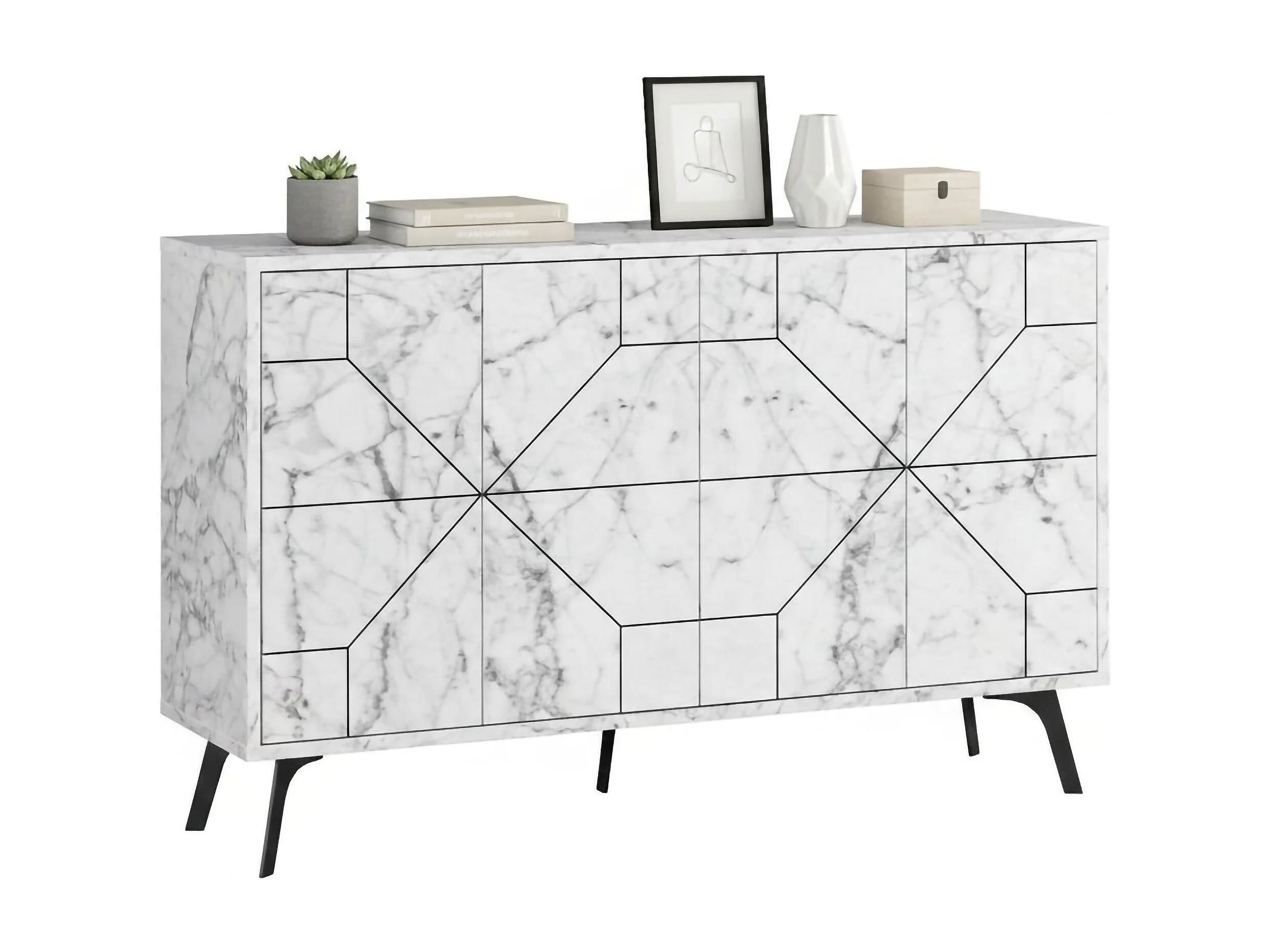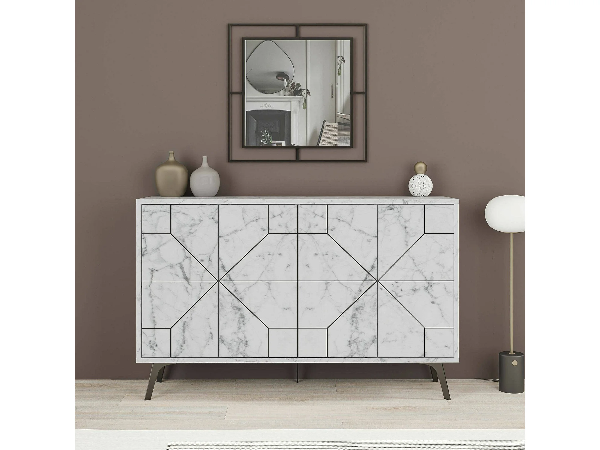 Buffet Meridian, Buffet du salon, Commode de salon, Garde-manger de cuisine, 123x35h62 cm, Marbre Blanc