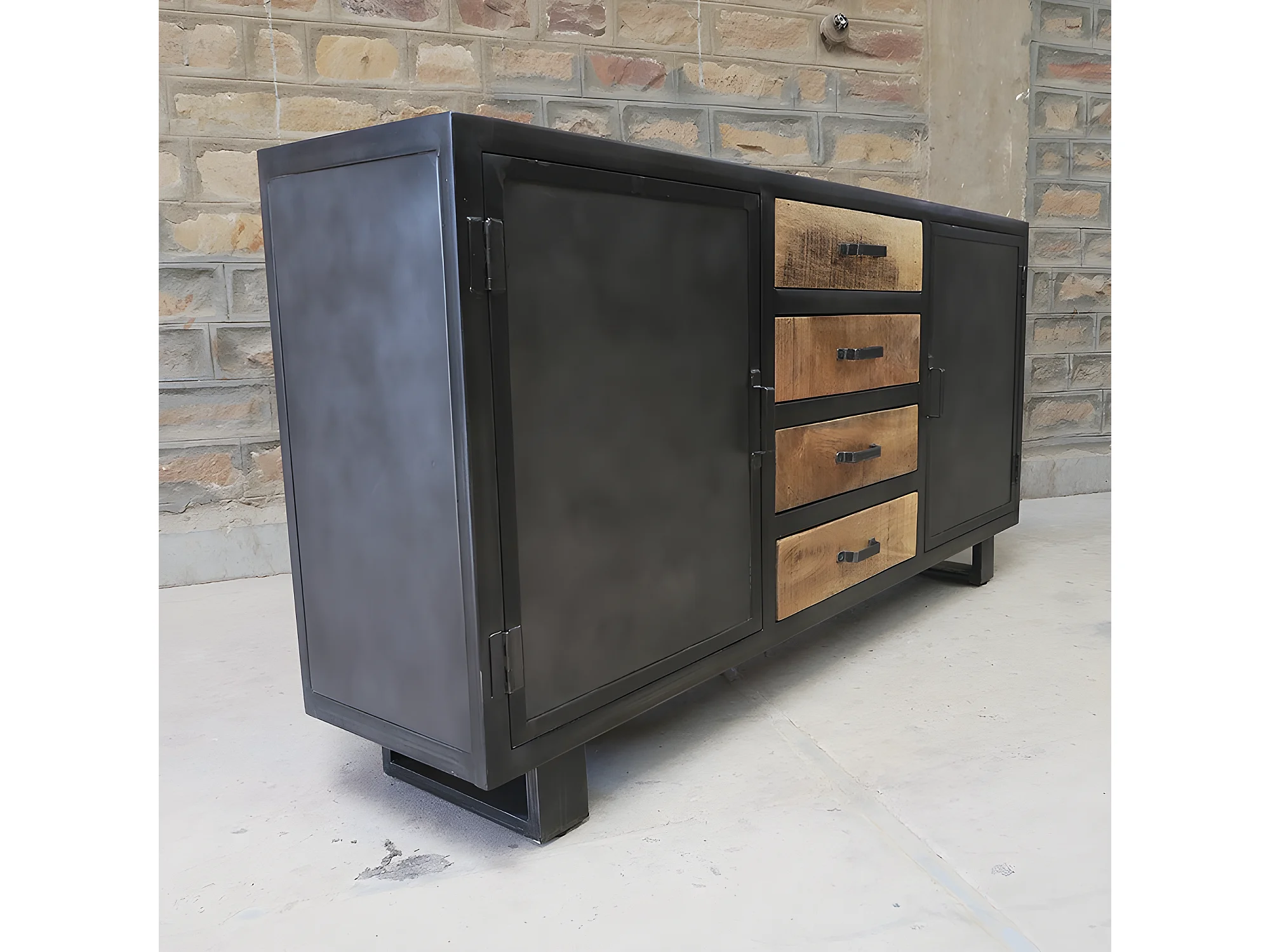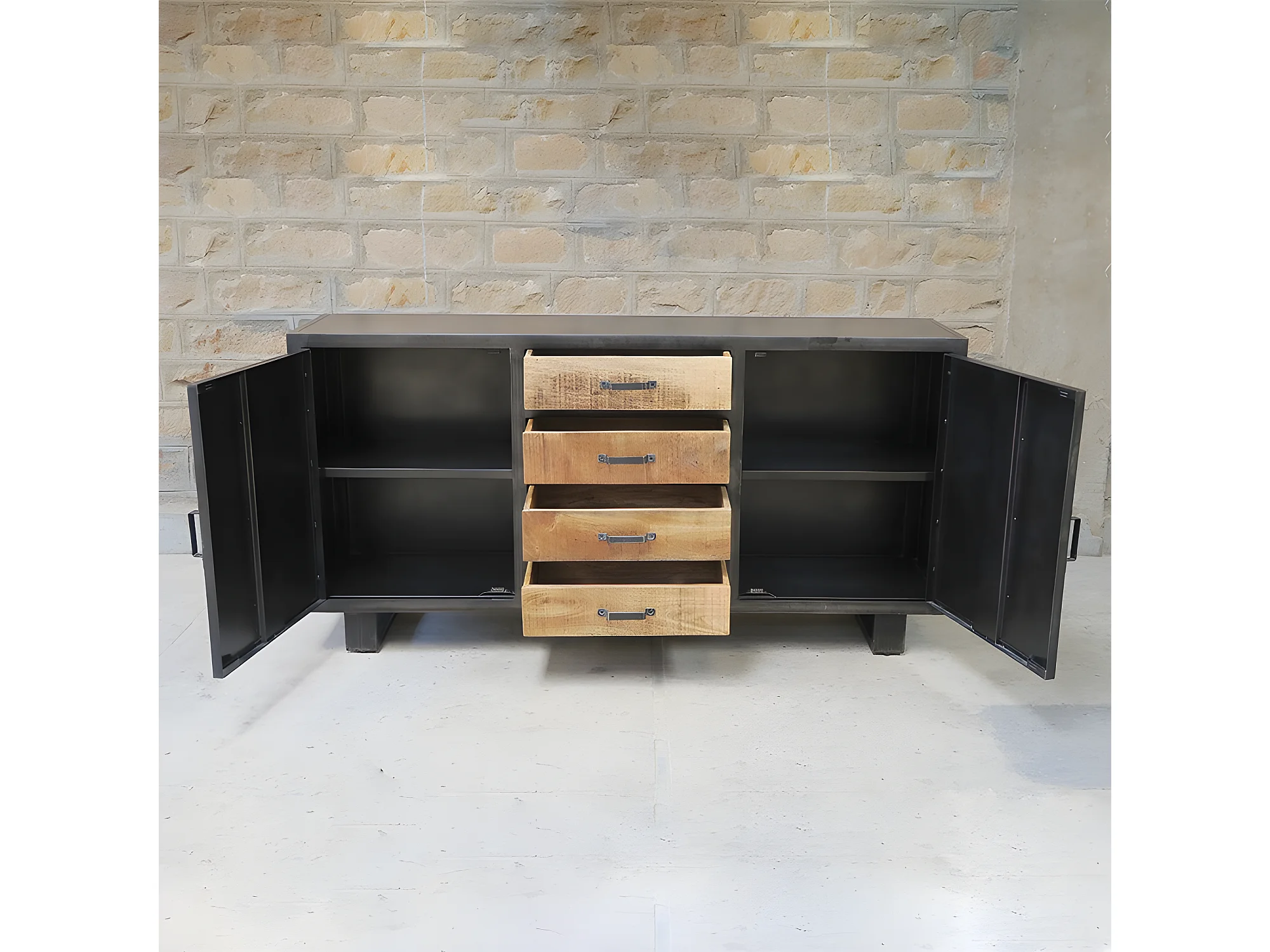 Buffet métal et bois Jodhpur 2 portes 4 tiroirs - Gris