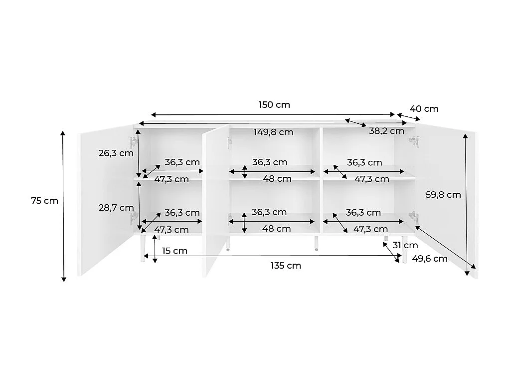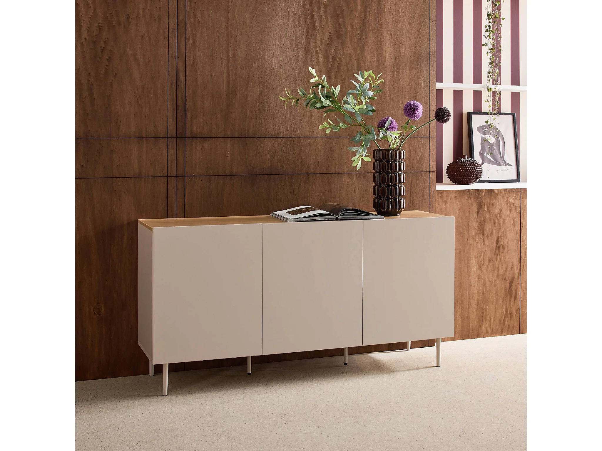 Buffet métal et décor bois 3 portes 150cm beige et naturel - Ashton