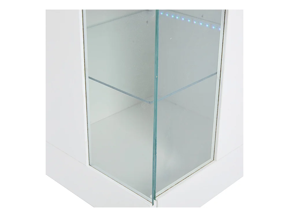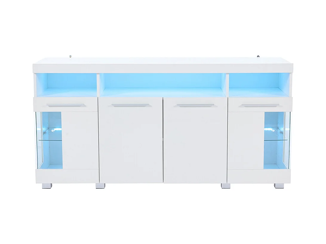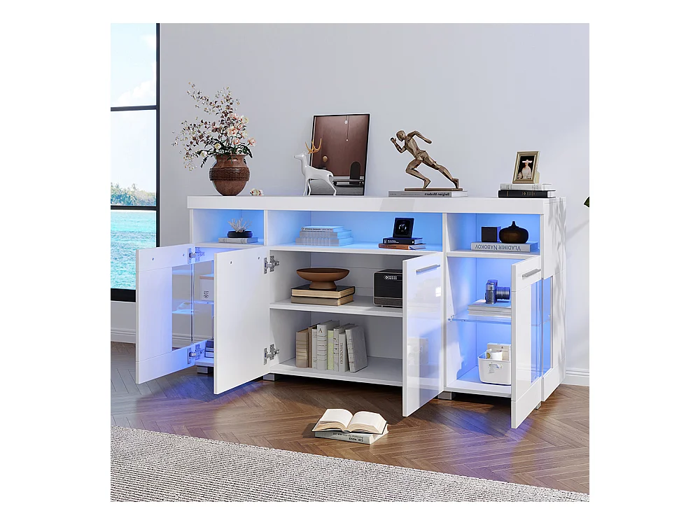 Buffet meuble appoint brillant salon éclairage LED verre trempé 3 compartiments blanc