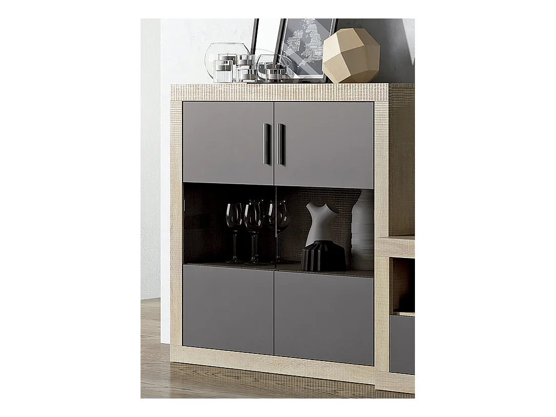Buffet, meuble de rangement 2 portes coloris chêne cambrian, graphite - Longueur 110 x profondeur 34,60 x hauteur 110 cm