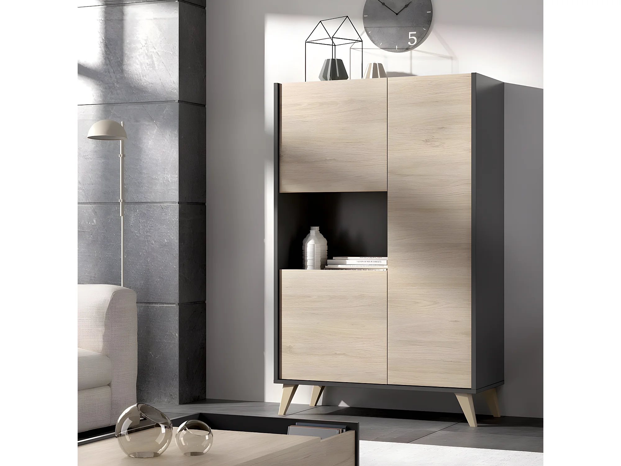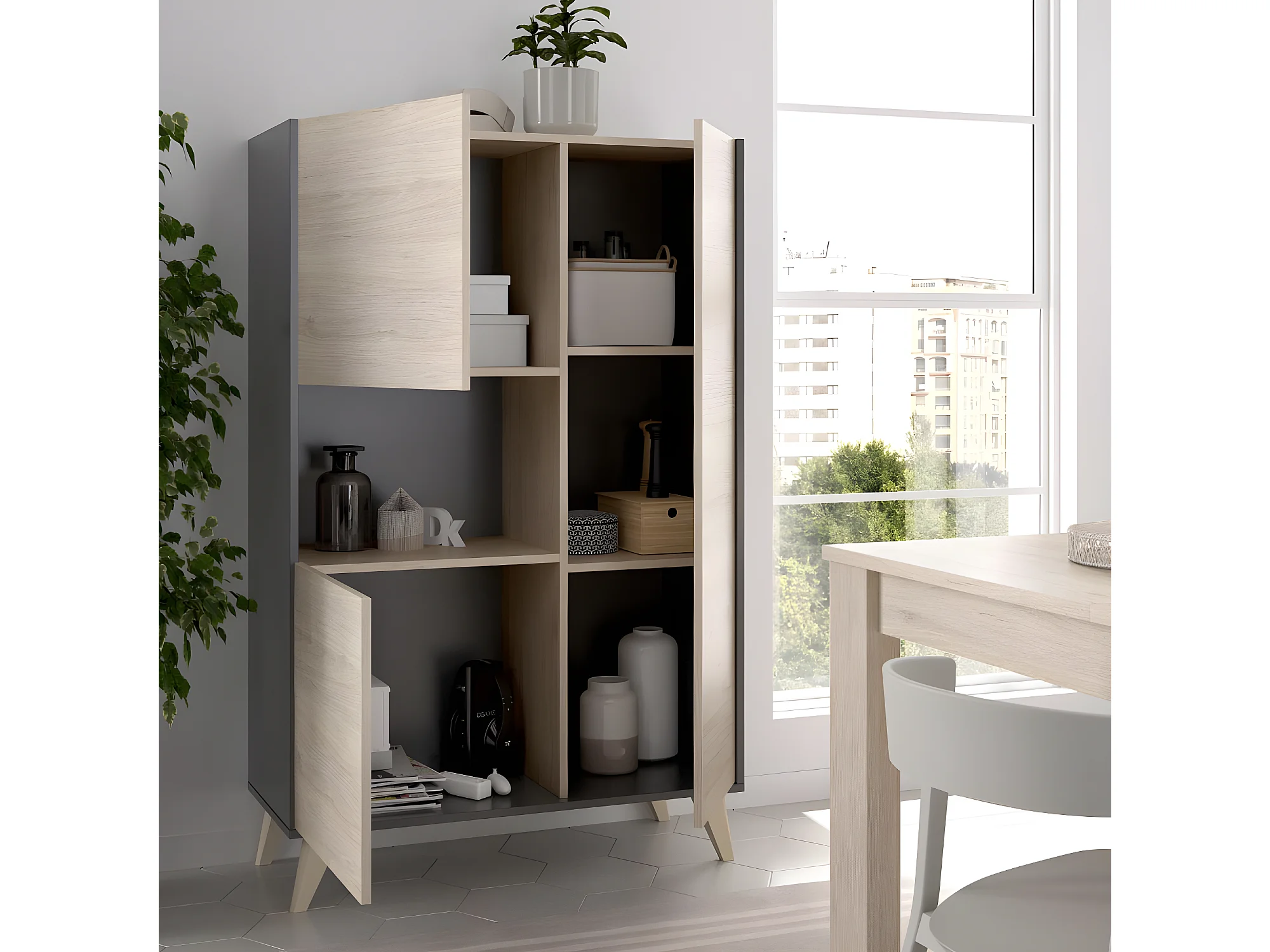 Buffet Meuble de rangement 3 portes coloris graphite/naturel - Longueur 81 x Hauteur 135 x Profondeur 43 cm