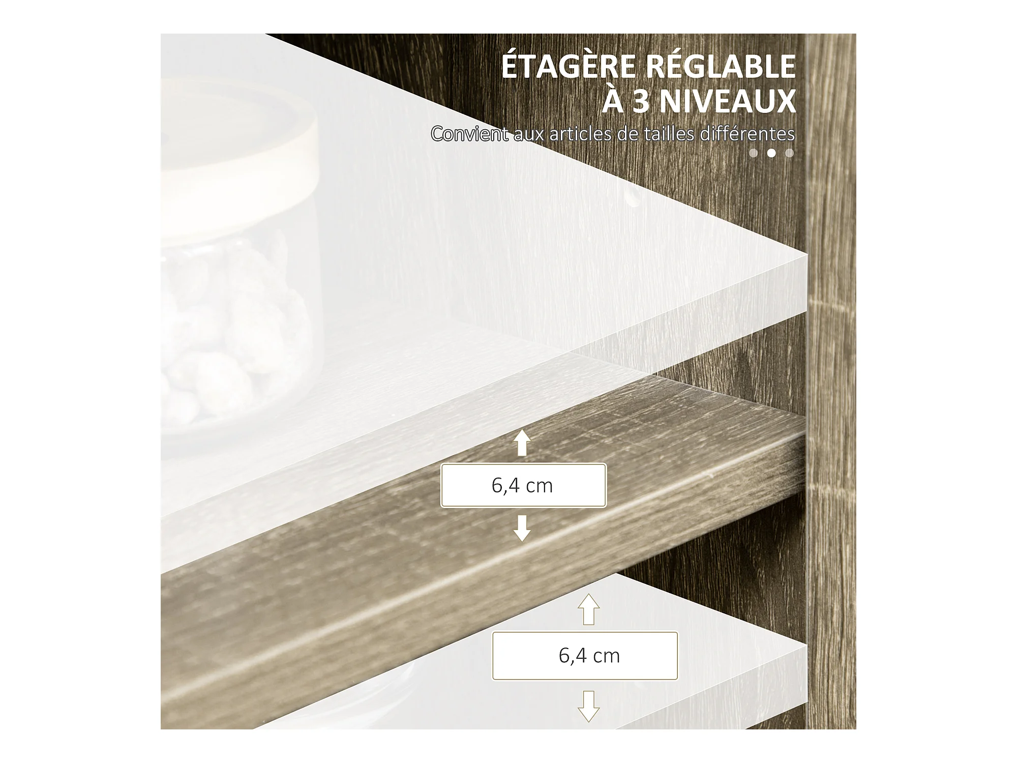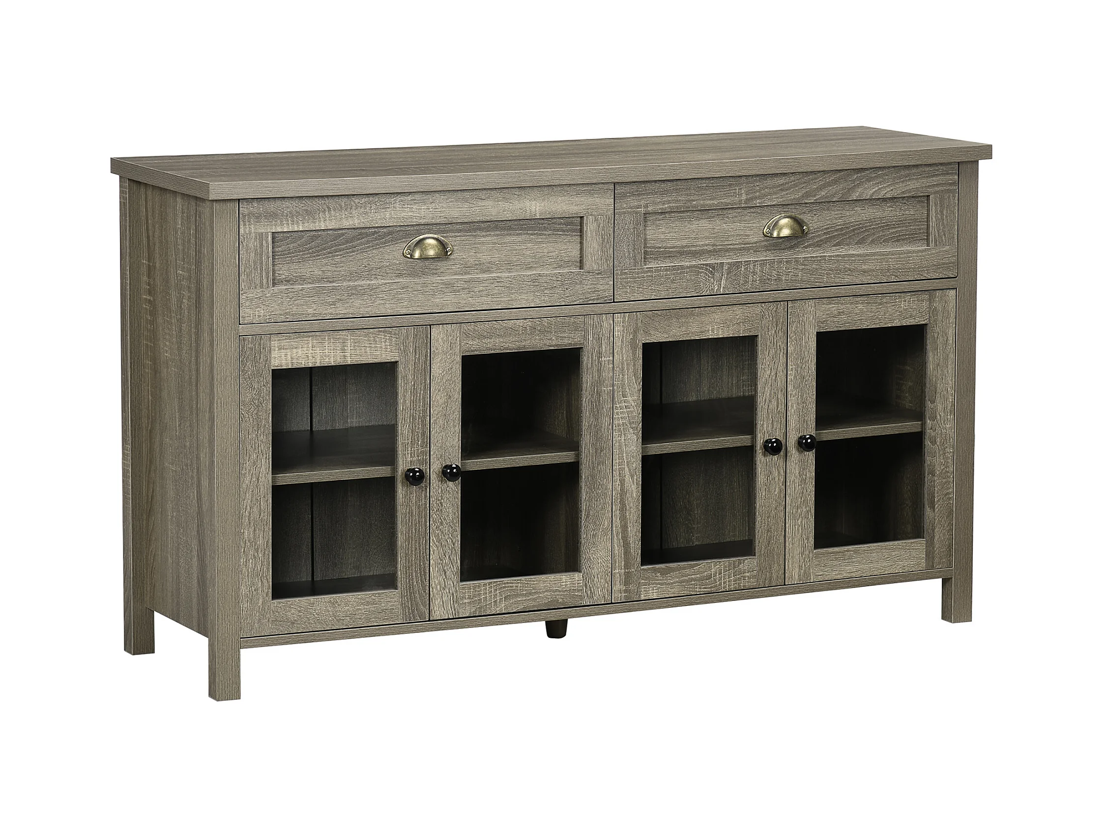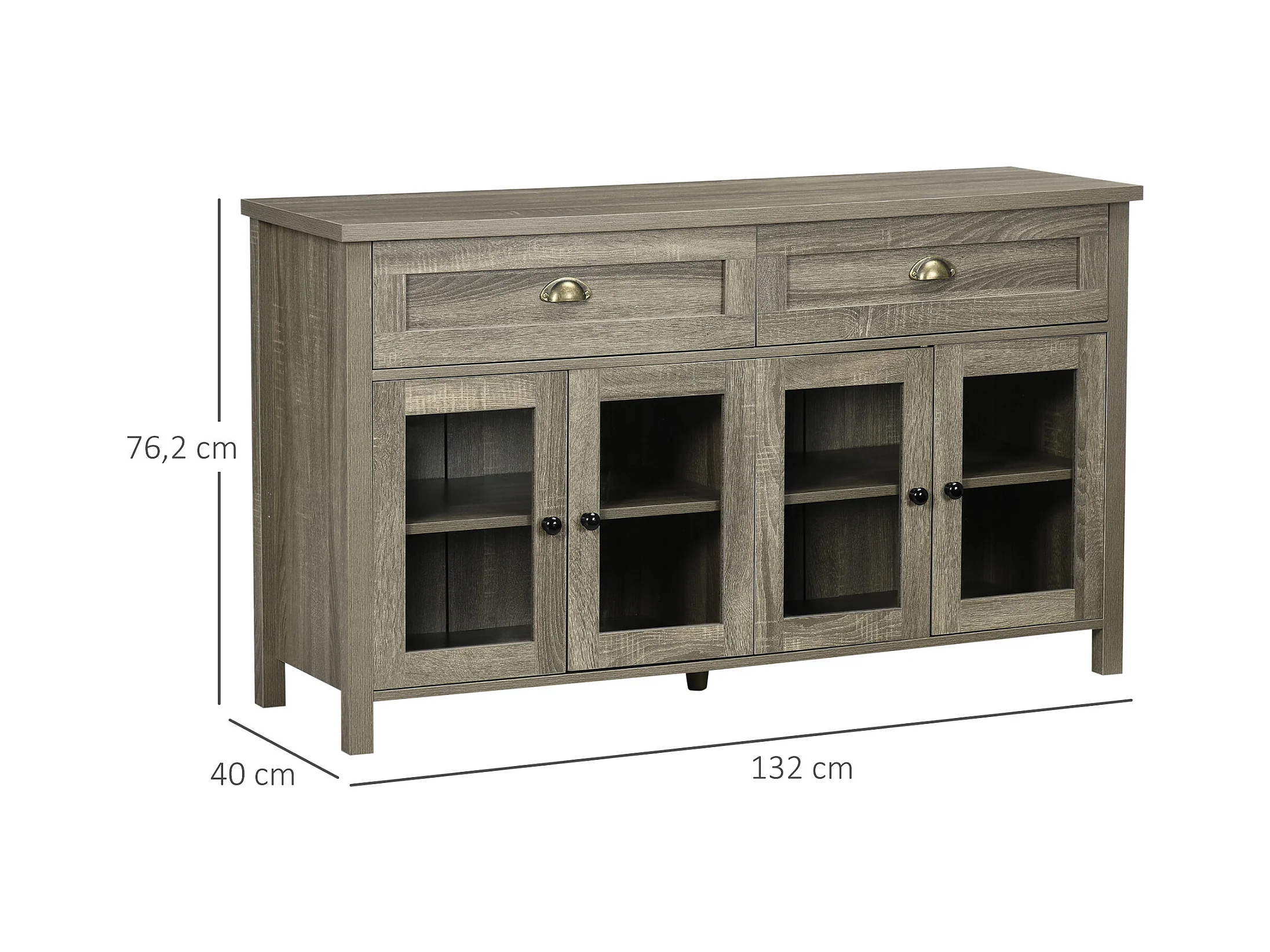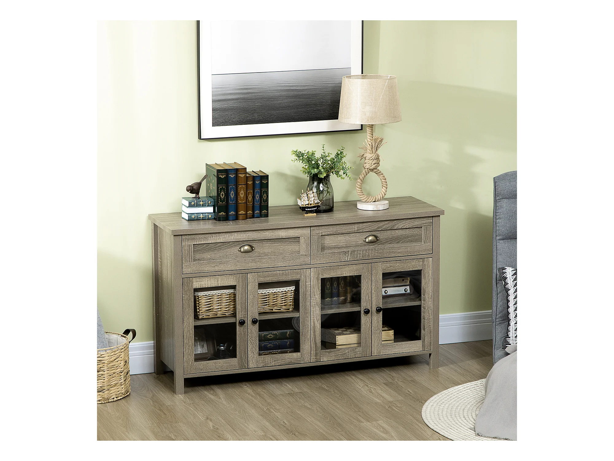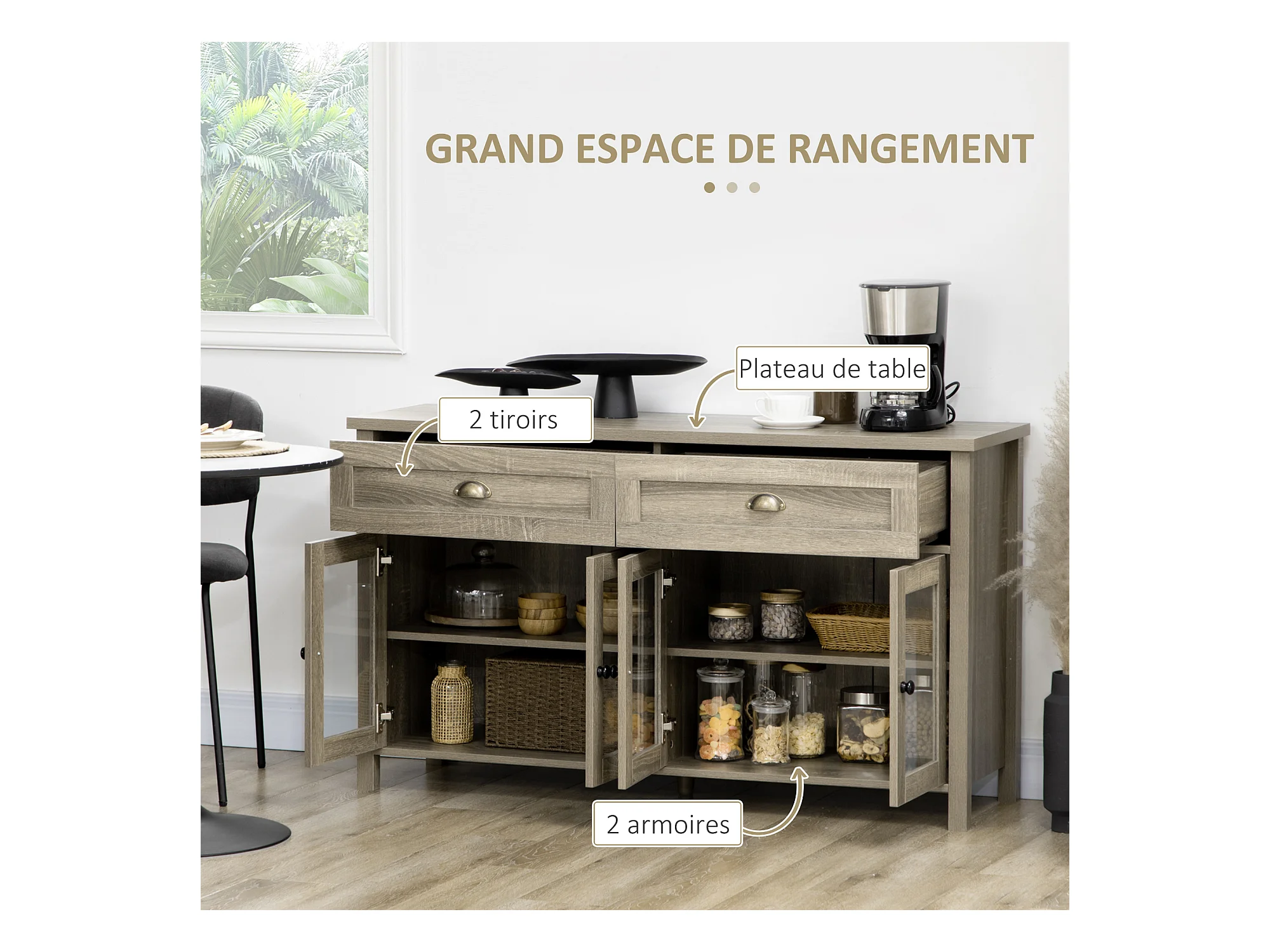 Buffet meuble de rangement 4 portes verres étagères réglables 2 tiroirs gris