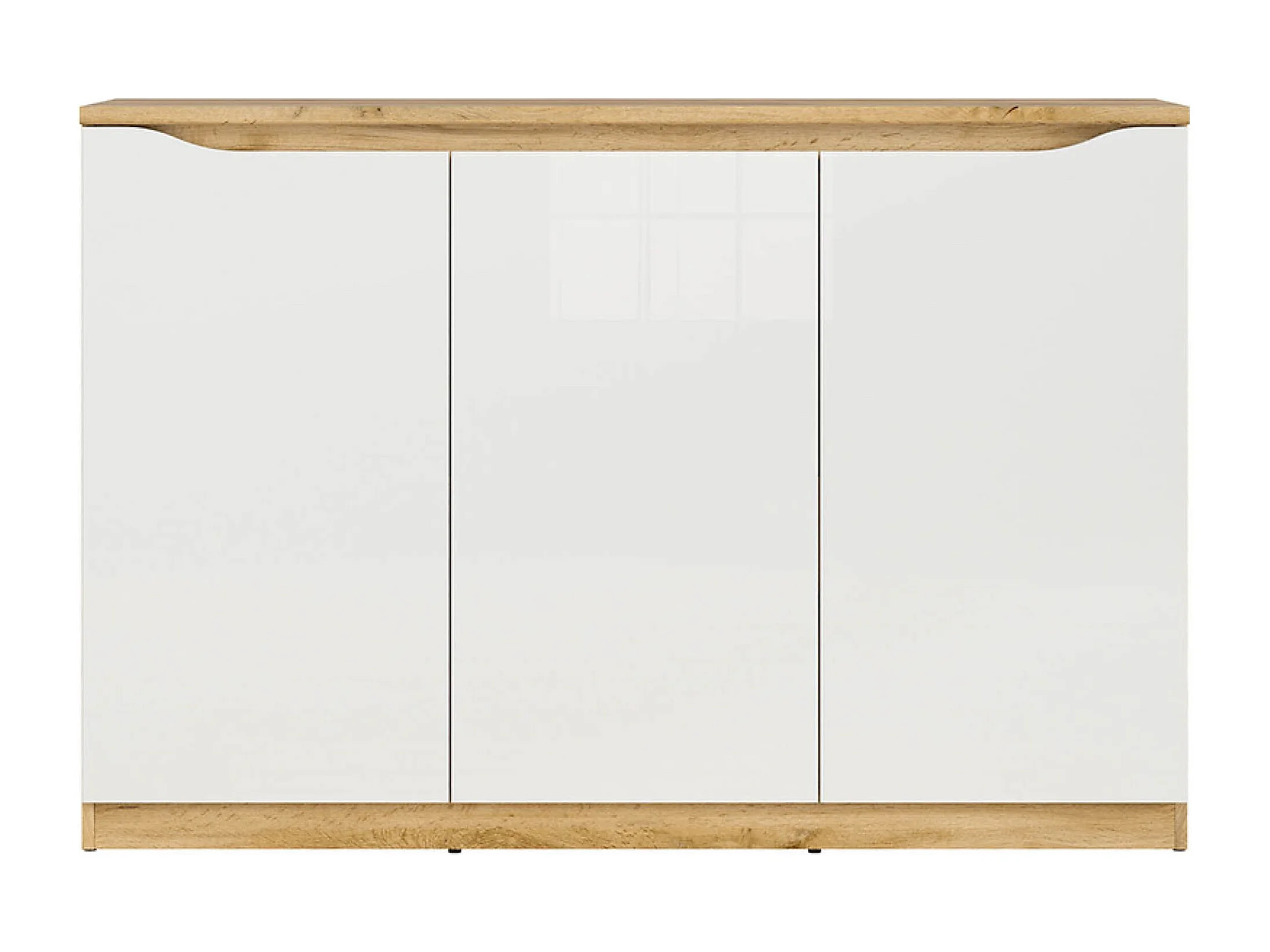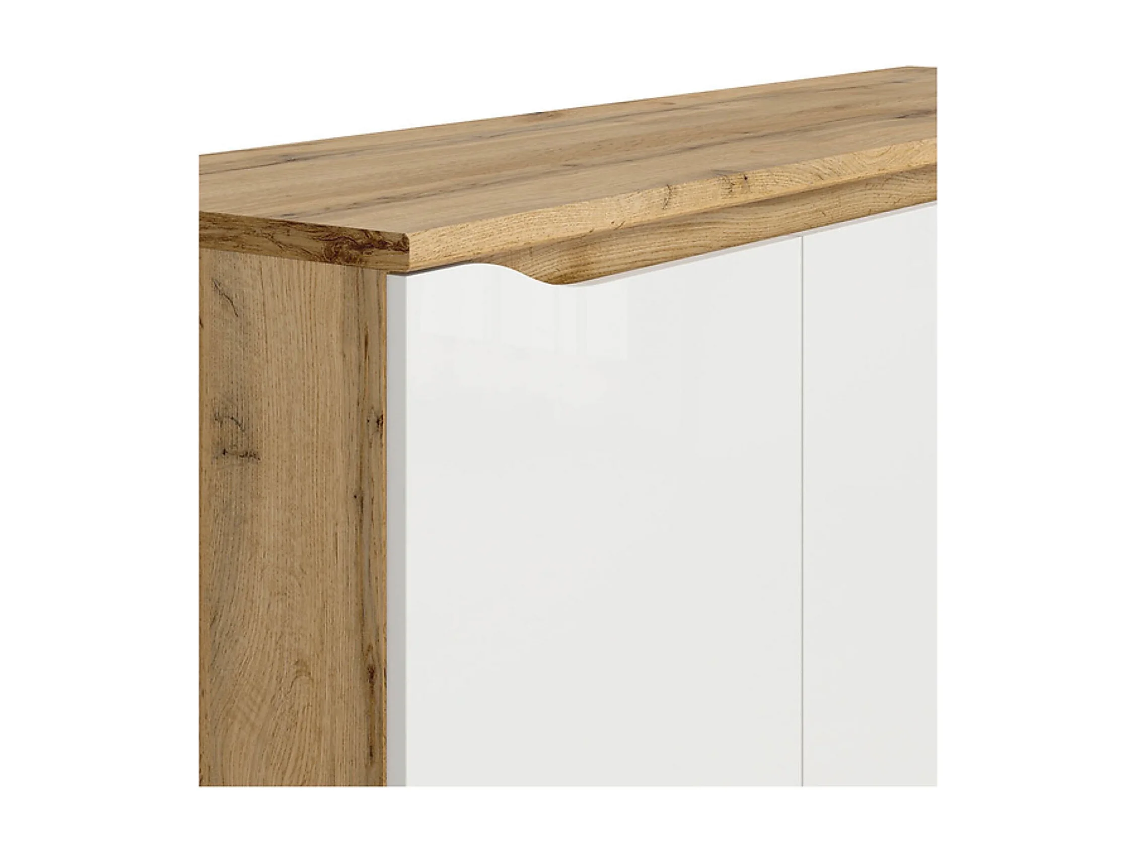 Buffet Meuble de rangement à 3 portes, coloris chêne Wotan/blanc brillant - Longueur 135 x Profondeur 39,5 x Hauteur 91,5 cm