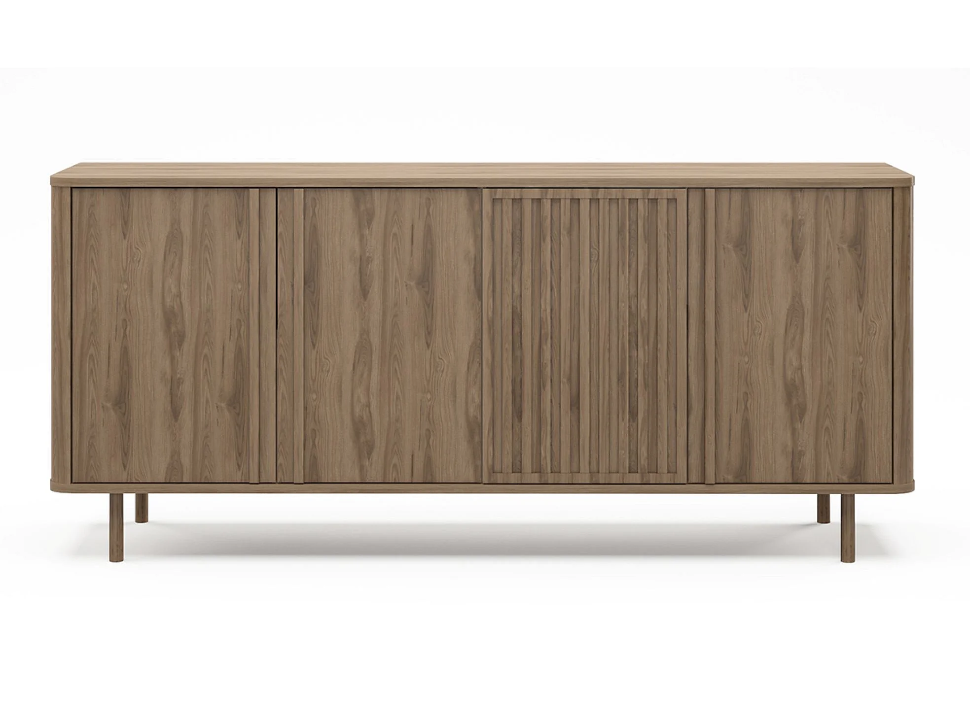 Buffet, meuble de rangement avec 4 portes aspect bois coloris chêne - Longueur 180 x Profondeur 40 x Hauteur 80 cm