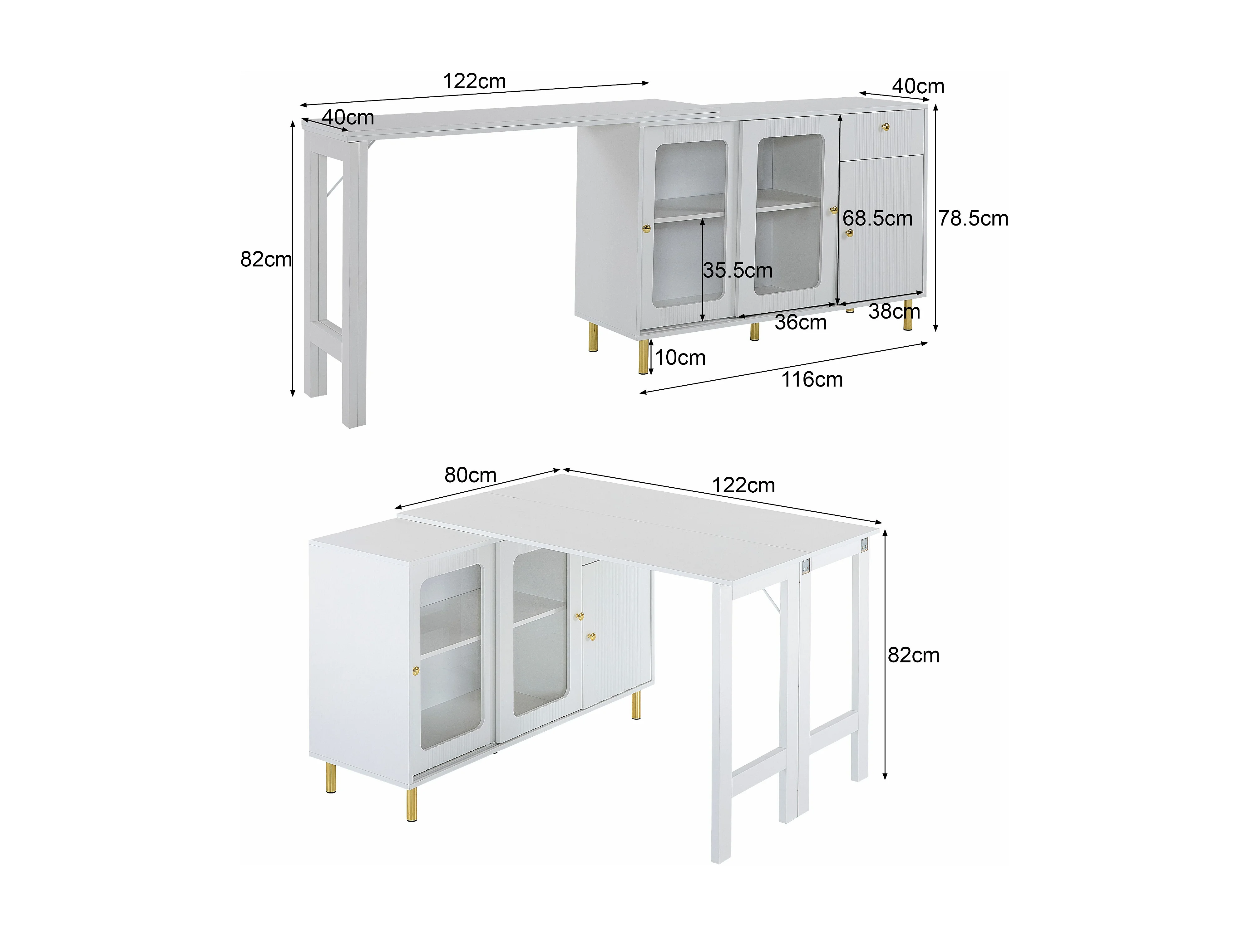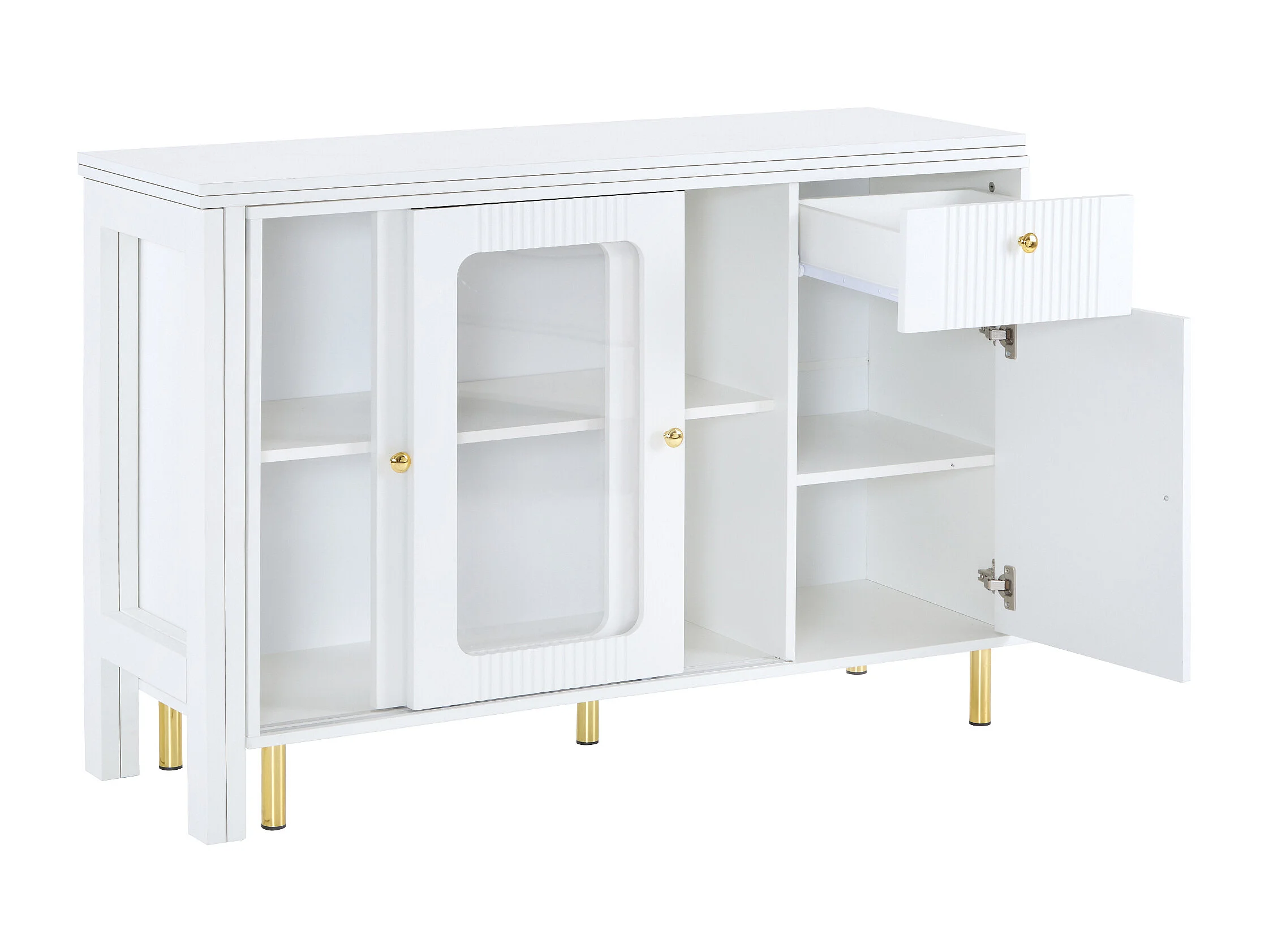 Buffet, meuble de rangement, avec plateau rabattable et extensible, blanc