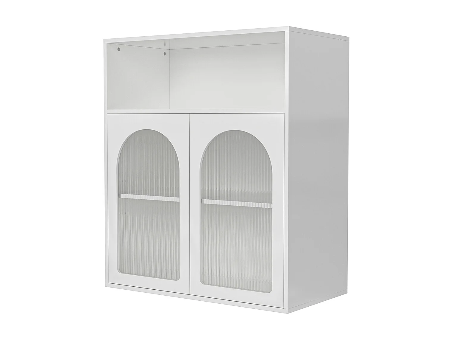 Buffet Meuble de rangement avec portes vitrées LED pour cuisine salon Blanc