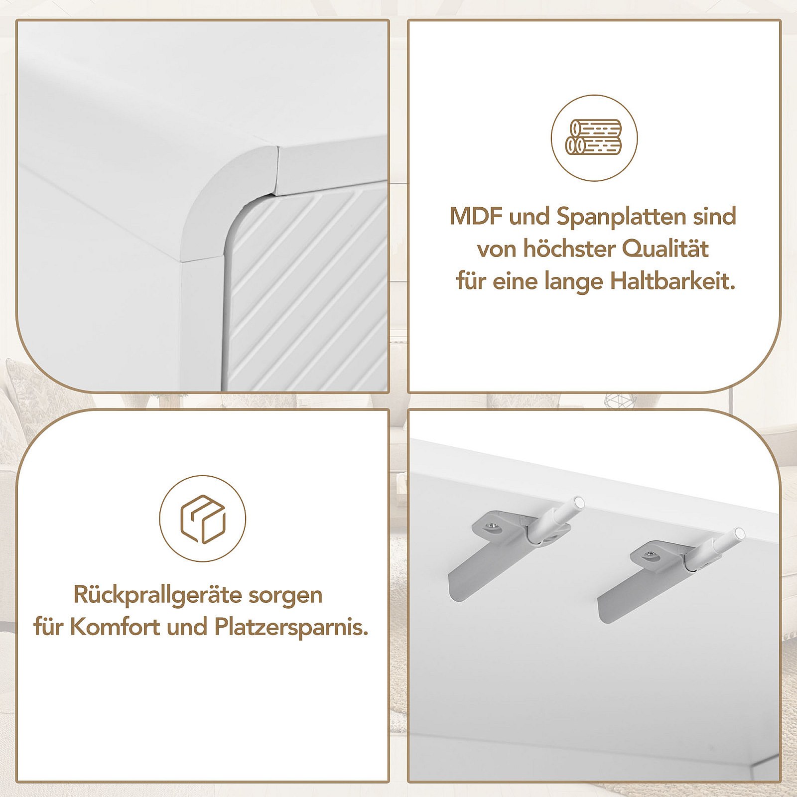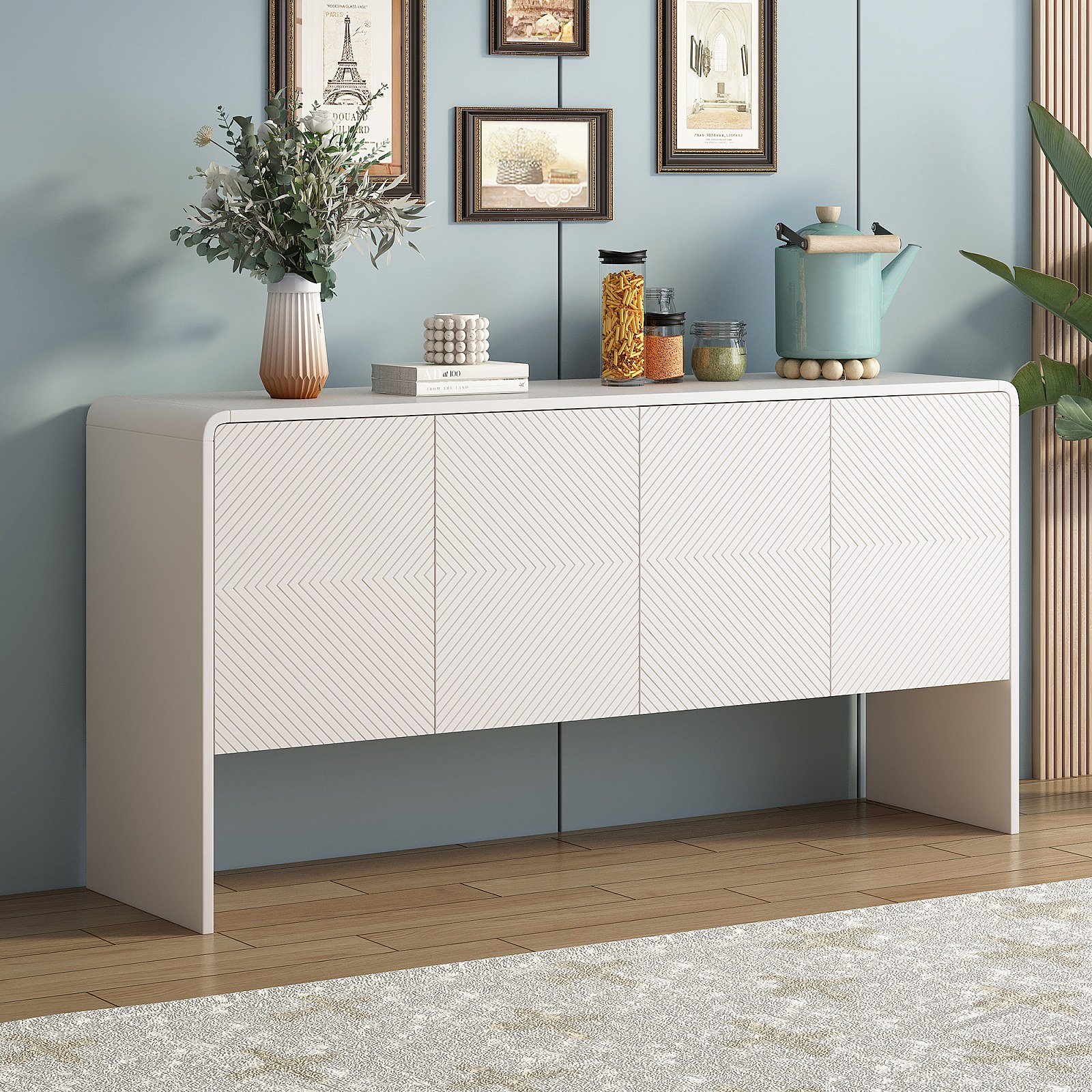 Buffet minimaliste blanc – Grand espace de rangement – 4 portes avec système push-open – Meuble pour salon et entrée