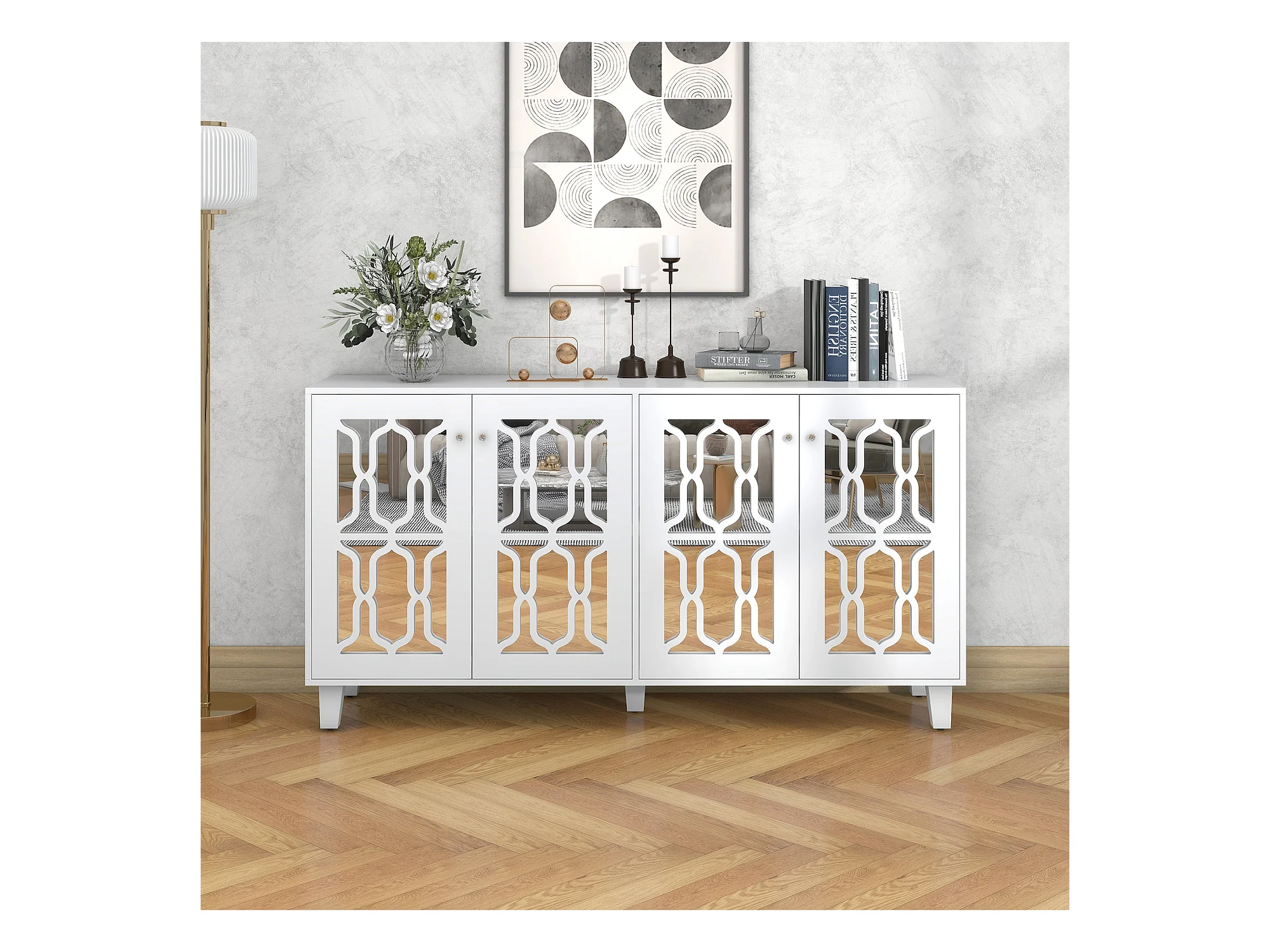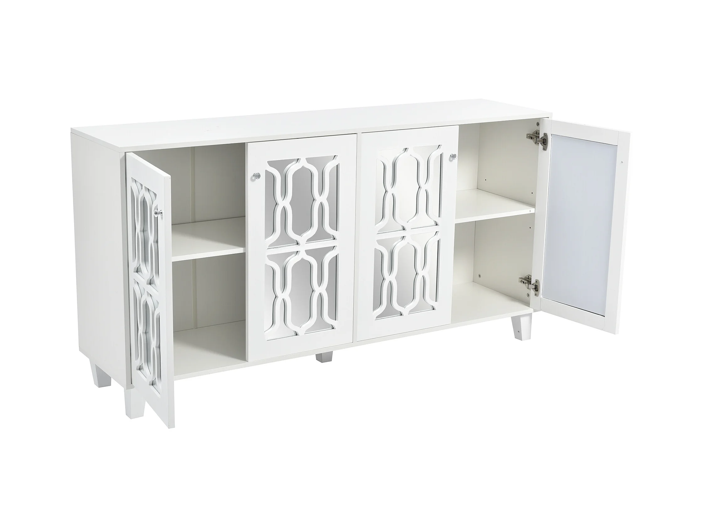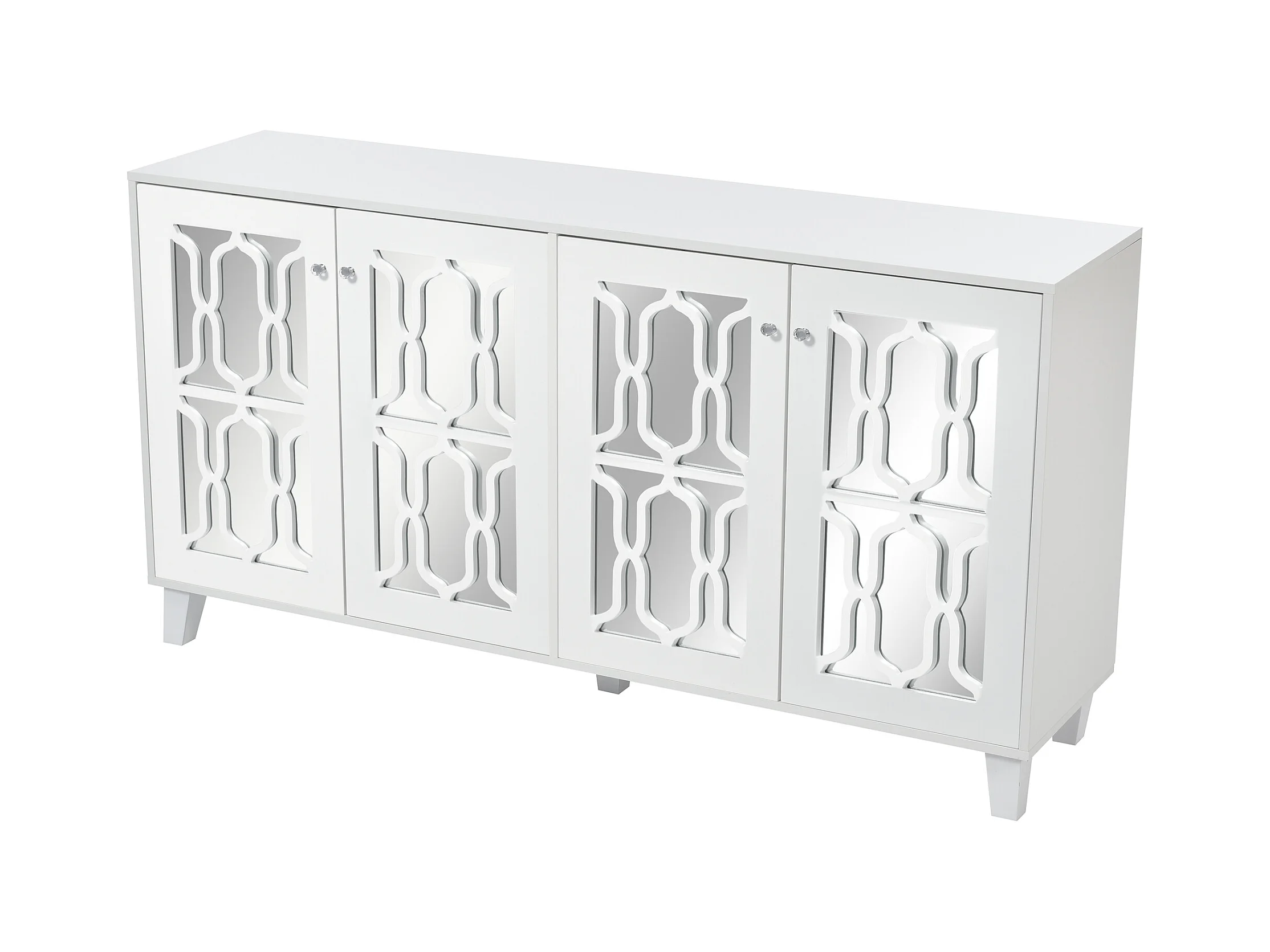 Buffet miroir 160x40x84 cm avec poignées en cristal froid - blanc