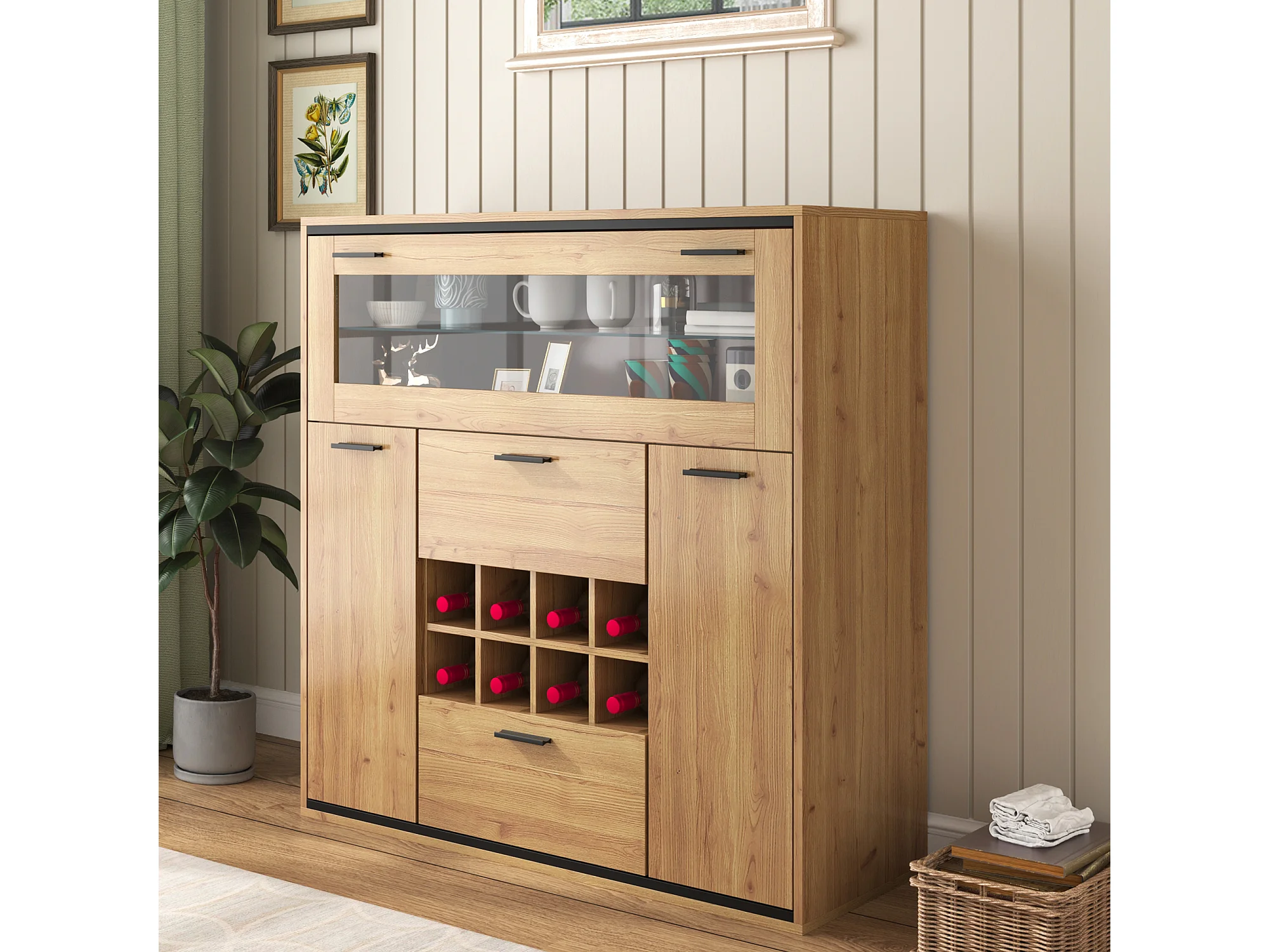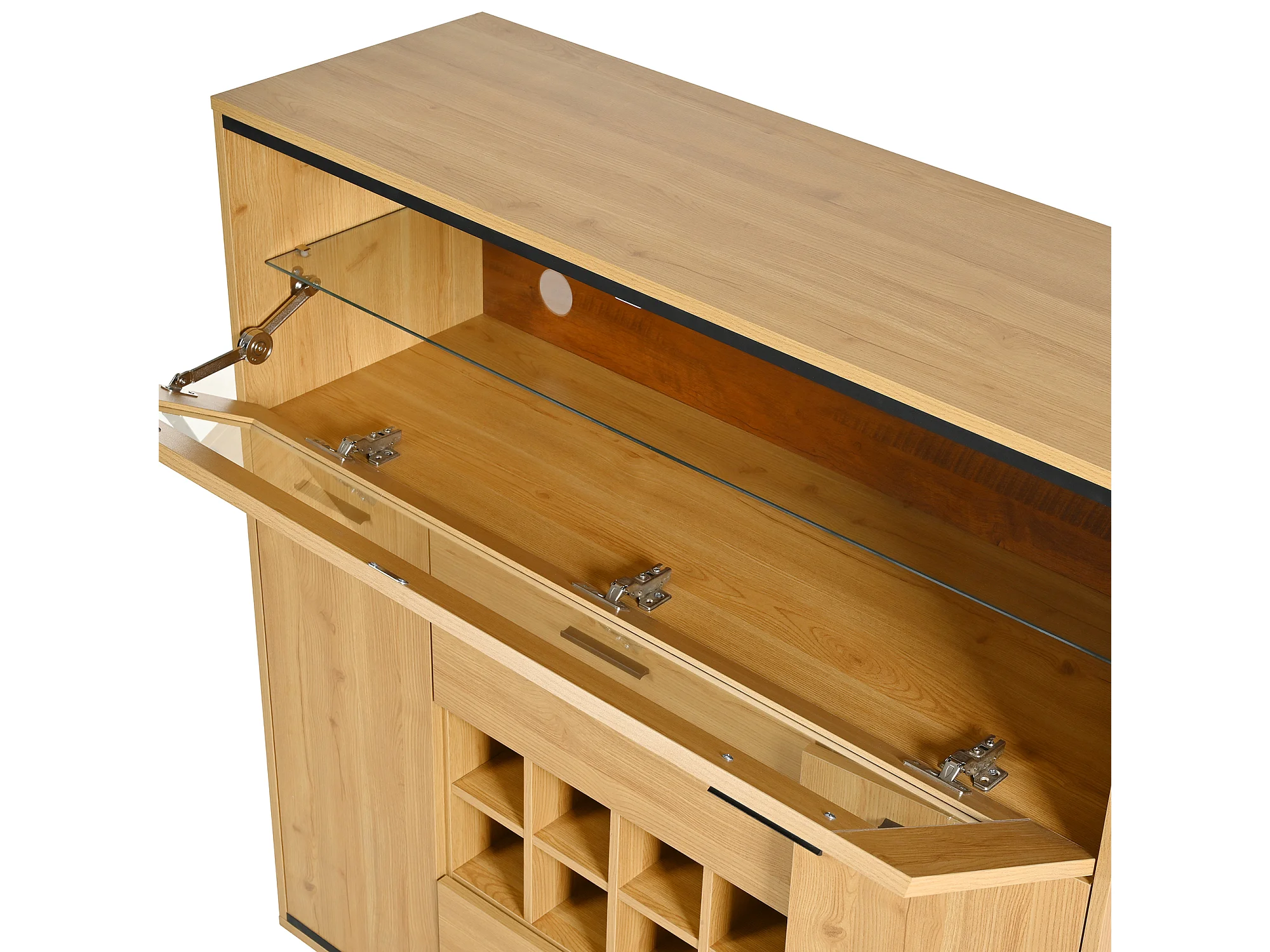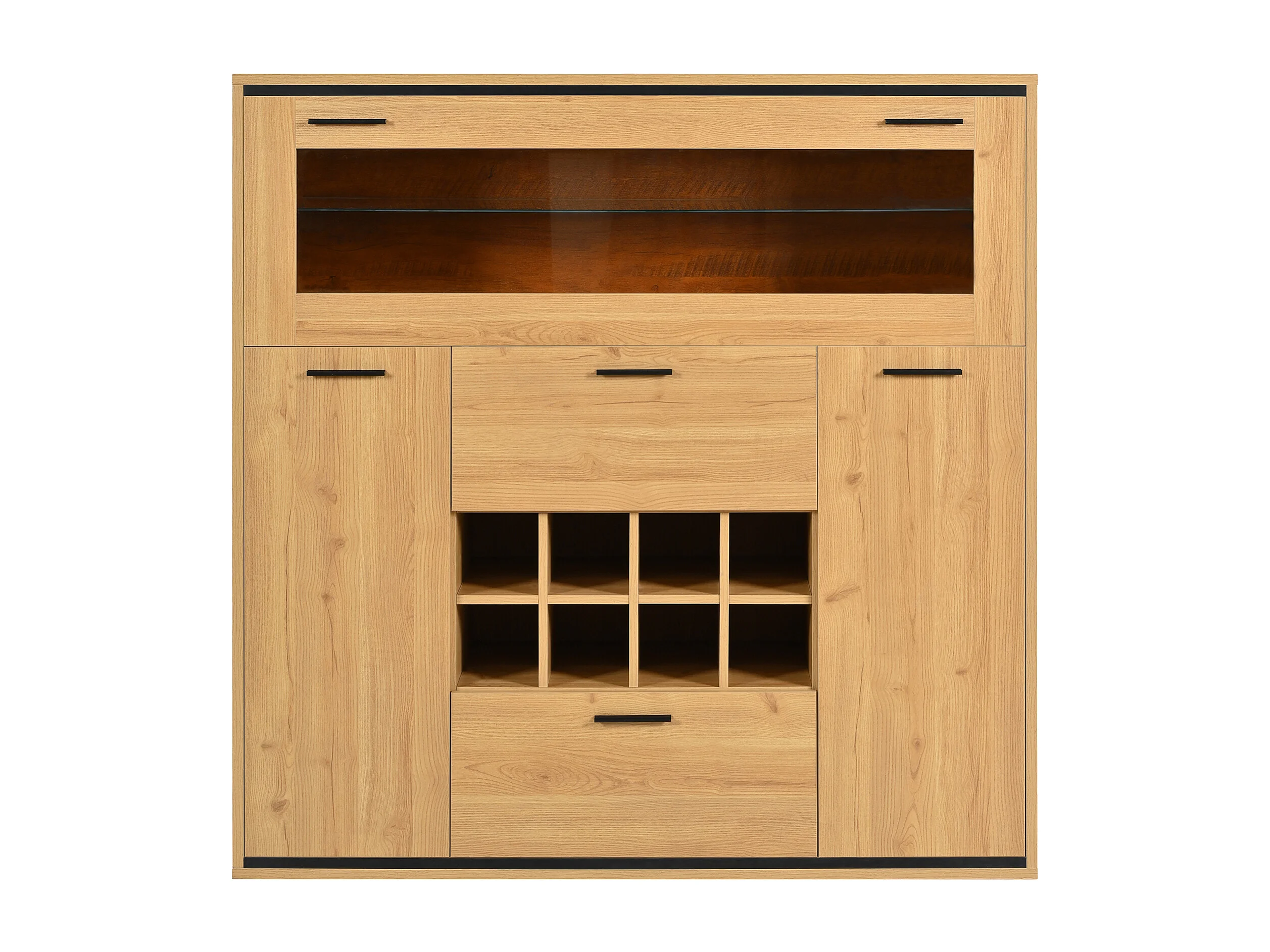 Buffet moderne 110x38x111 cm, cave à vin, étagère, rangement, en Panneau de particules, naturel clair + noir