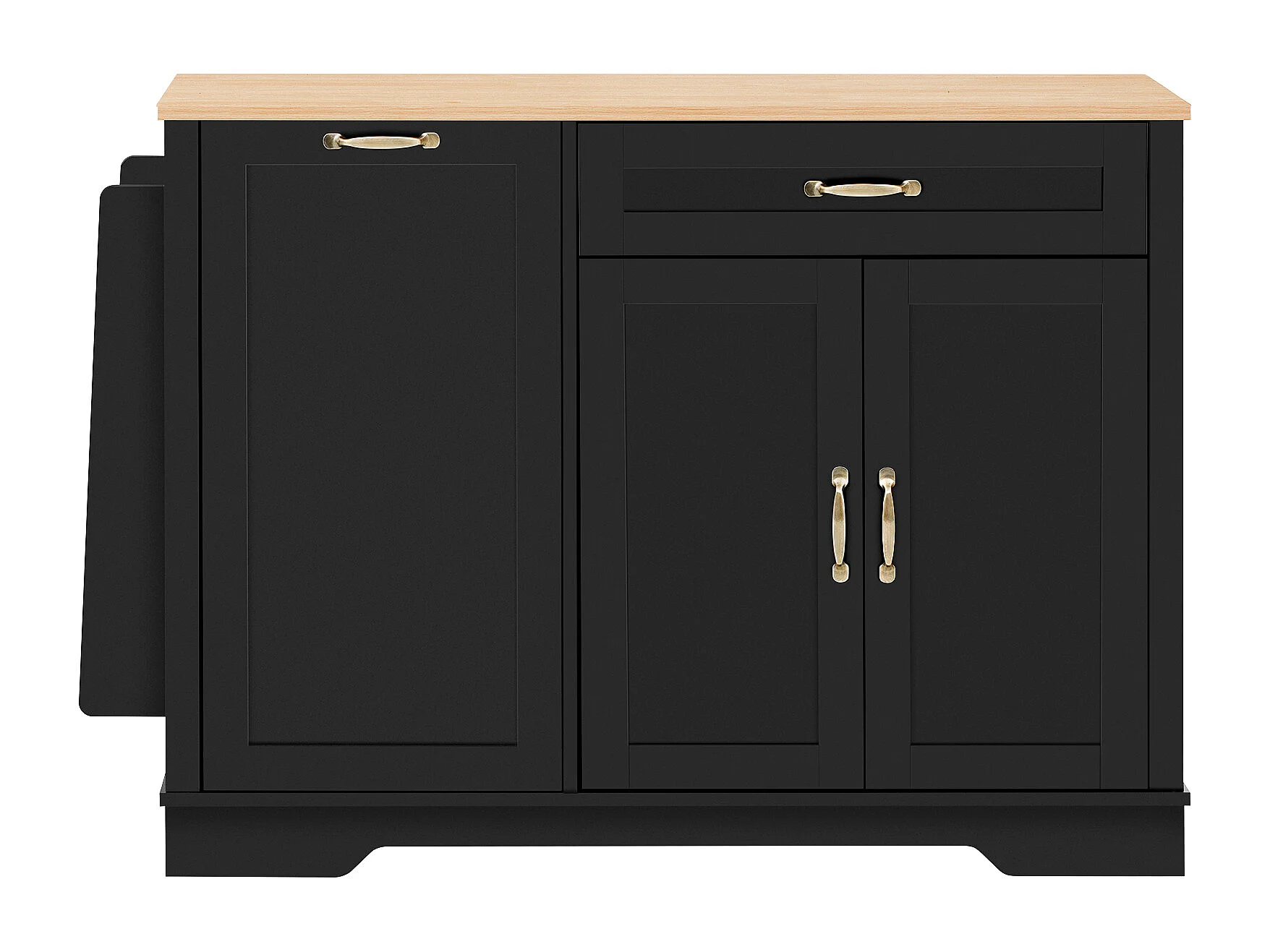 Buffet moderne 115x40x87cm - avec 3 portes et 1 tiroir - avec étagère à épices - noir + naturel