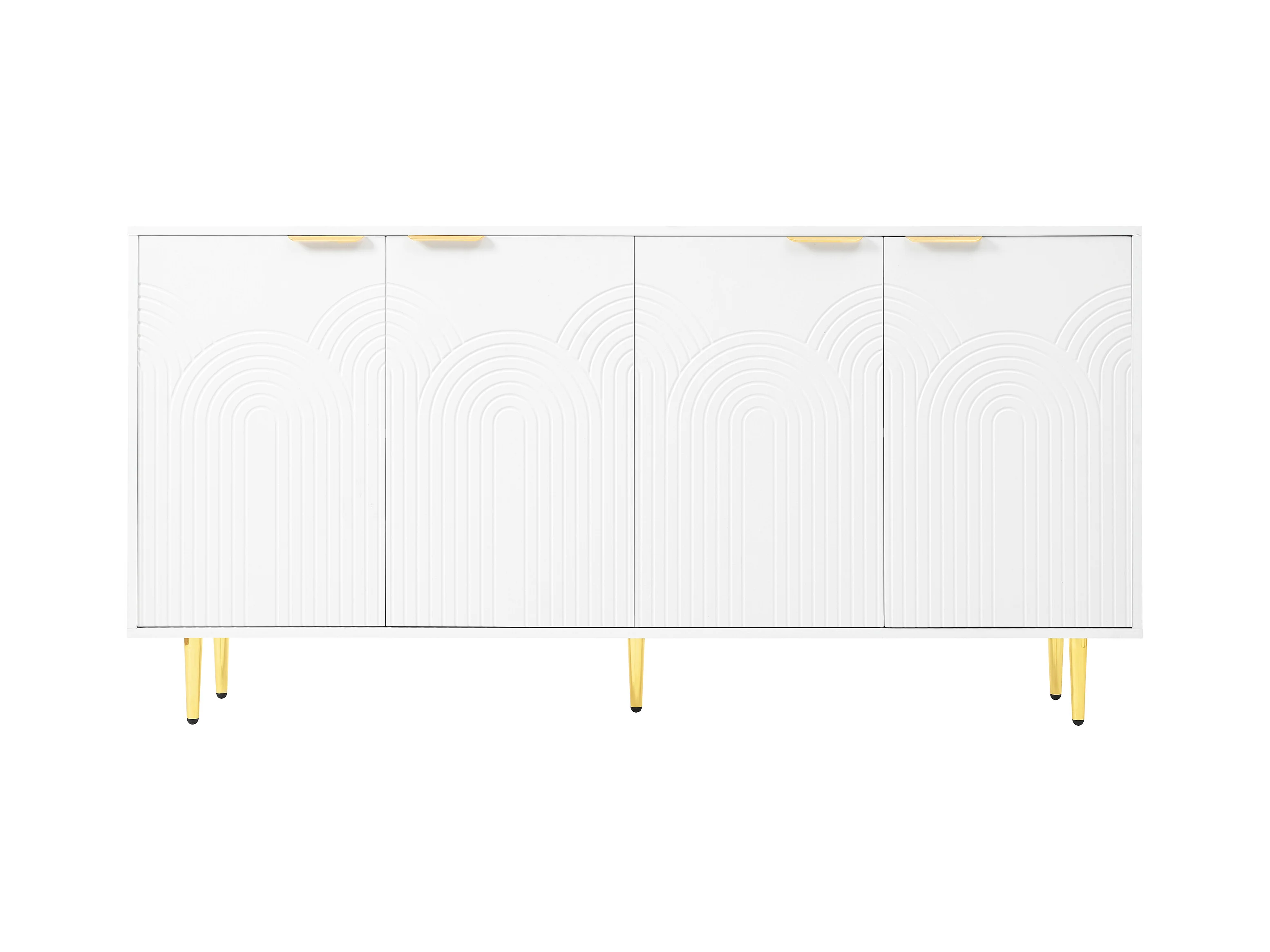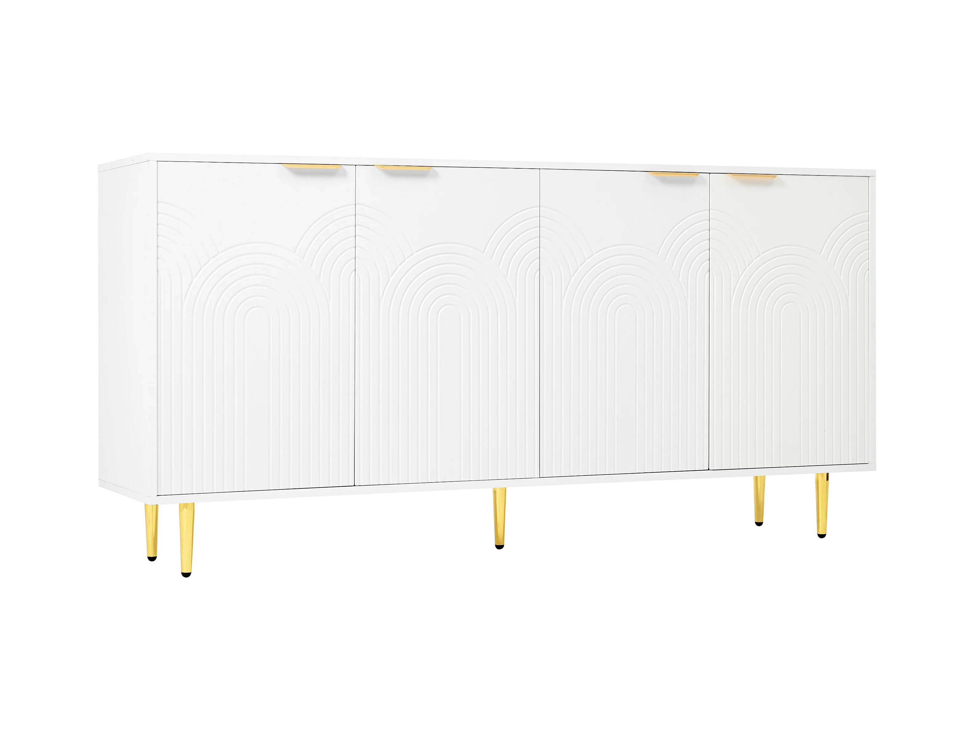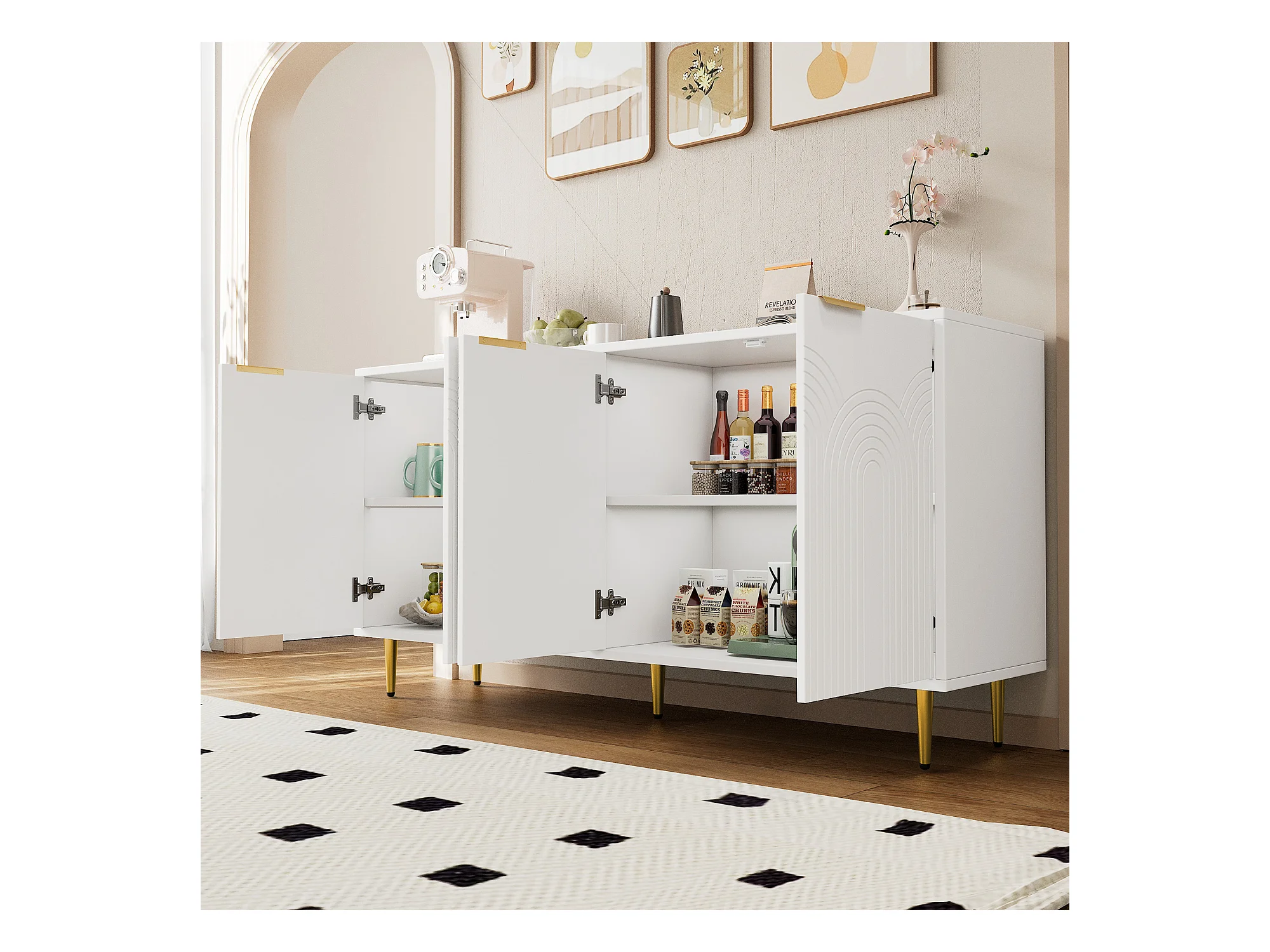 Buffet moderne 160x40x80cm - avec 4 portes - pieds en métal - panneau de particules - Blanc
