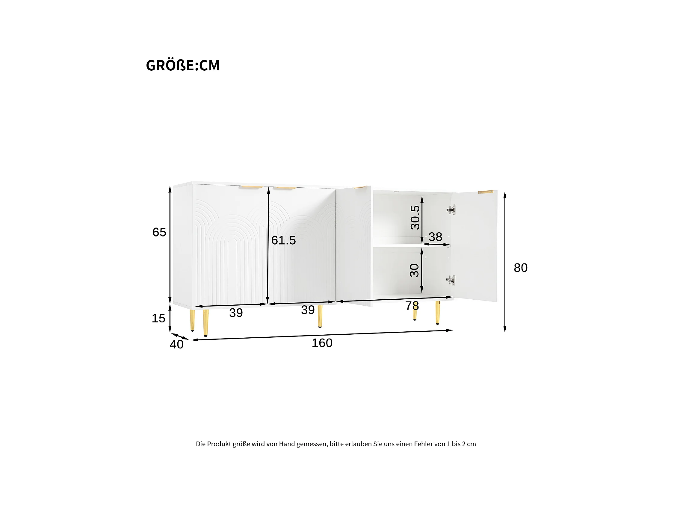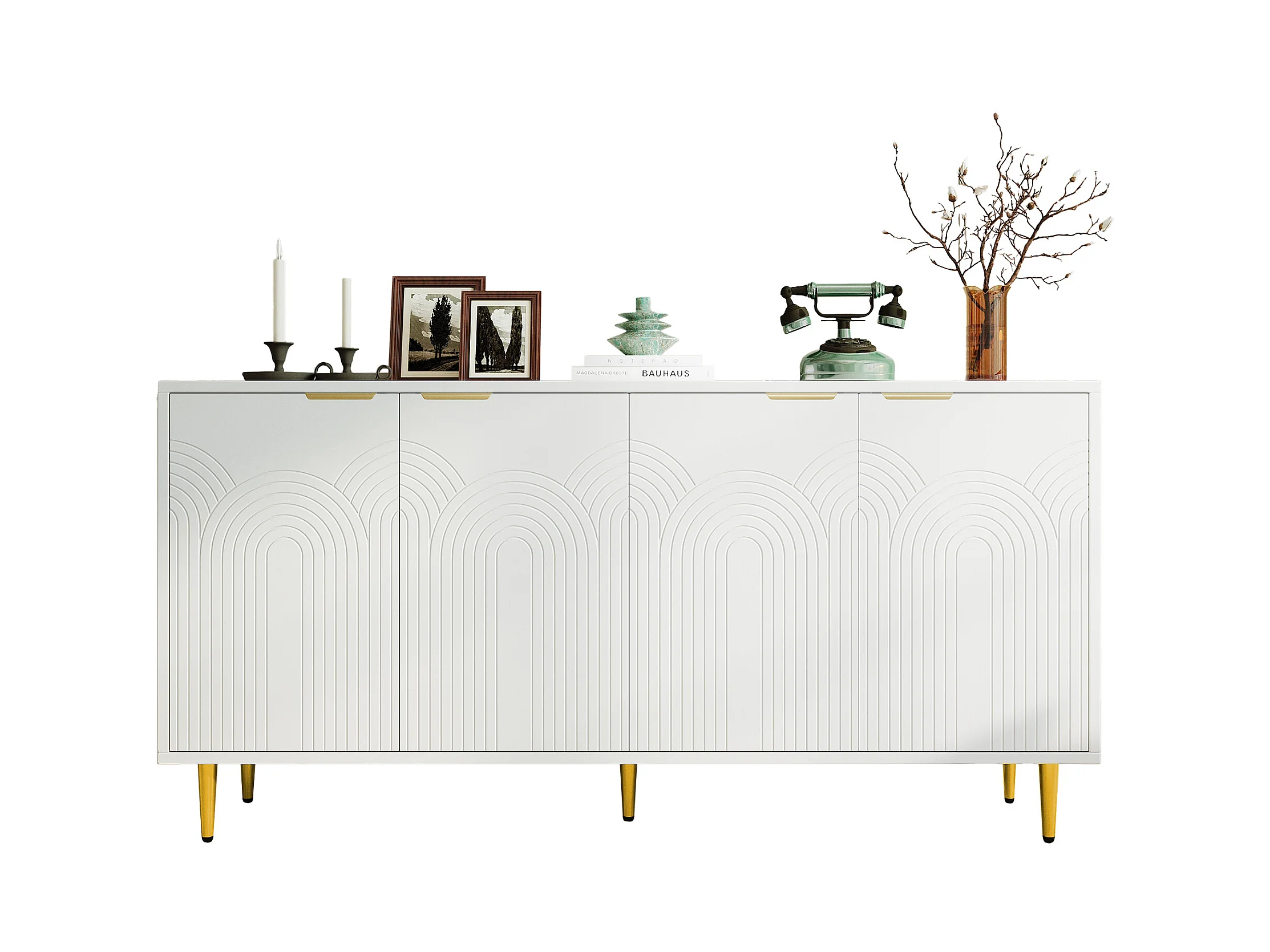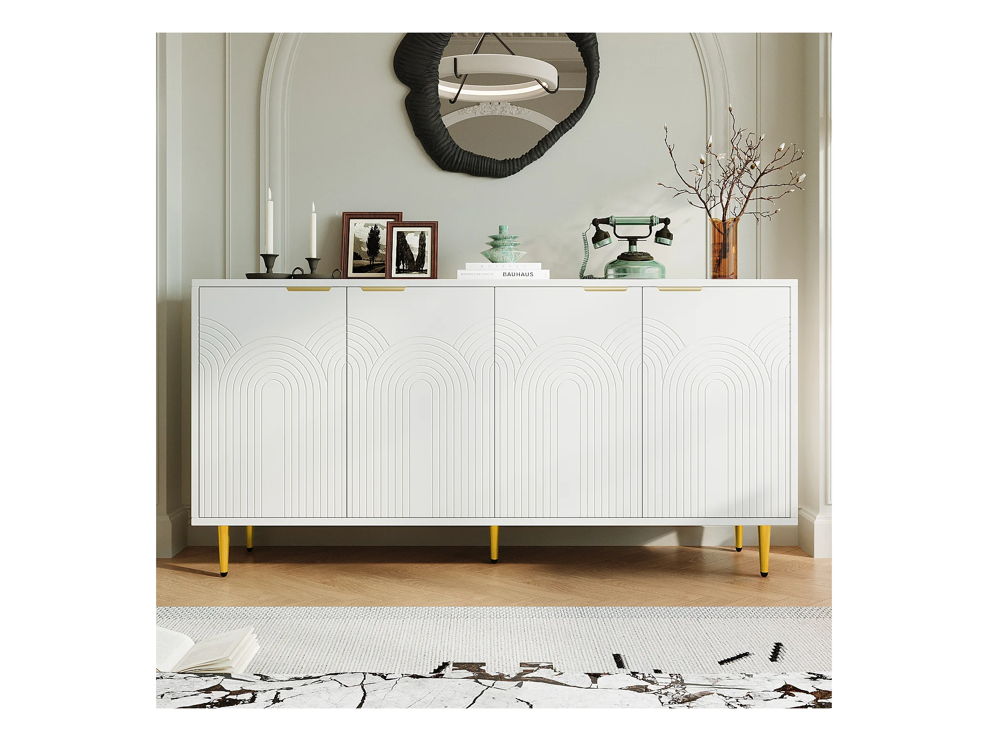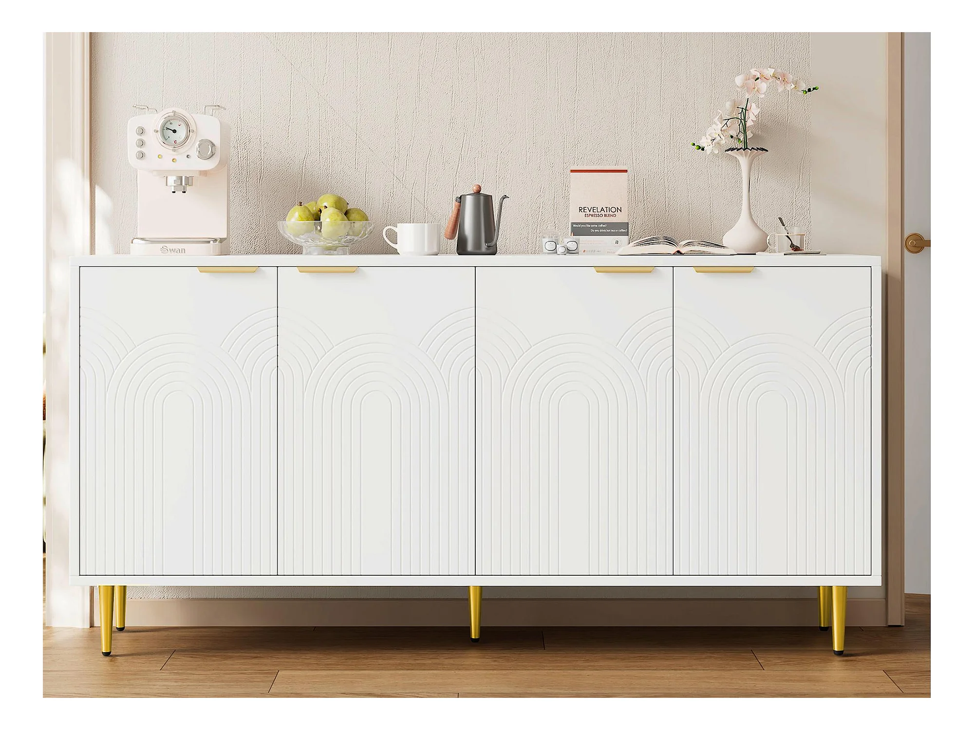 Buffet moderne 160x40x80cm - avec 4 portes - pieds en métal - panneau de particules - Blanc