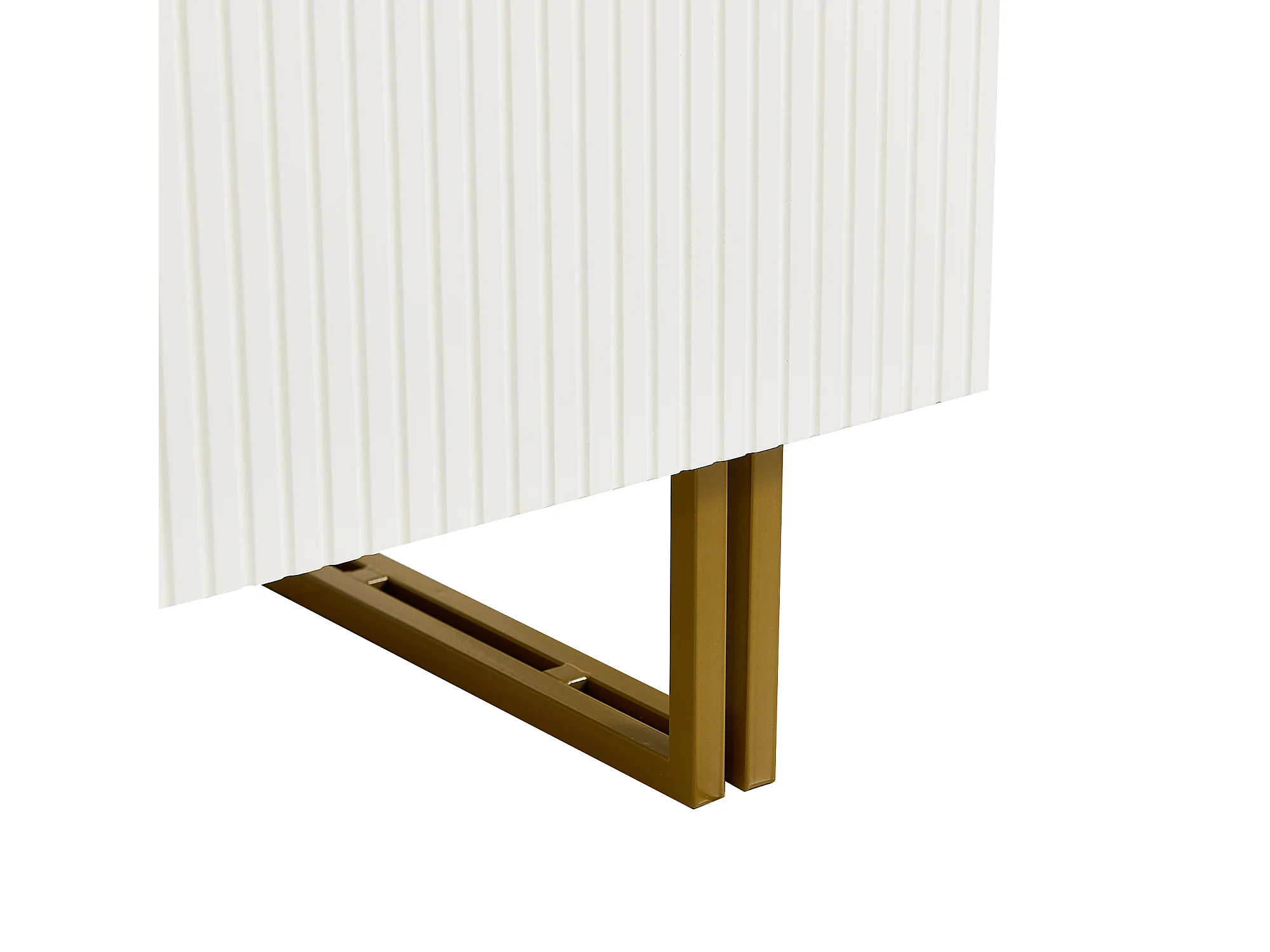 Buffet moderne 160x40x81,5 cm, portes et tiroirs, pieds en acier, rangement, pour la chambre, en MDF blanc