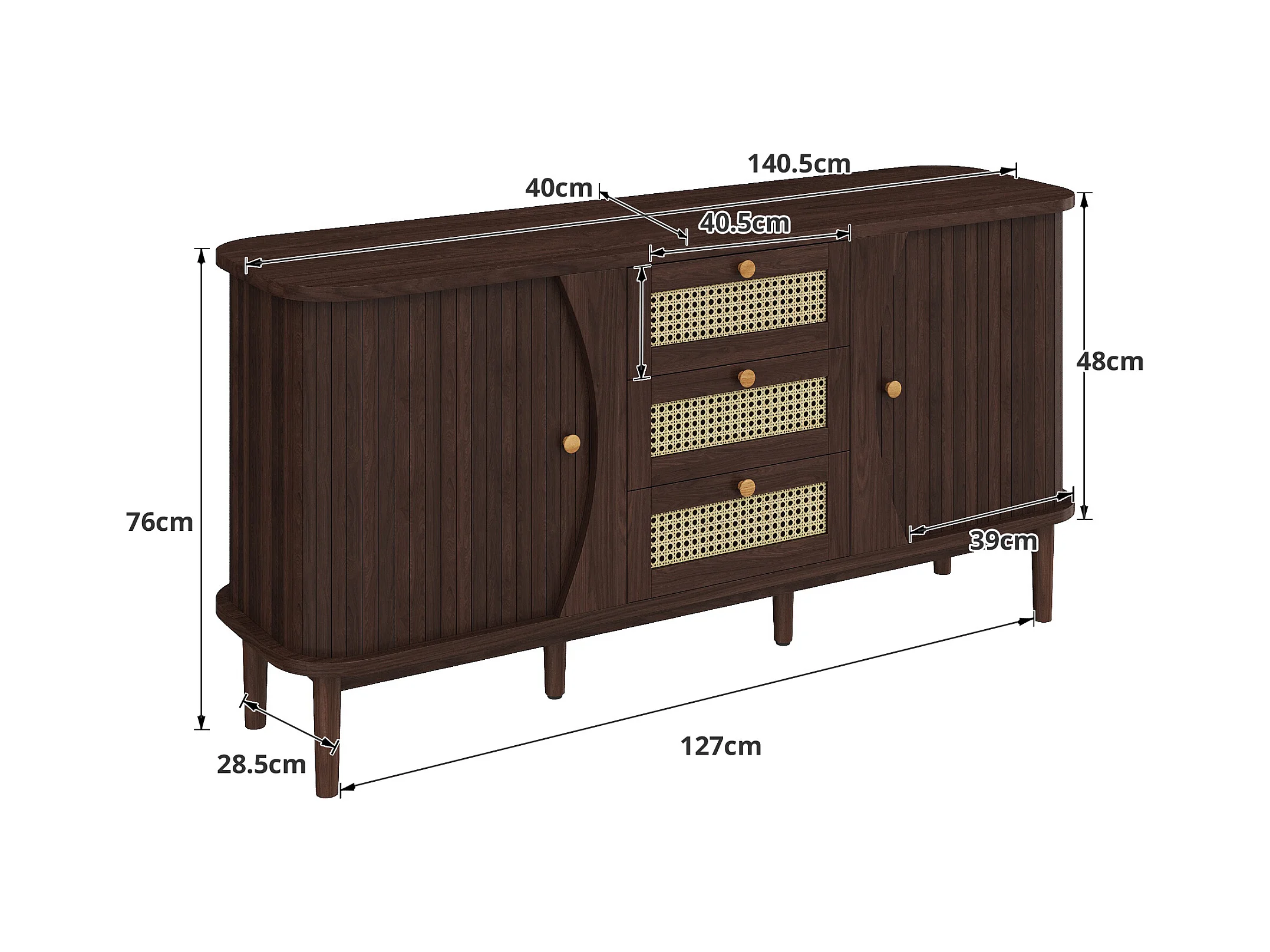Buffet moderne - 2 portes en rotin avec 3 tiroirs - Marron