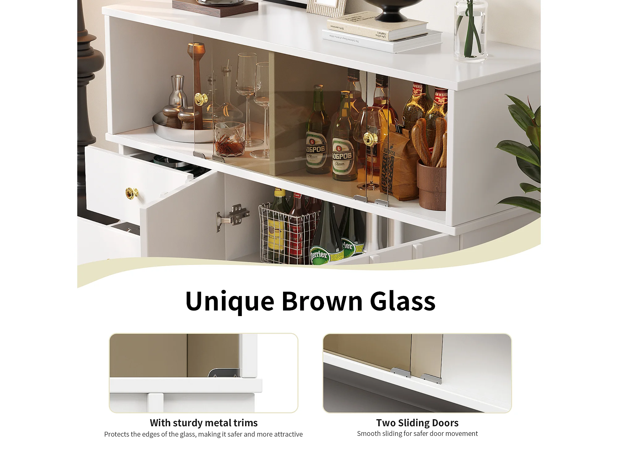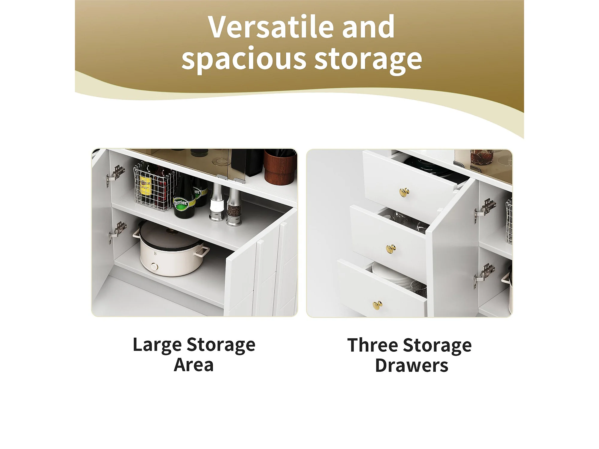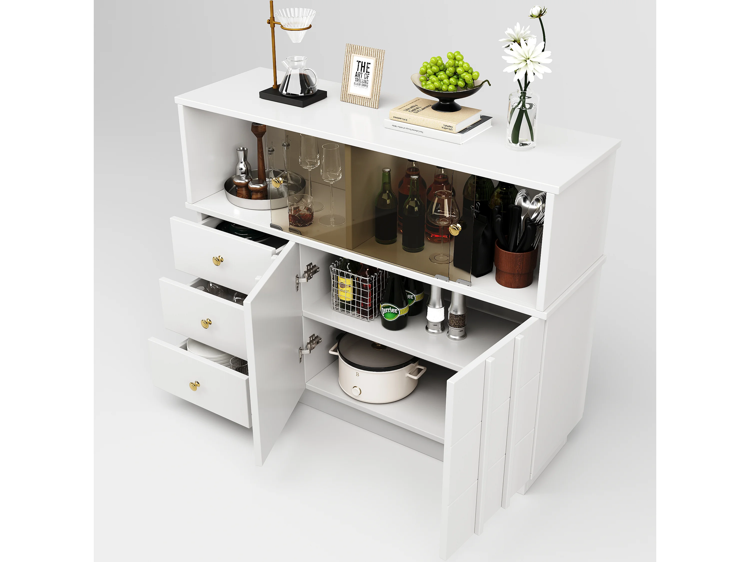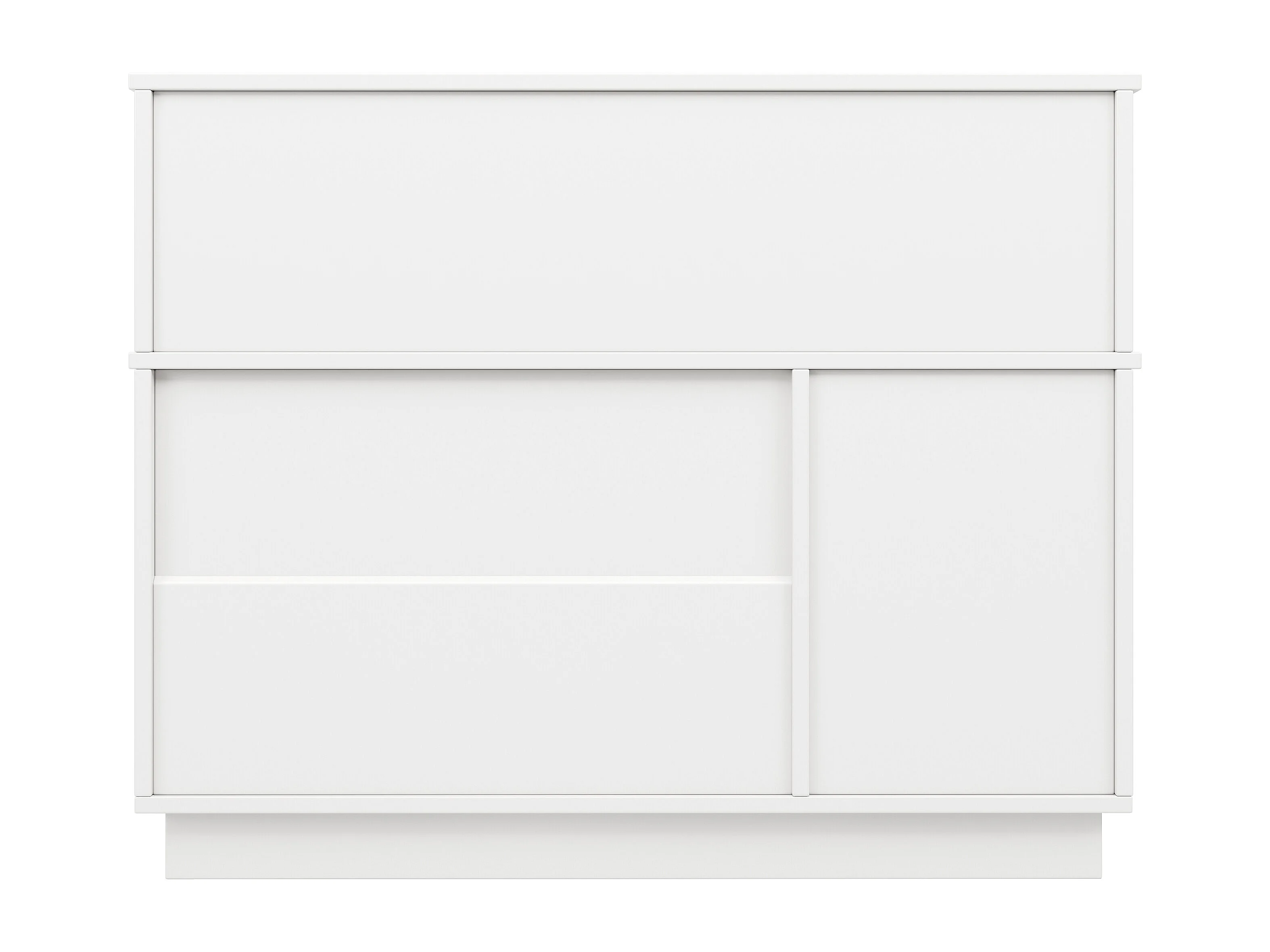 Buffet moderne - 3 tiroirs、2 étagères et cloison vitrée - MDF - Blanc