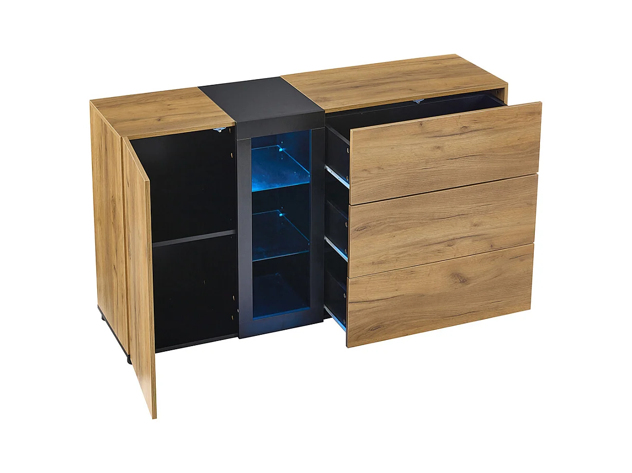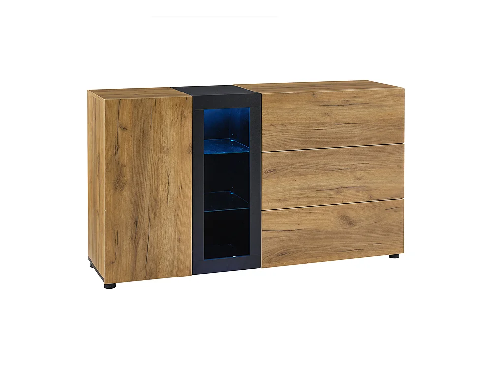 Buffet moderne 3 tiroirs console appoint rangement vitrine marron