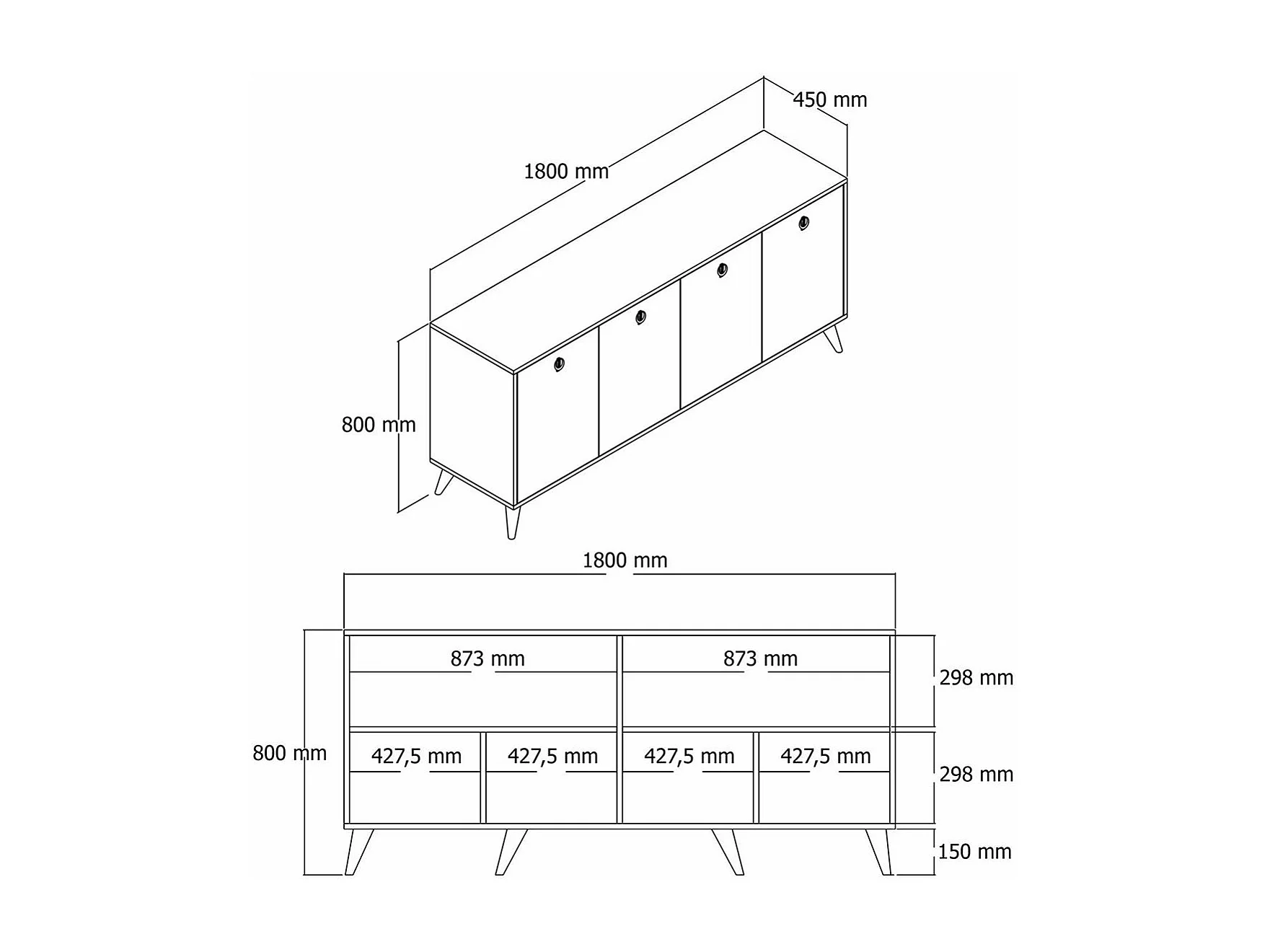 Buffet moderne 4 portes effet noyer, poignées à anneaux UMEA