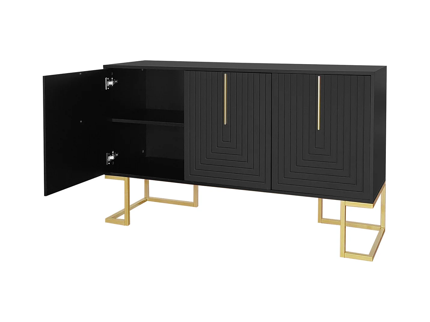Buffet moderne à 3 portes avec étagères réglables, portes d'armoire en U, 138 x 40 x 80 cm, Noir