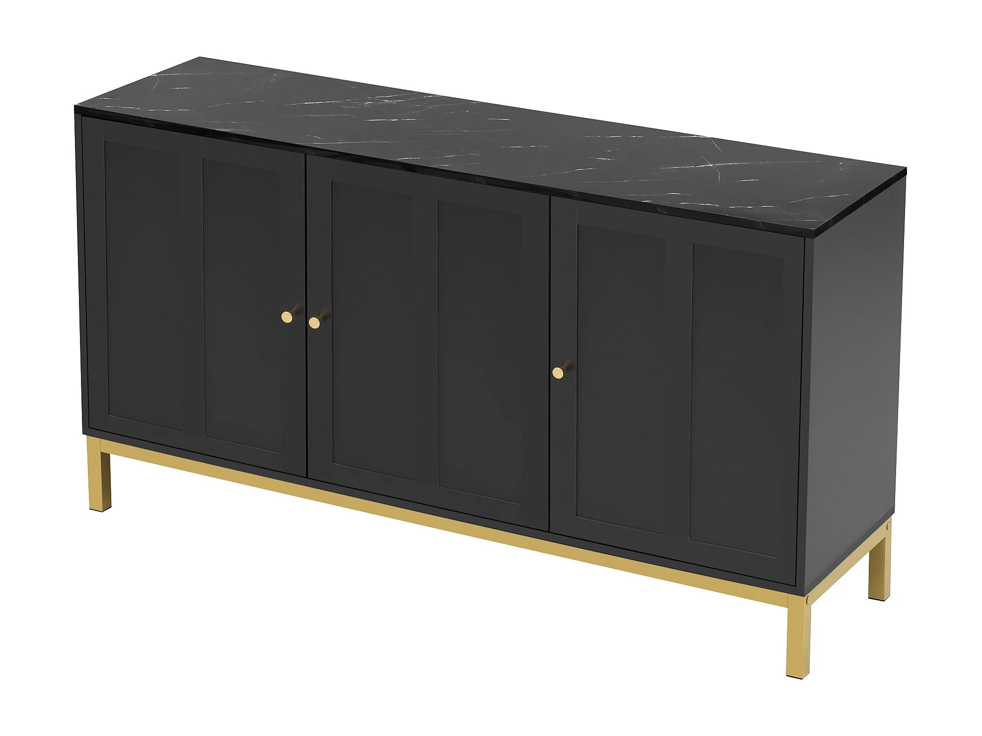 Buffet moderne avec 3 portes - 140 x 40 x 80 cm - MDF - pour salon ou cuisine - Noir et or