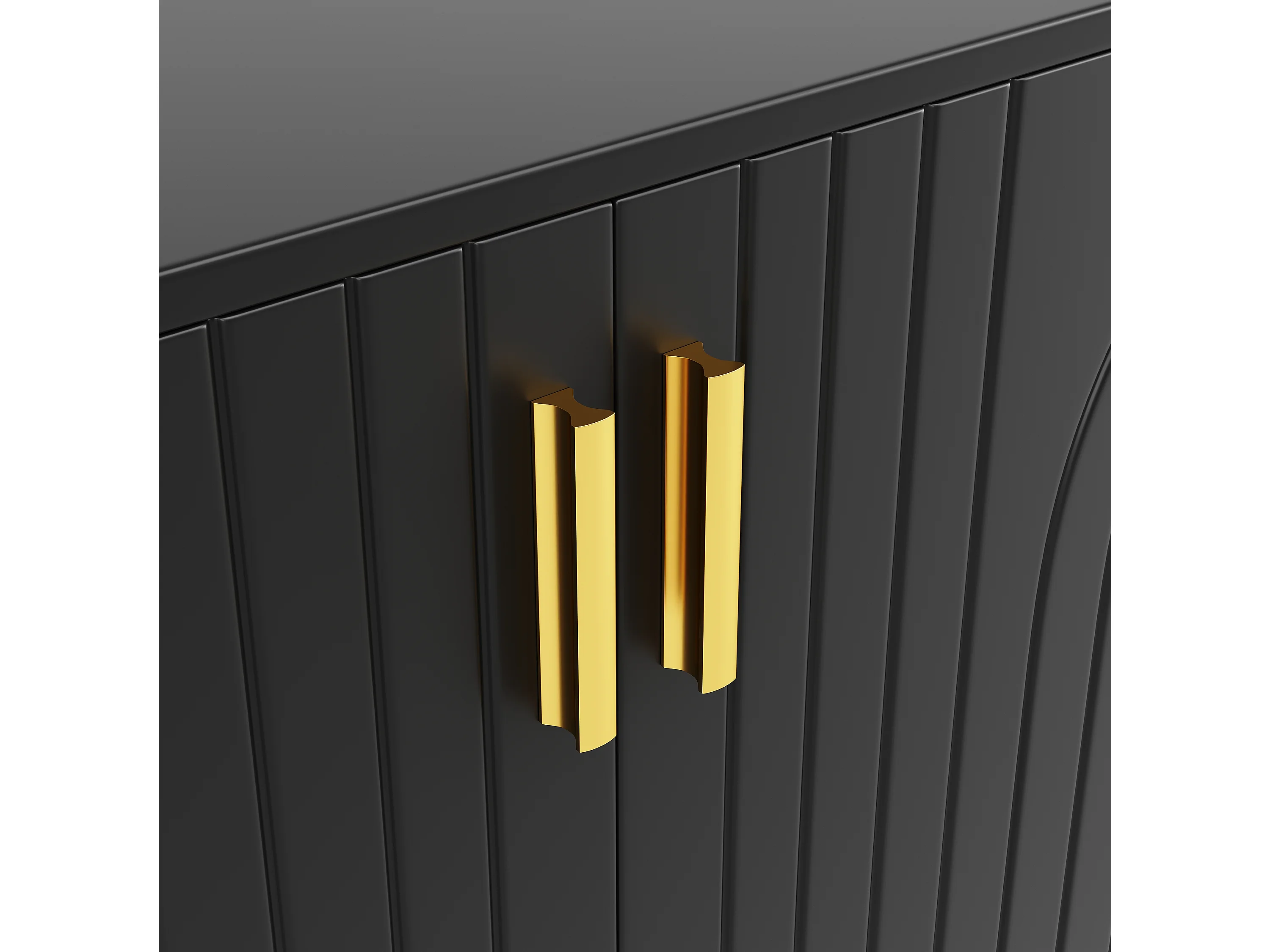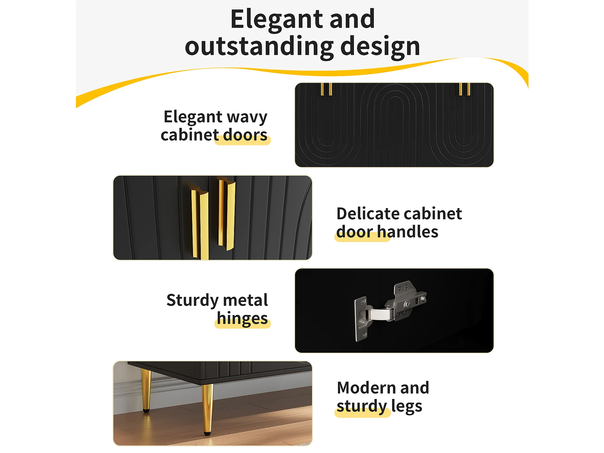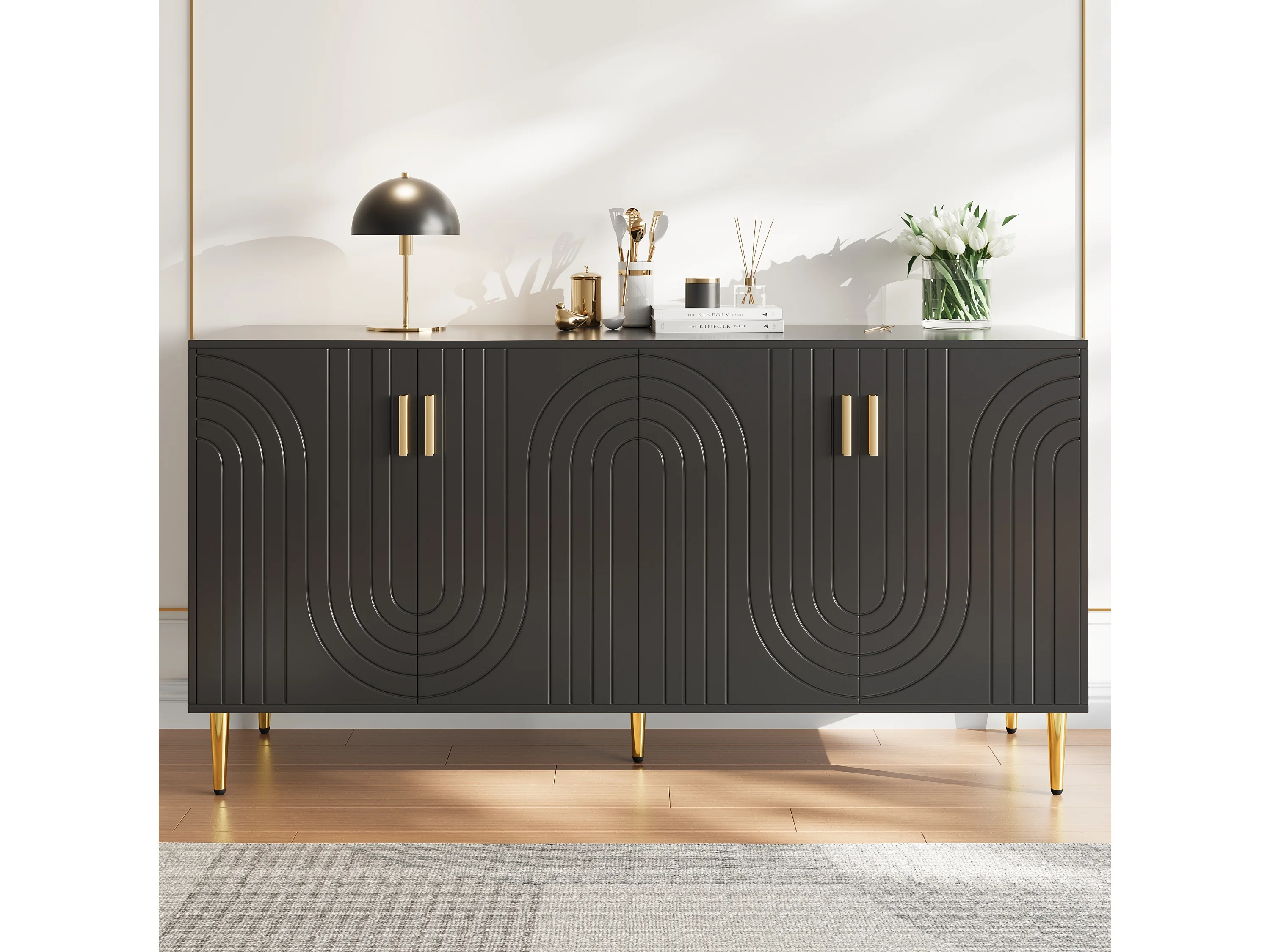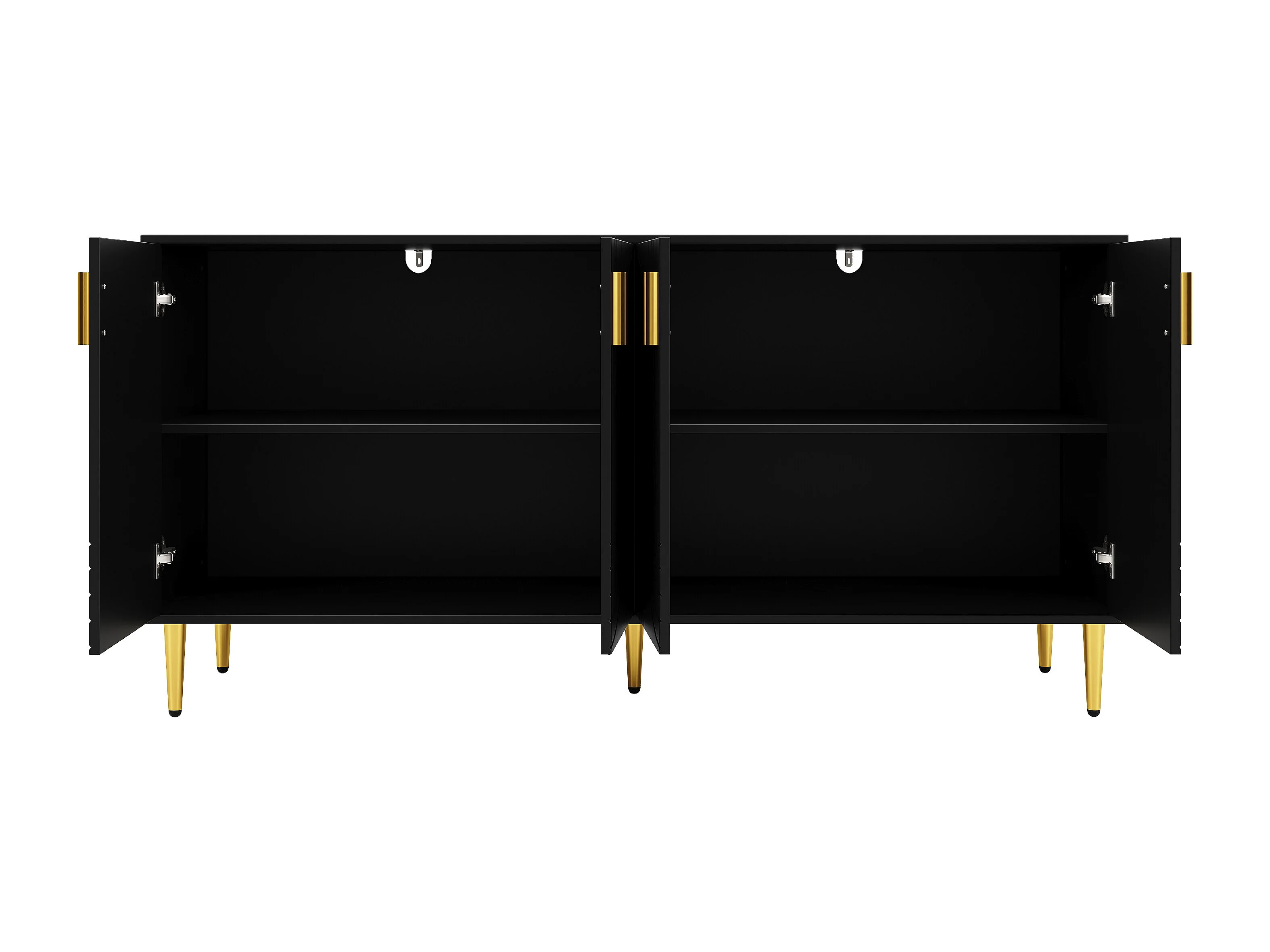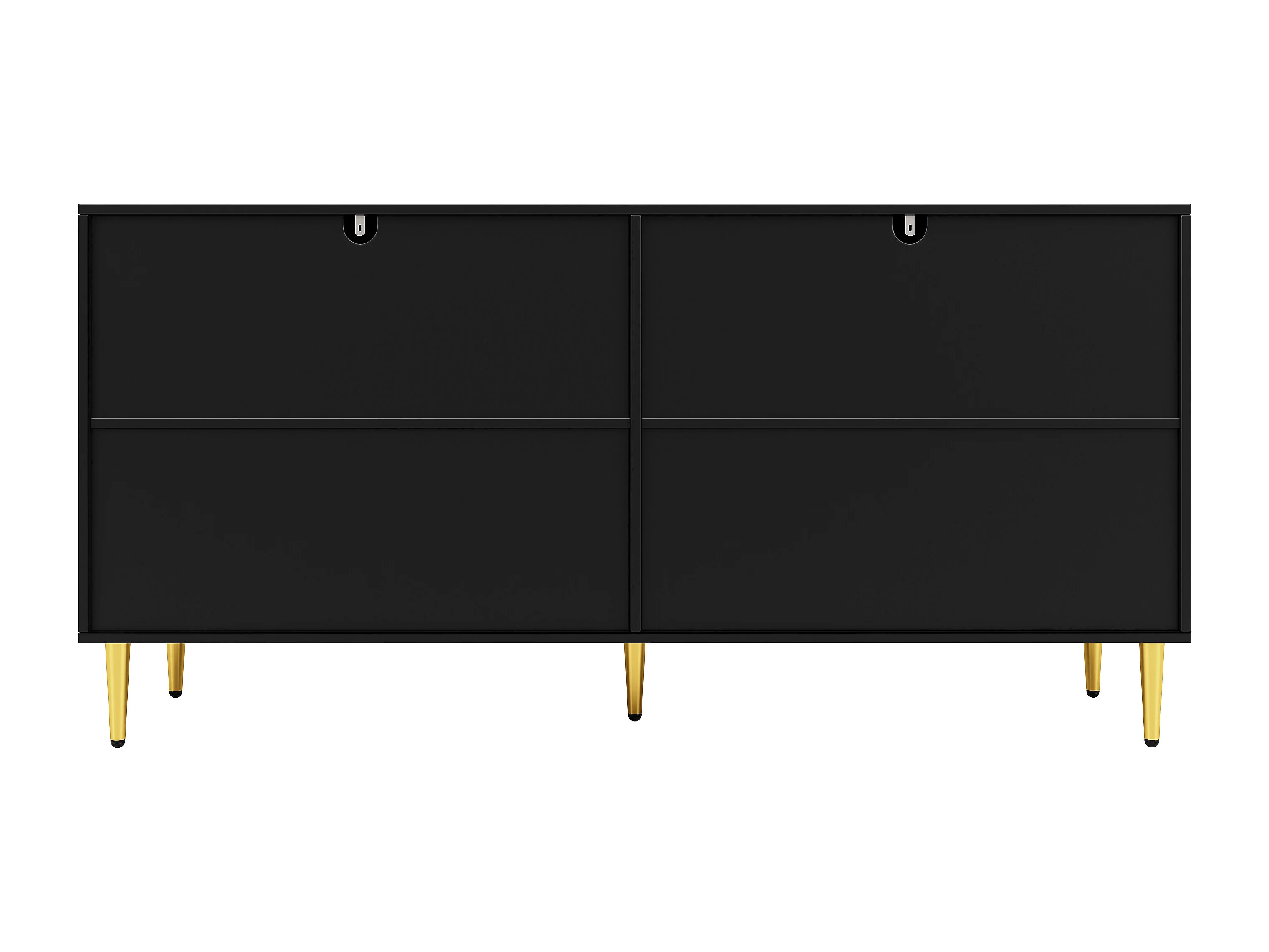 Buffet moderne avec 4 portes et 2 tiroirs, poignées et pieds dorés, 152 x 40 x 75 cm, Noir