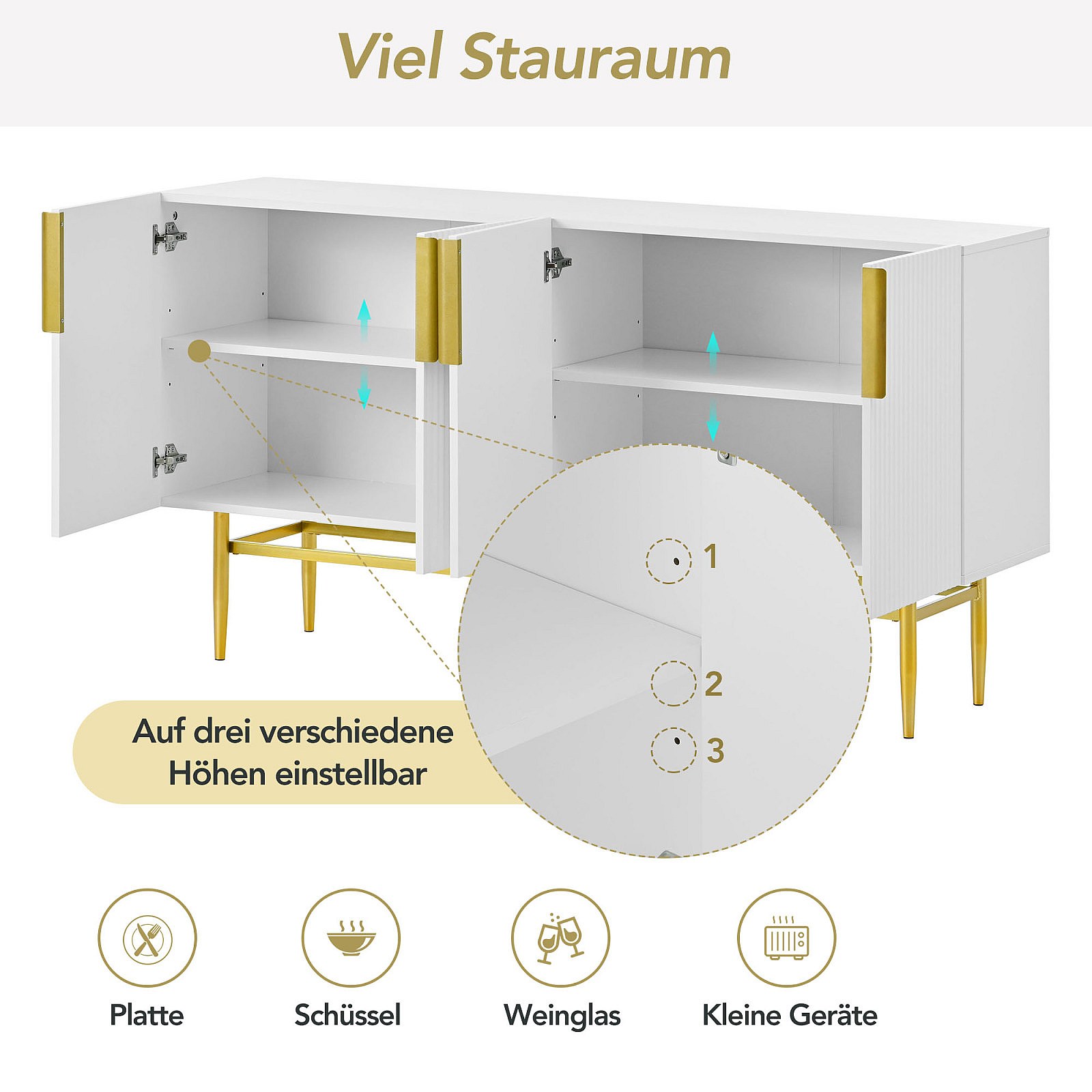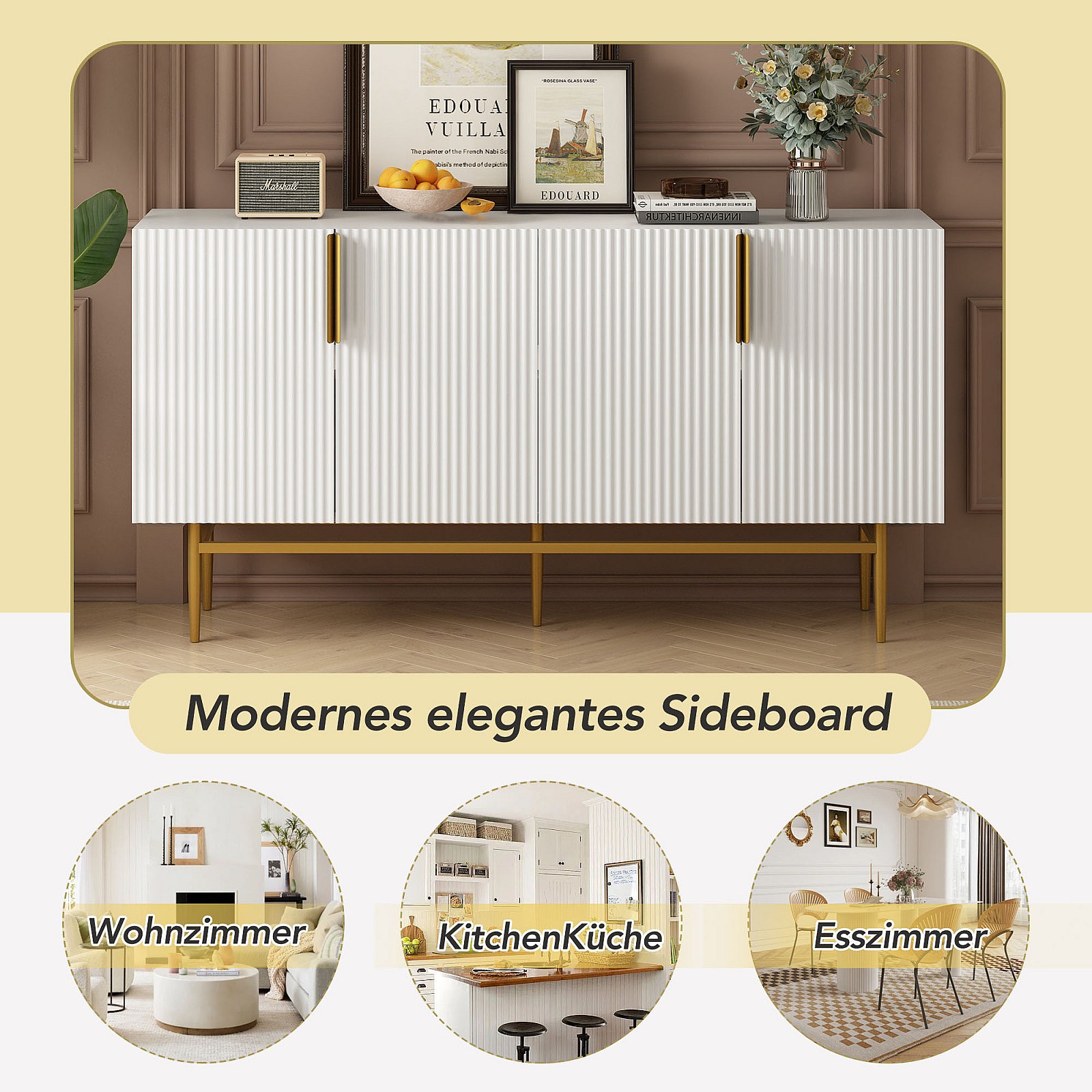 Buffet moderne et élégant 4 portes – Poignées en métal doré – Meuble blanc pour salle à manger, salon, chambre ou entrée