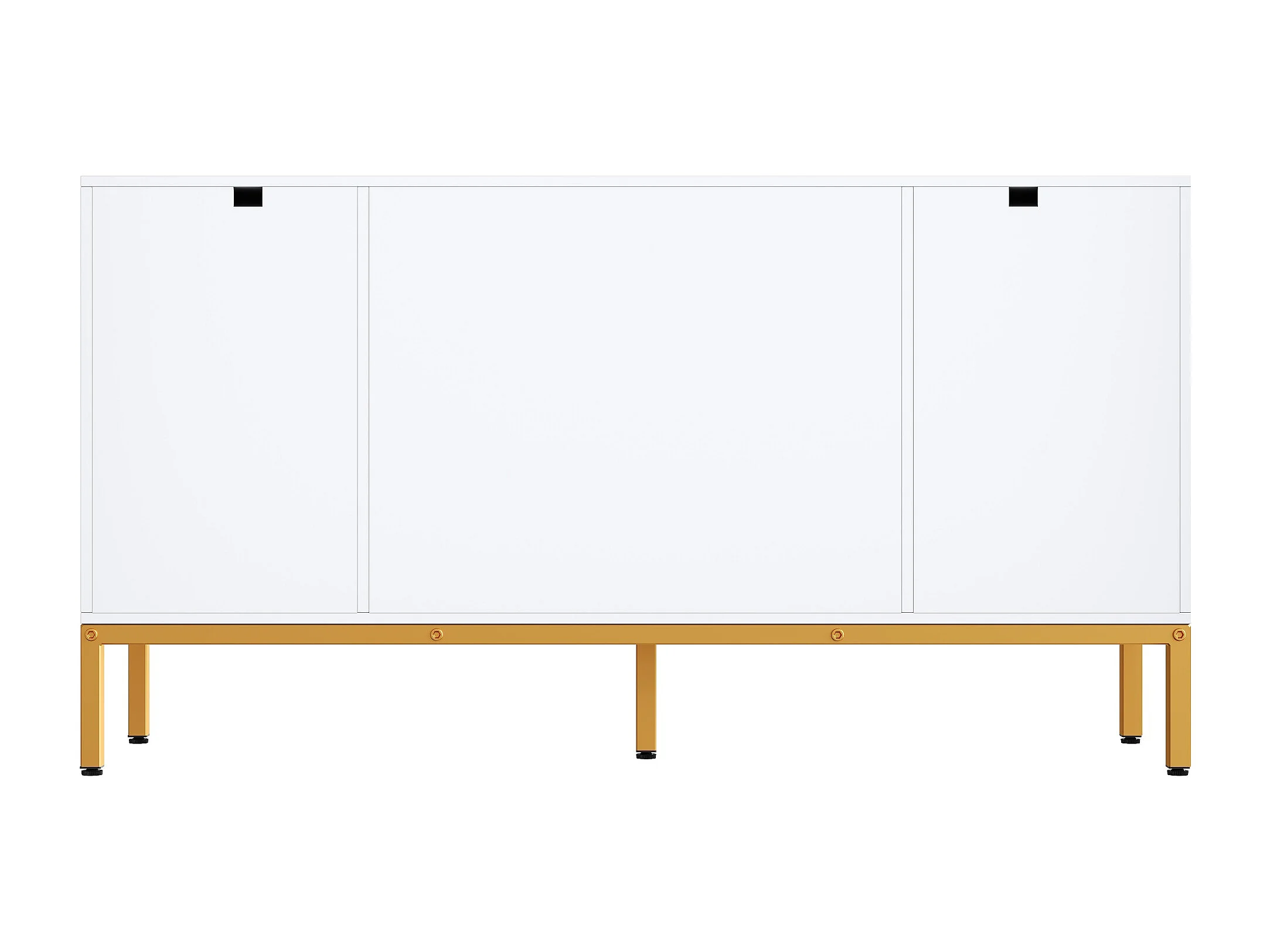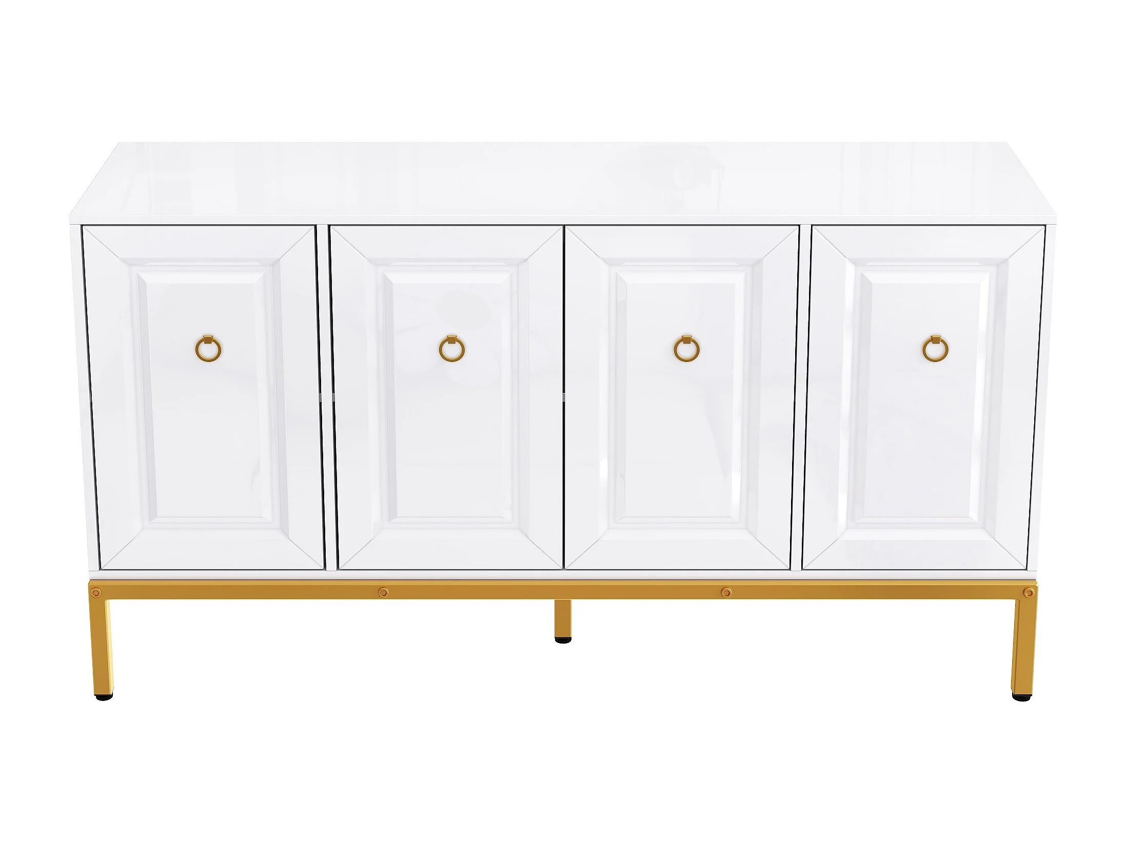 Buffet moderne et simple, 140×80×40 cm, poignées et pieds dorés, étagères, panneau de particules + MDF blanc
