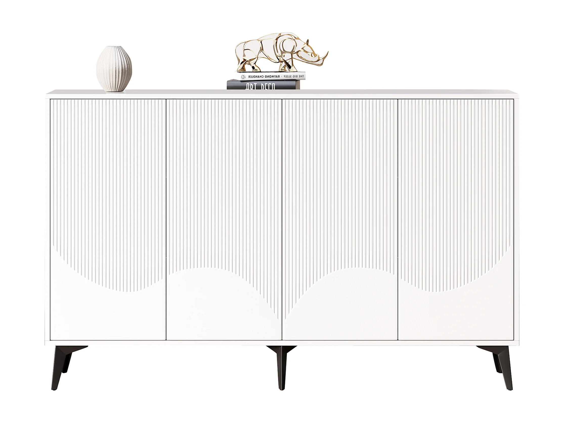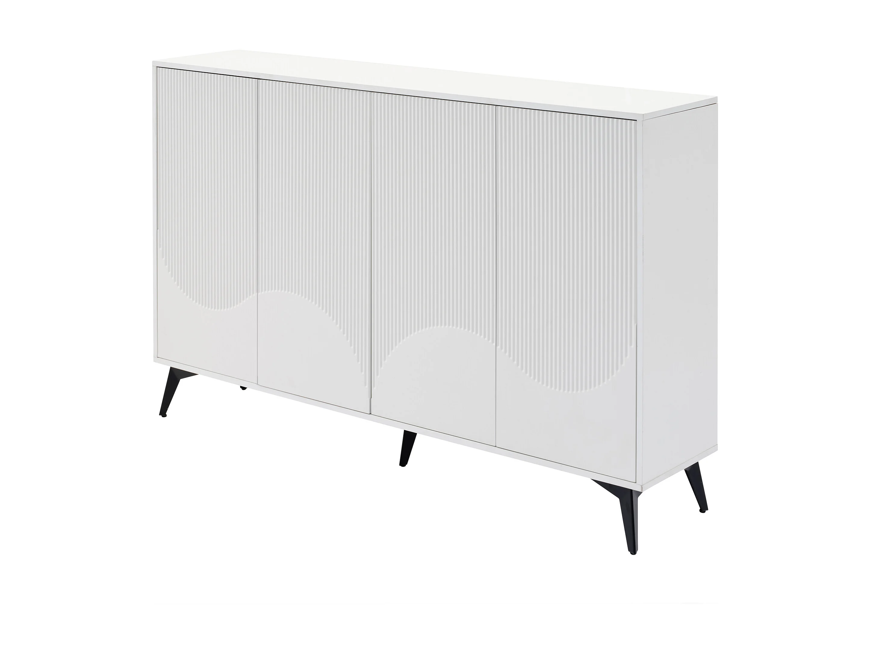 Buffet moderne pour salon - 160 x 35 x 100 cm - avec 4 portes - pieds en métal - aggloméré - blanc