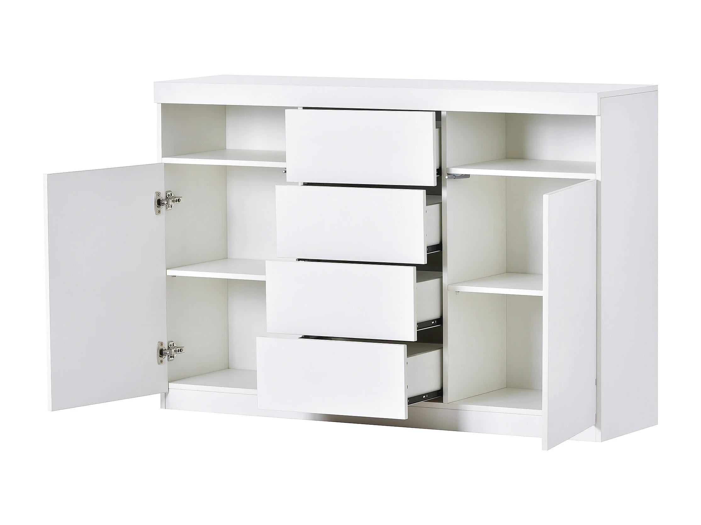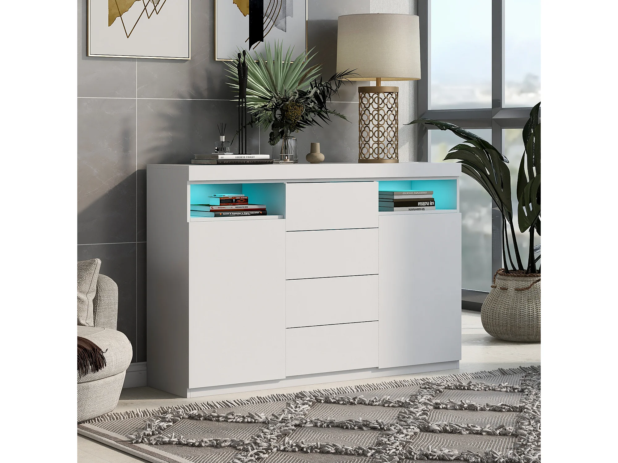 Buffet modrne avec LED - 4 tiroirs & 2 compartements ouvertes - blanc