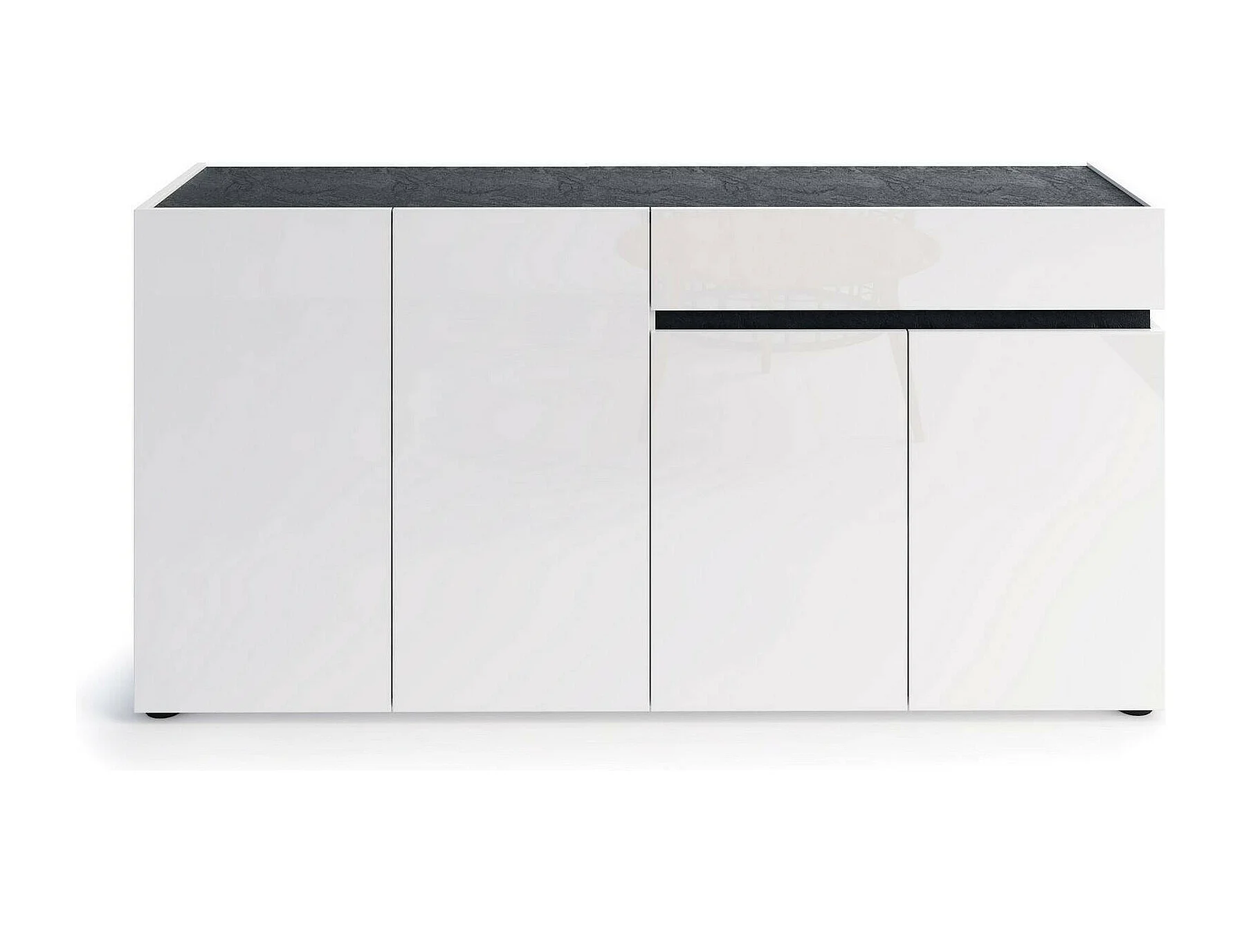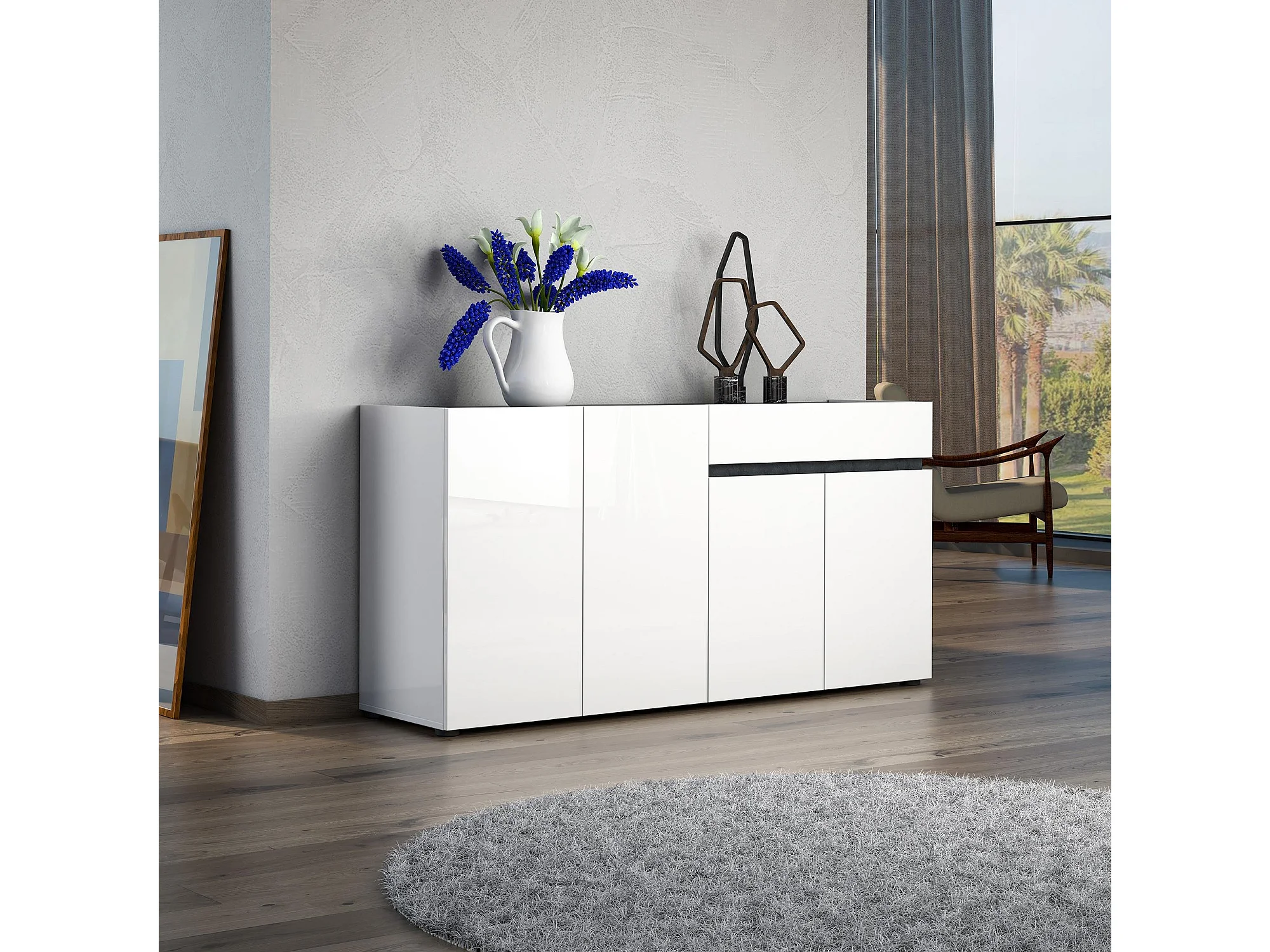 Beinette - Credenza, 42x160x80h cm Bianco Lucido, 2 Ripiani Made in Italy