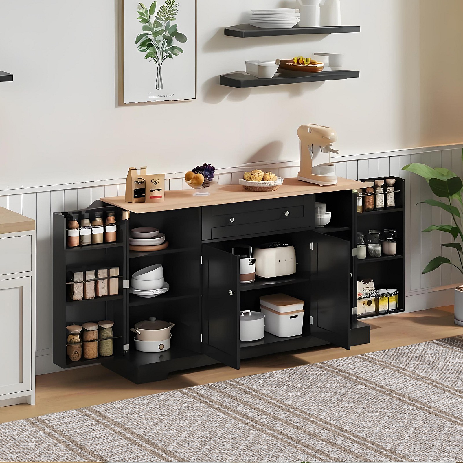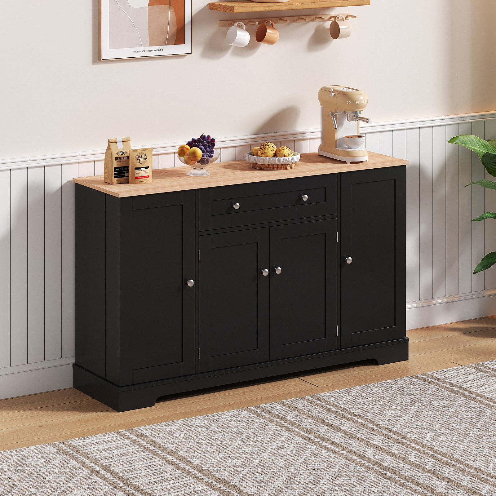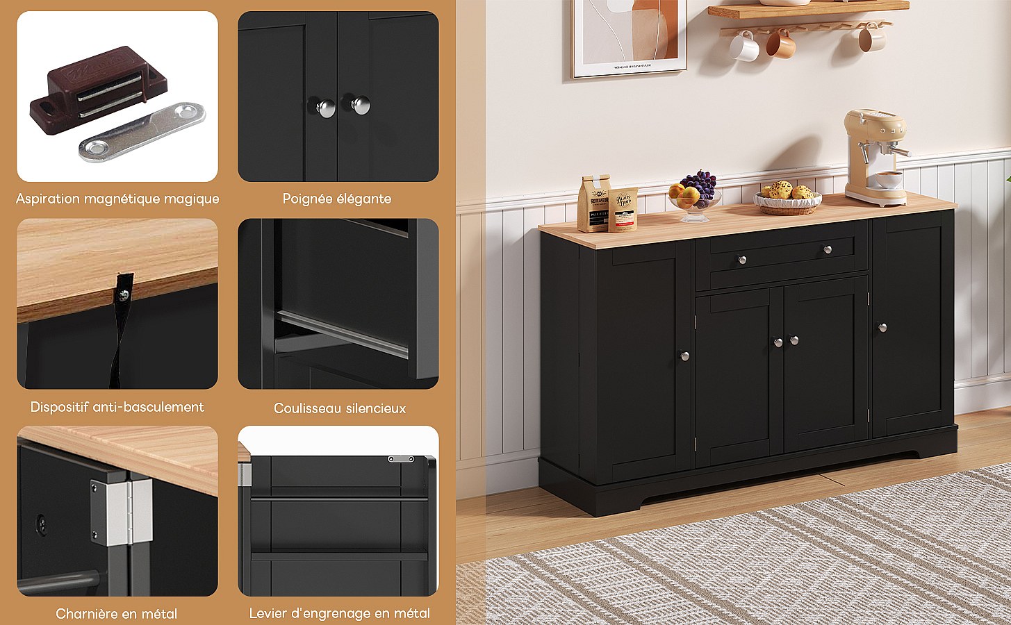 Buffet multifonction avec tiroir, portes et étagères réglables – Design moderne avec protection anti-basculement, idéal cuisine, salon