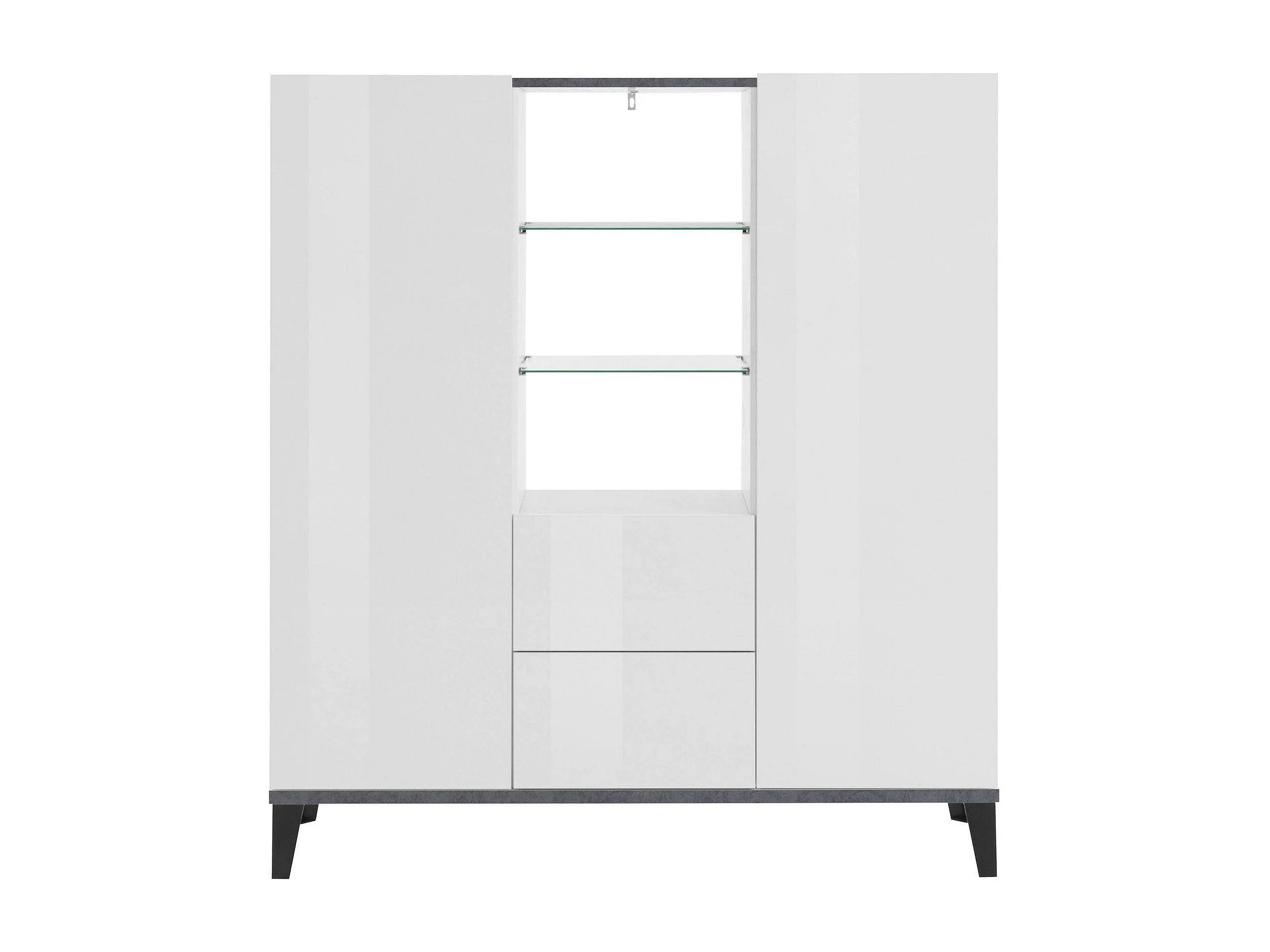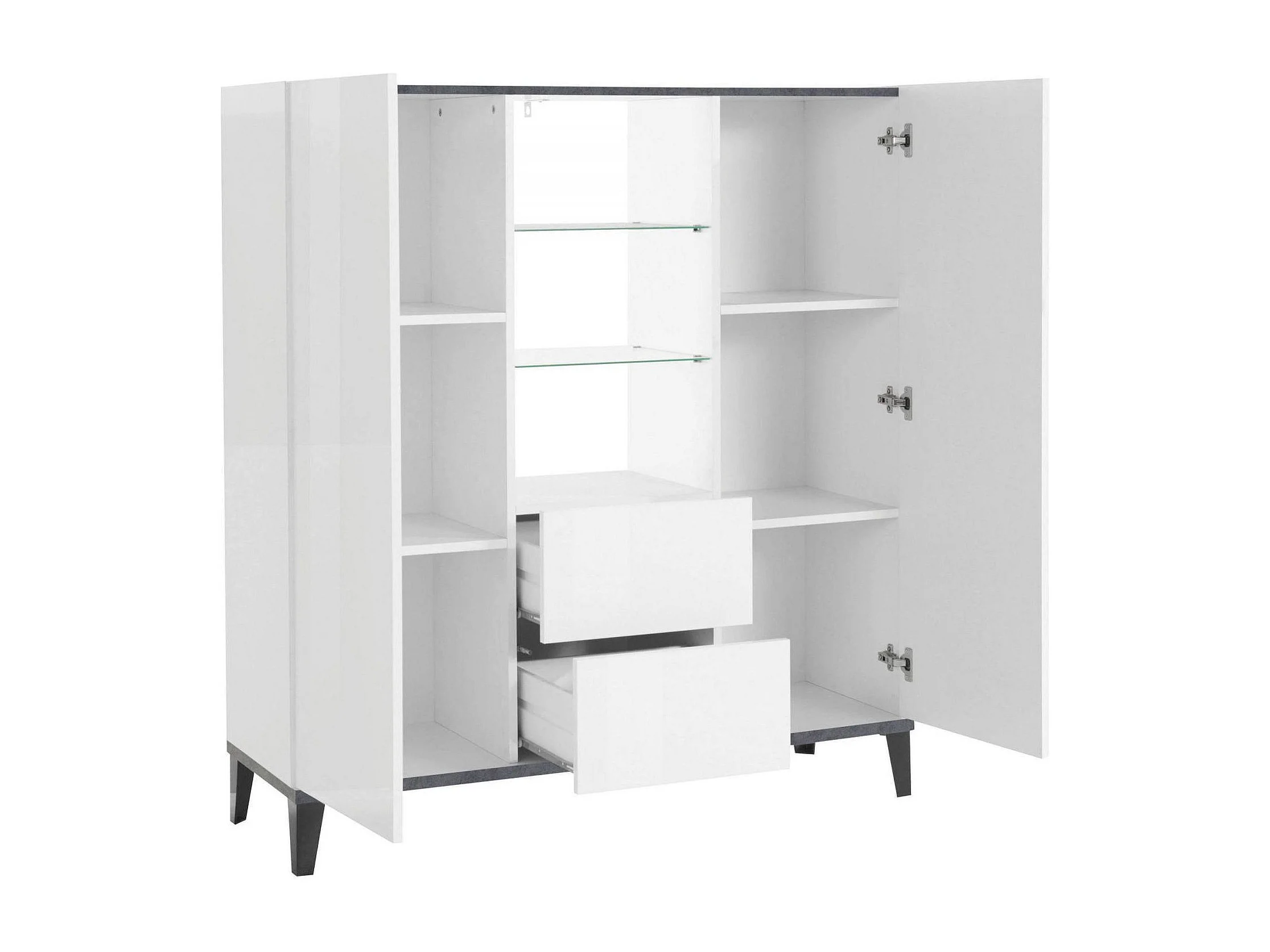 Buffet Niccolò, Buffet de cuisine avec 2 portes et 2 tiroirs, Buffet de salon, 100% Made in Italy, 120x40h133 cm, Blanc brillant et ardoise