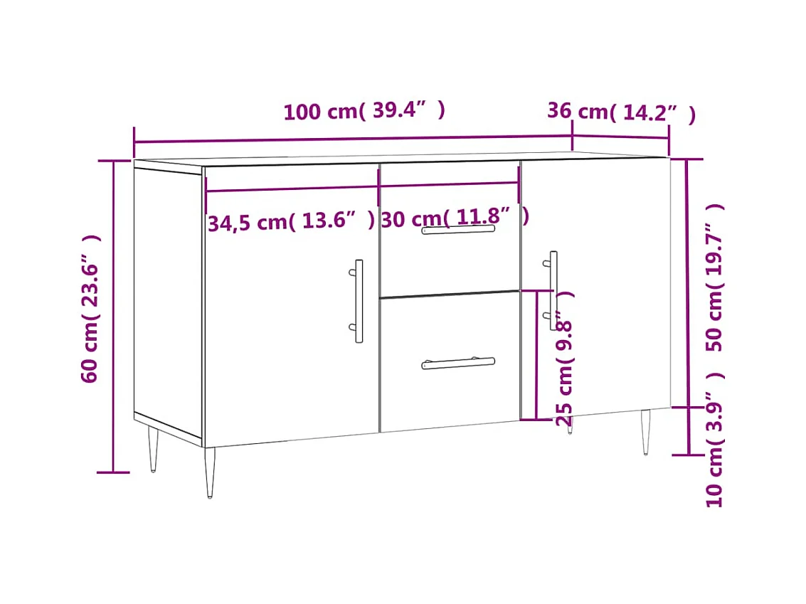 Buffet noir 100x36x60 cm bois d'ingénierie