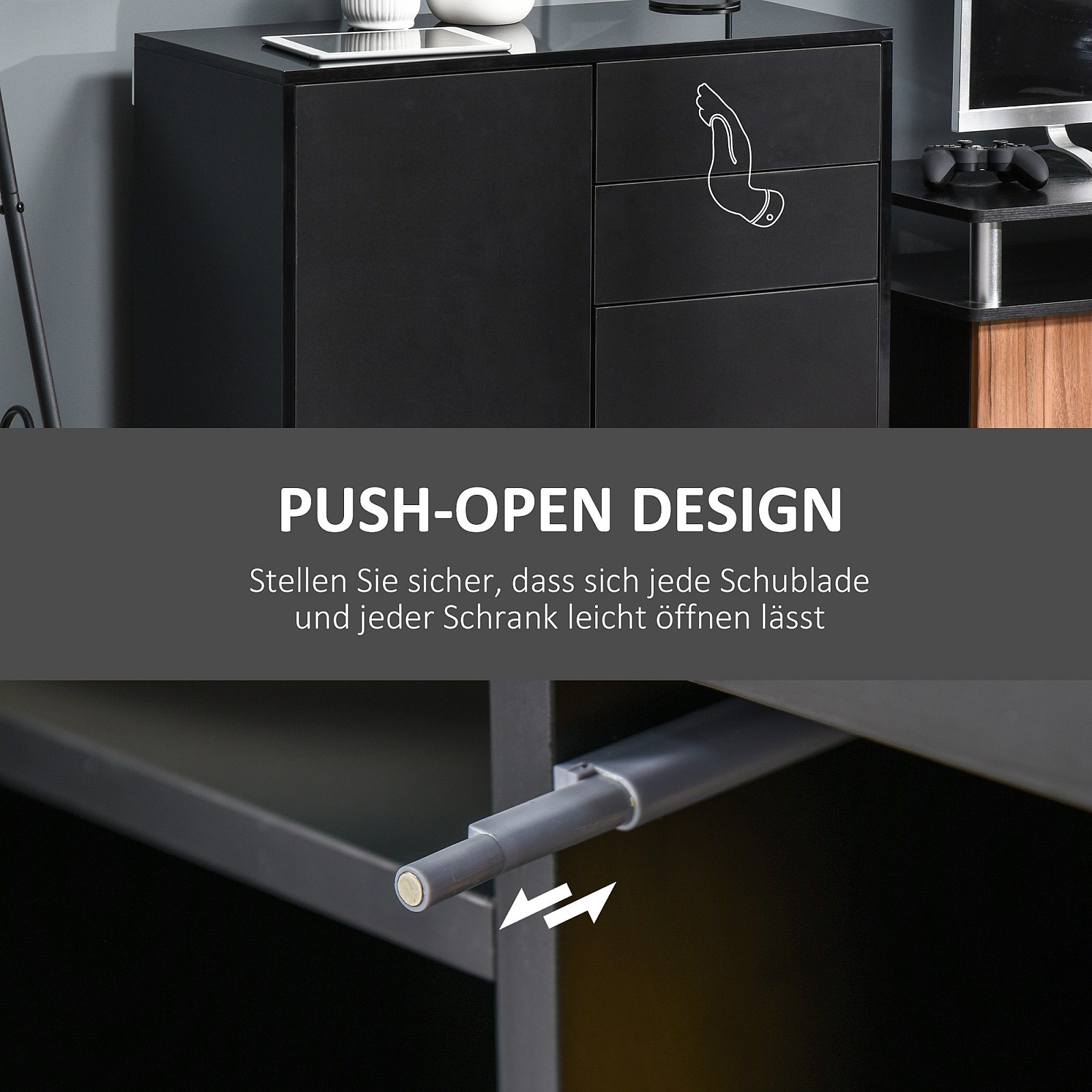 Buffet noir avec 2 tiroirs et 2 portes – Design moderne avec dispositif anti-basculement, 117 x 36 x 74 cm, idéal pour salon et chambre