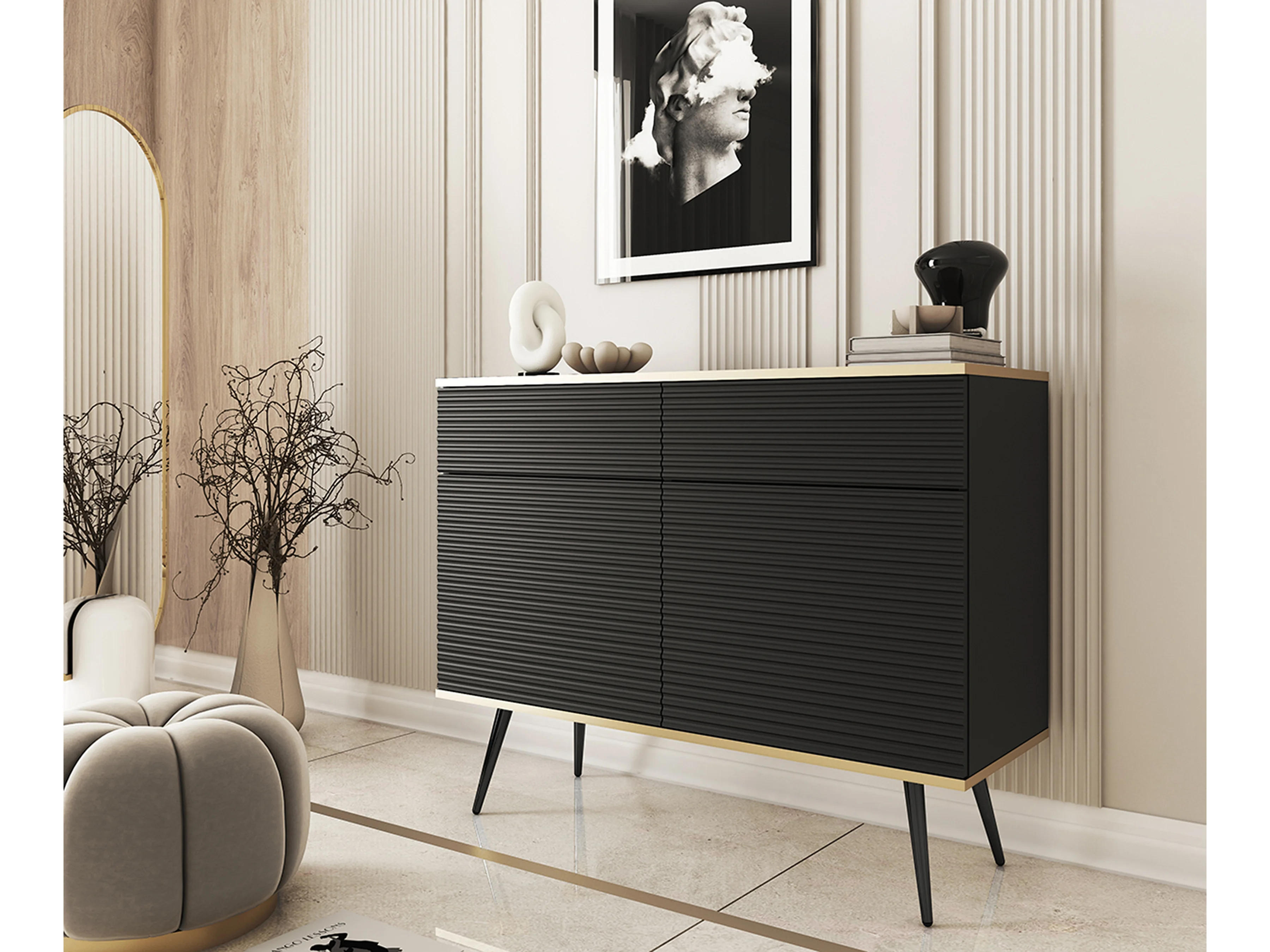 Buffet noir glamour avec pieds noirs, 107 x 39 x 85 cm
