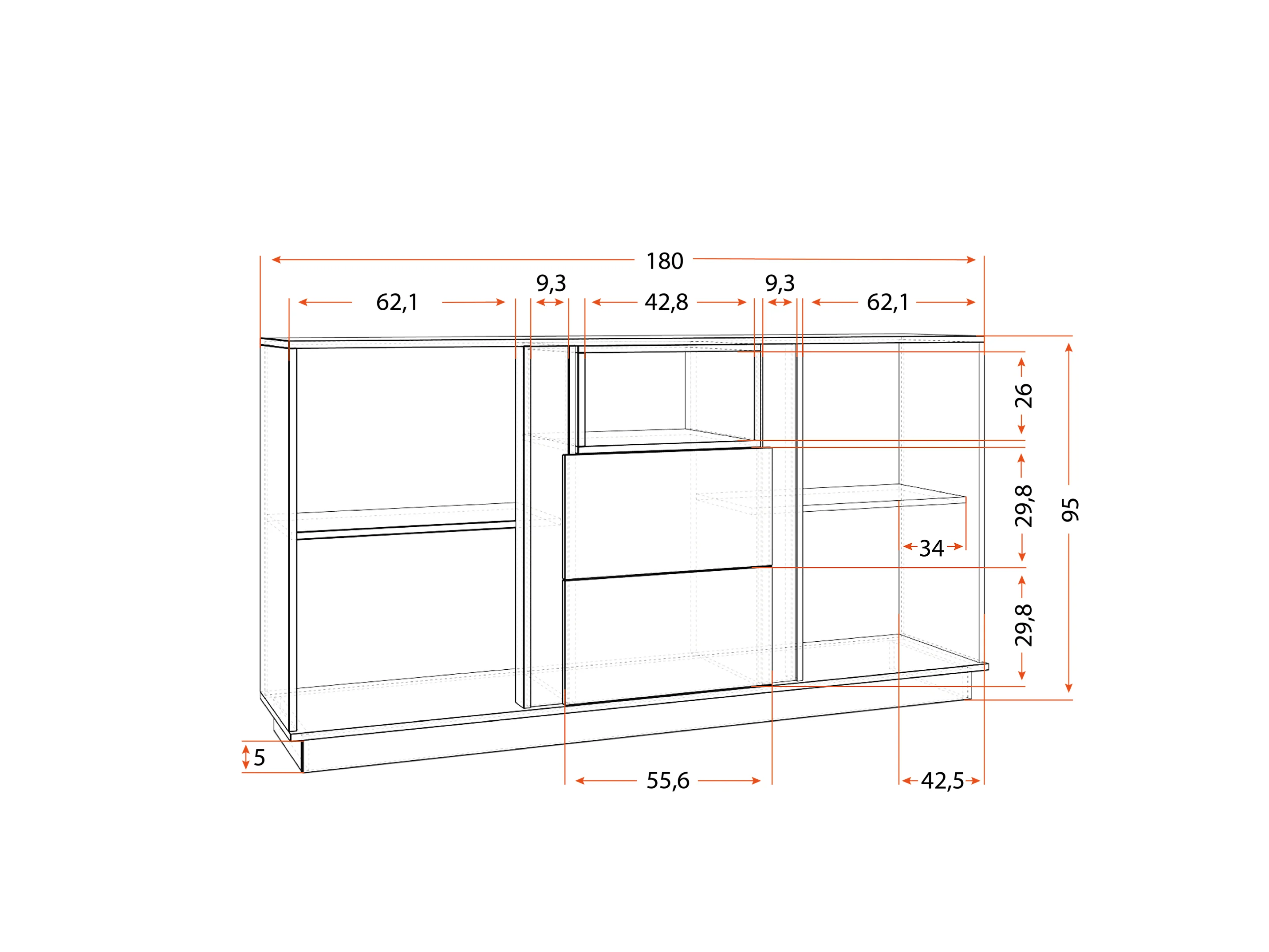 Buffet Orien 180 cm - Gris