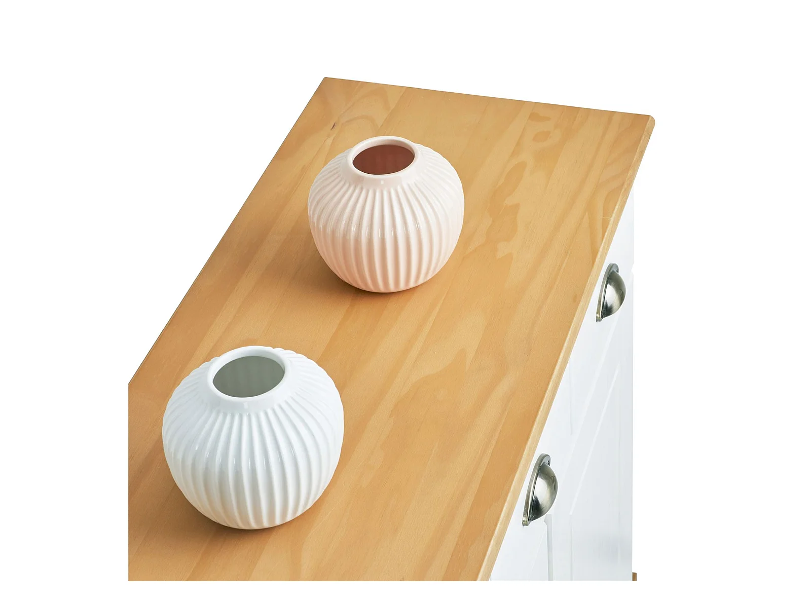 Buffet salle à manger PARIS en bois massif L 116 cm avec 3 portes battantes et 2 tiroirs spacieux, blanc et brun