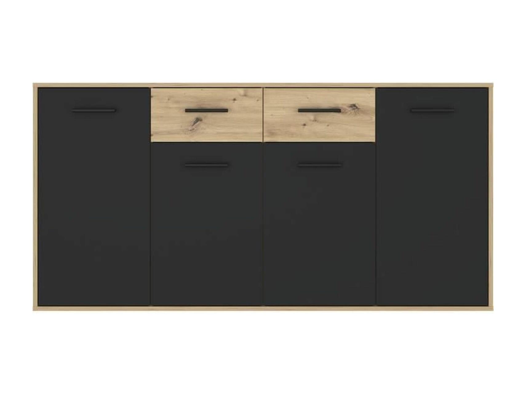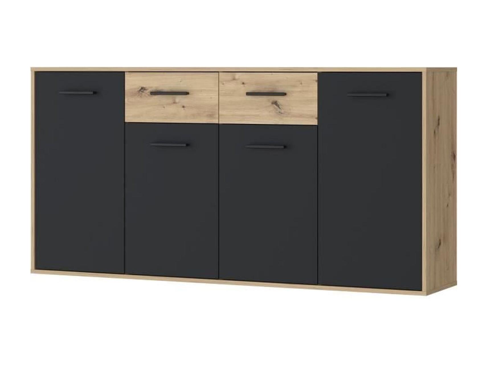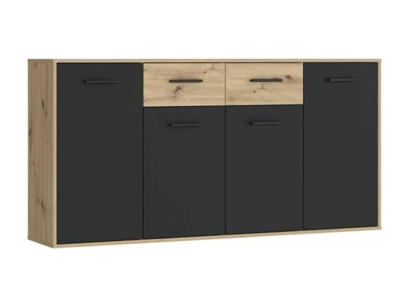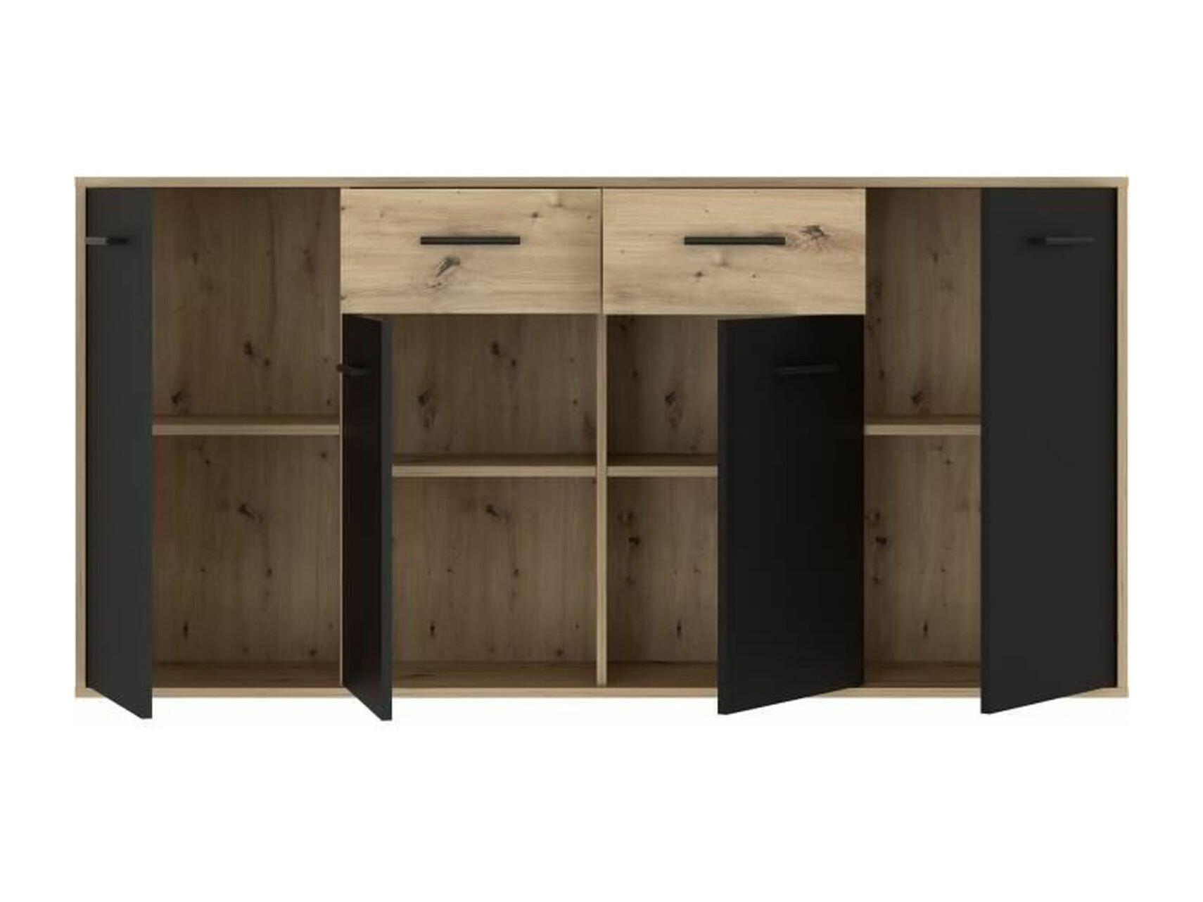 Buffet Particules mélaminé - chêne et noir - 4 portes + 2 tiroirs - 162,3 x 34,2 x 81,7 cm