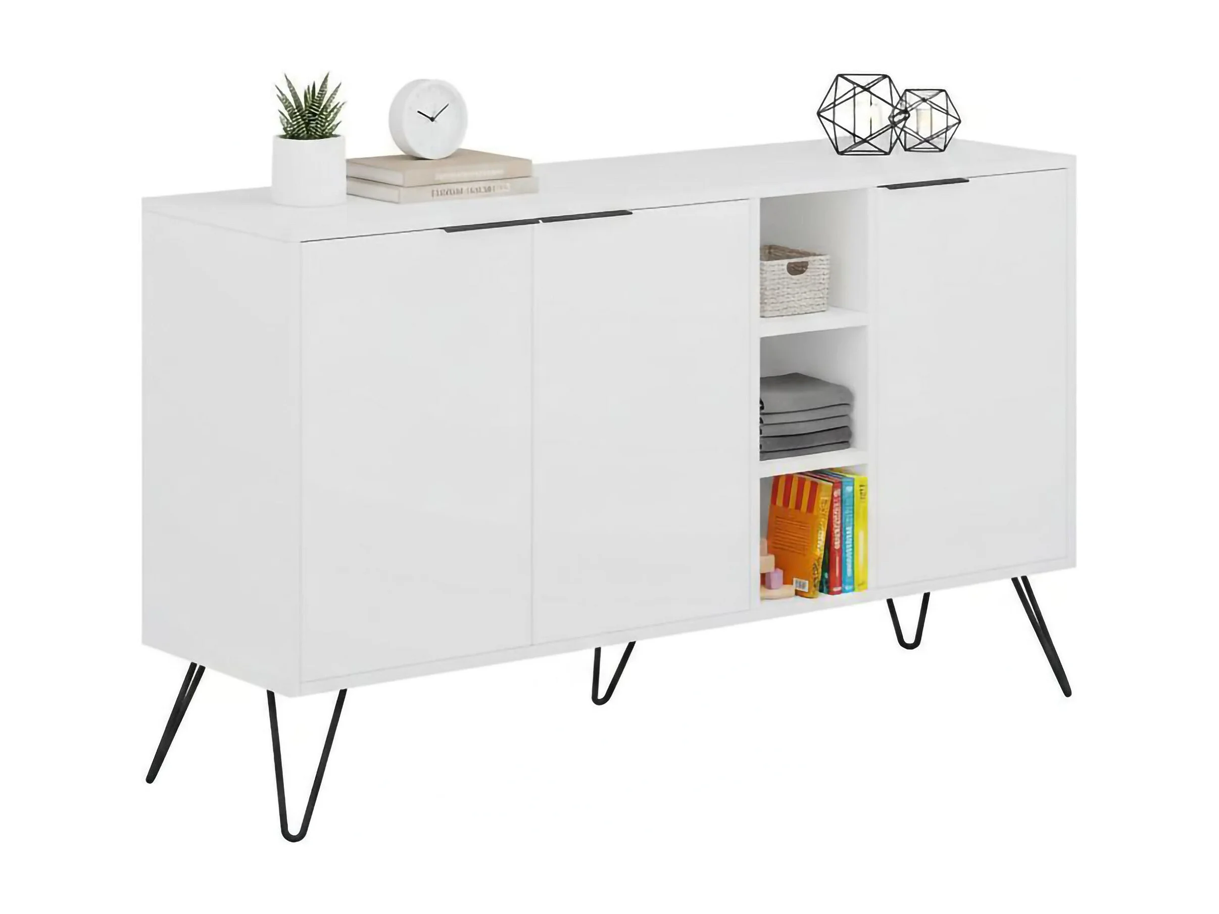 Buffet Perseus, Buffet du salon, Commode de salon, Garde-manger de cuisine, 142x36h83 cm, Blanc