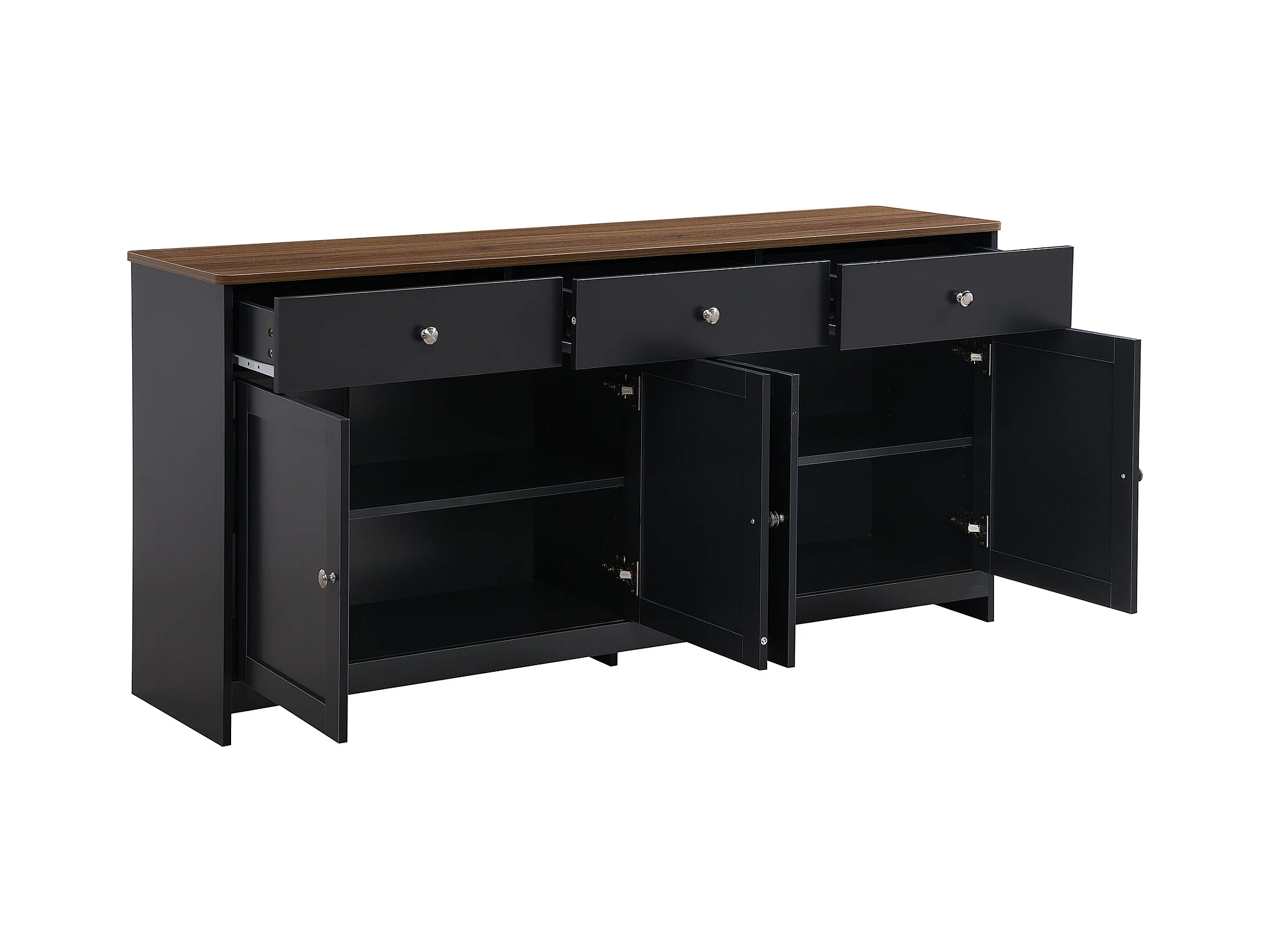 Buffet pour salon - 4 portes et 3 tiroirs - panneaux de particules - Gris noir