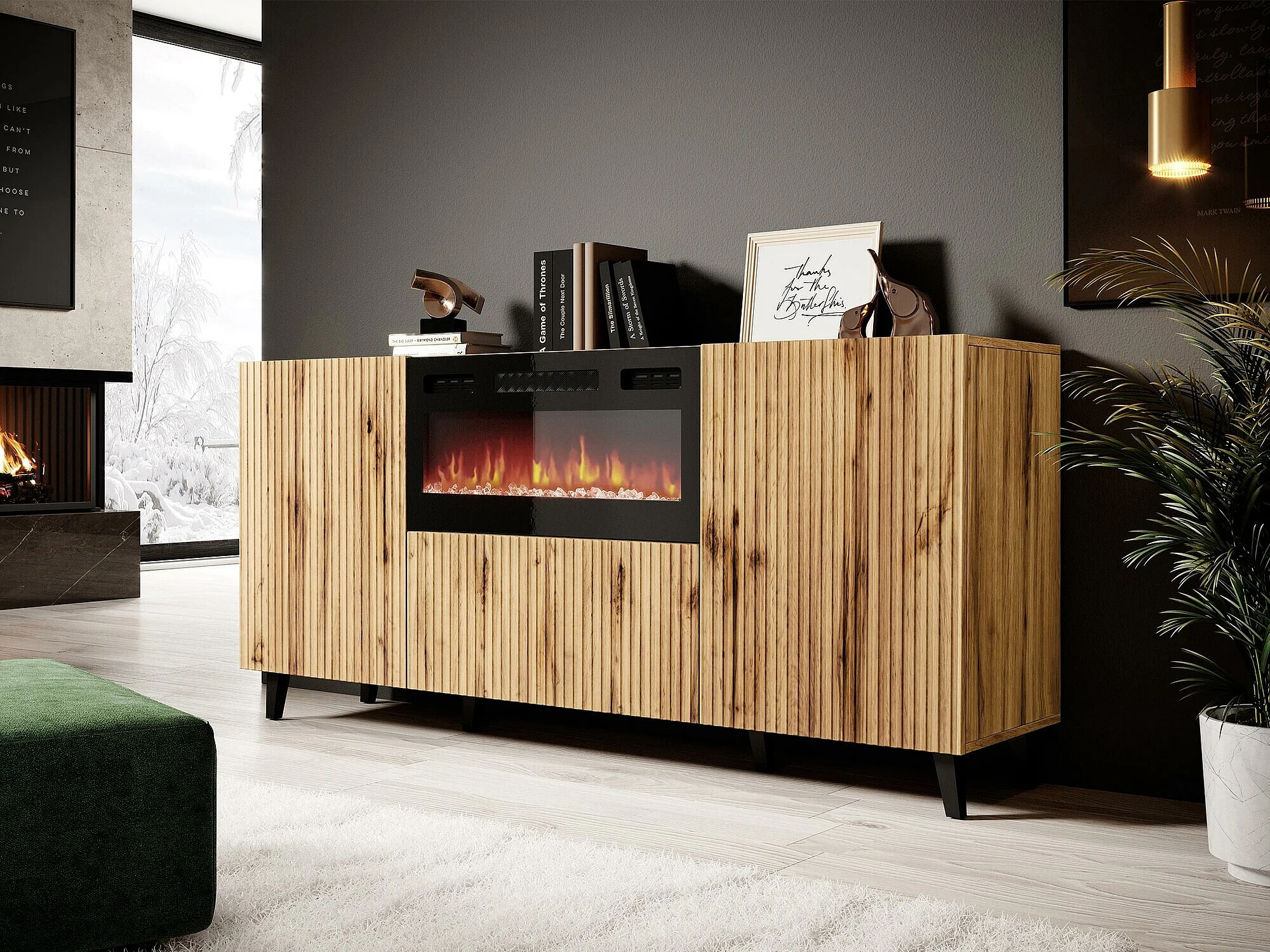 Buffet Remeta 106, Chêne wotan|Noir, 83x181cm, Le nombre de portes: 342cm, MDF|Stratifié