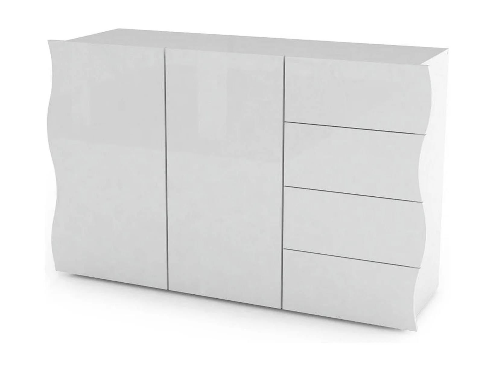 Buffet Romolo, Buffet de cuisine avec 2 portes et 4 tiroirs, Buffet de salon, 100% Made in Italy, 124x40h81 cm, Blanc brillant