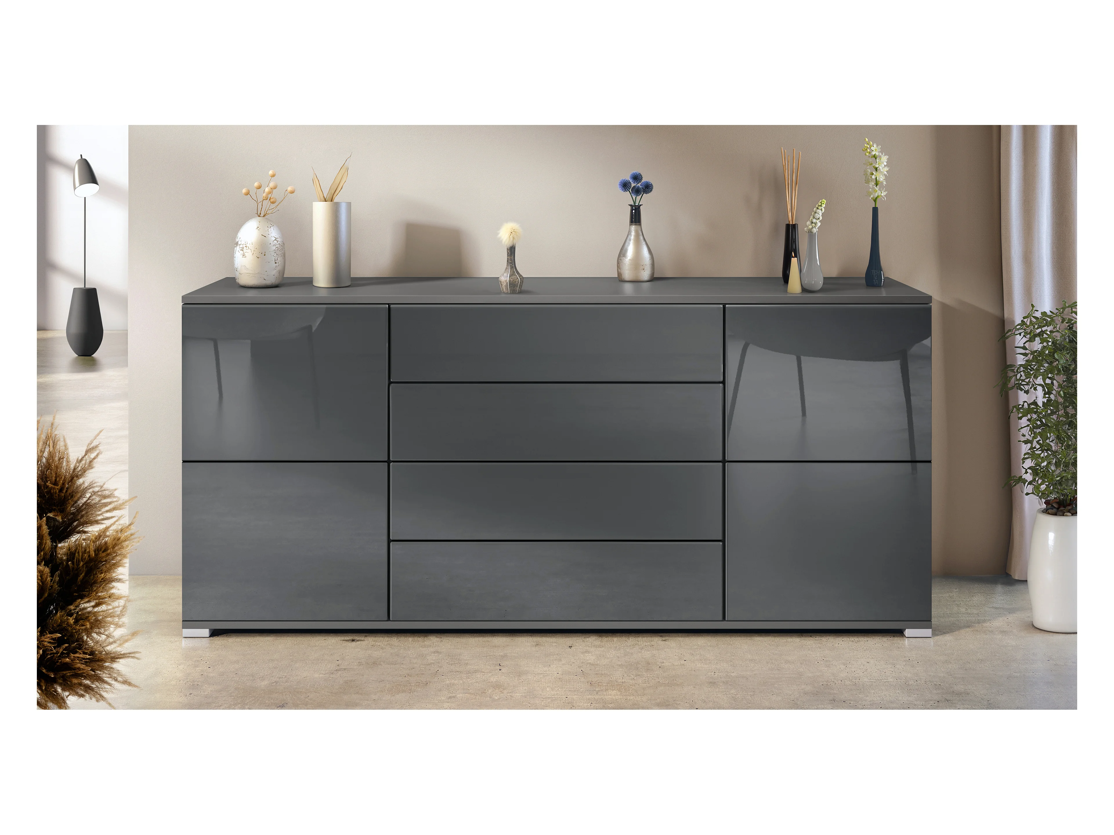 Buffet Rova V2 – Meuble avec 4 Portes et 4 Tiroirs, anthracite mat/gris haute brillance (166,5 x 75,5 x 35)