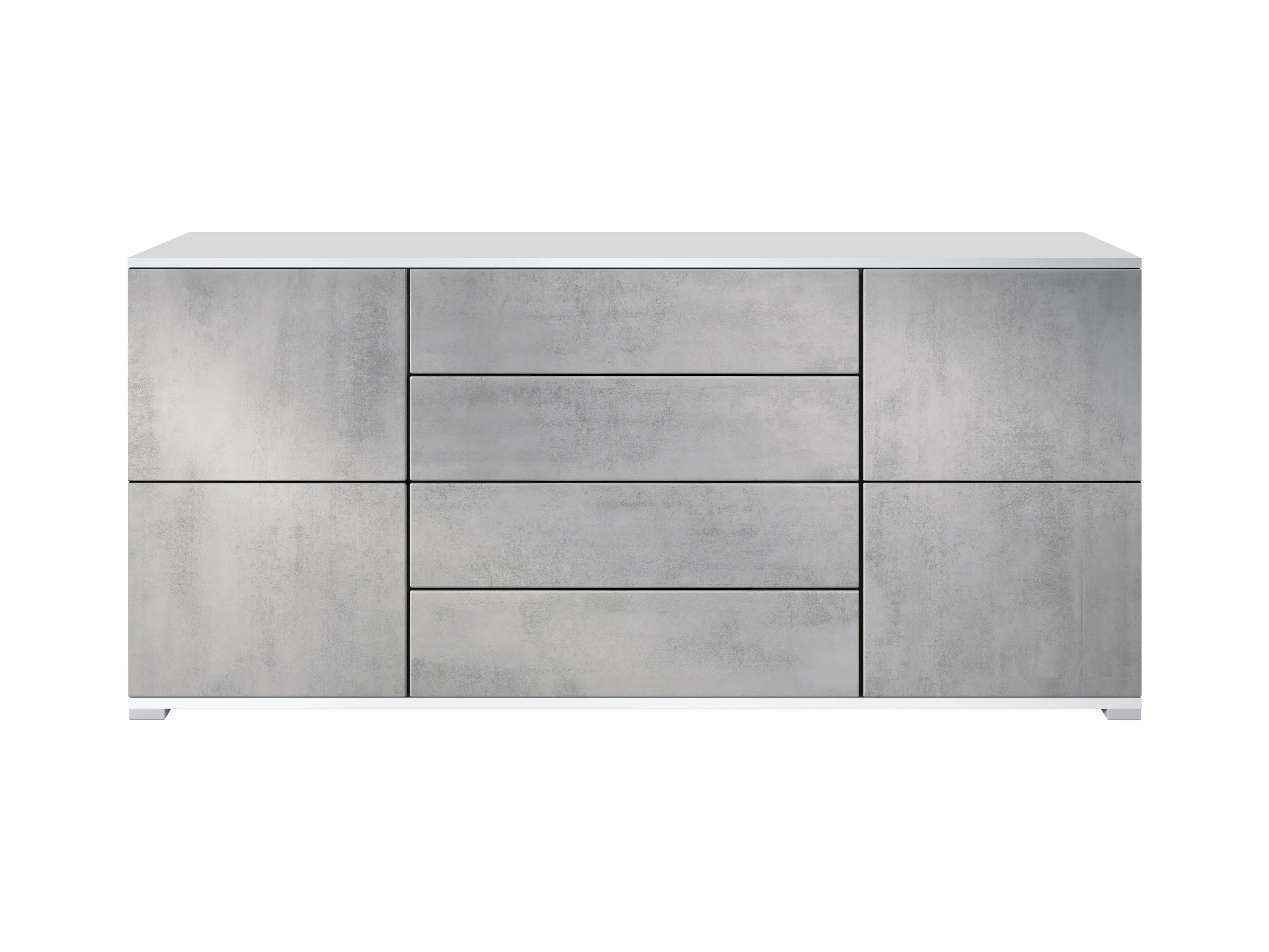 Buffet Rova V2 – Meuble avec 4 Portes et 4 Tiroirs, blanc mat/aspect béton oxyde (166,5 x 75,5 x 35)