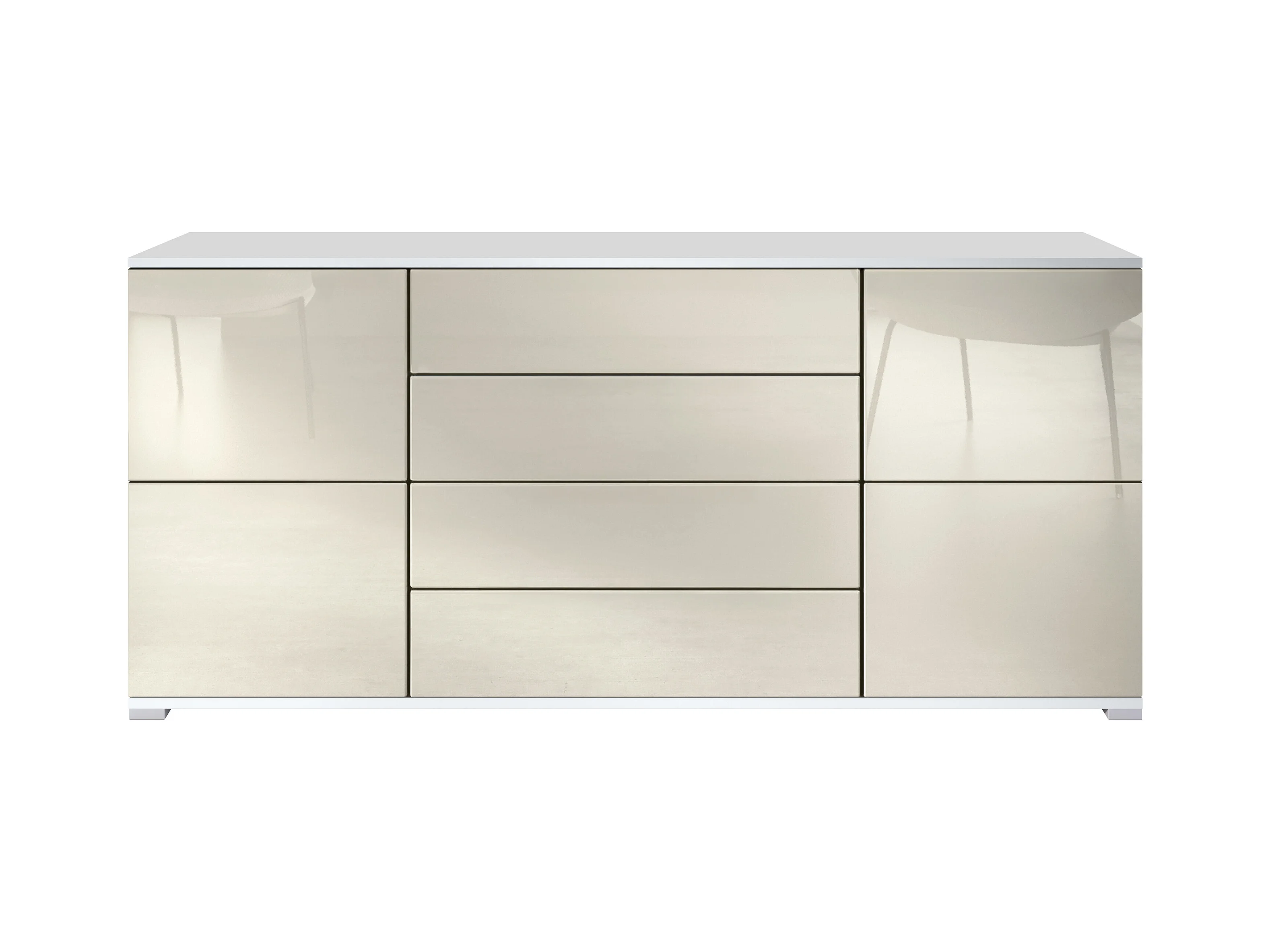 Buffet Rova V2 – Meuble avec 4 Portes et 4 Tiroirs, blanc mat/crème haute brillance (166,5 x 75,5 x 35)