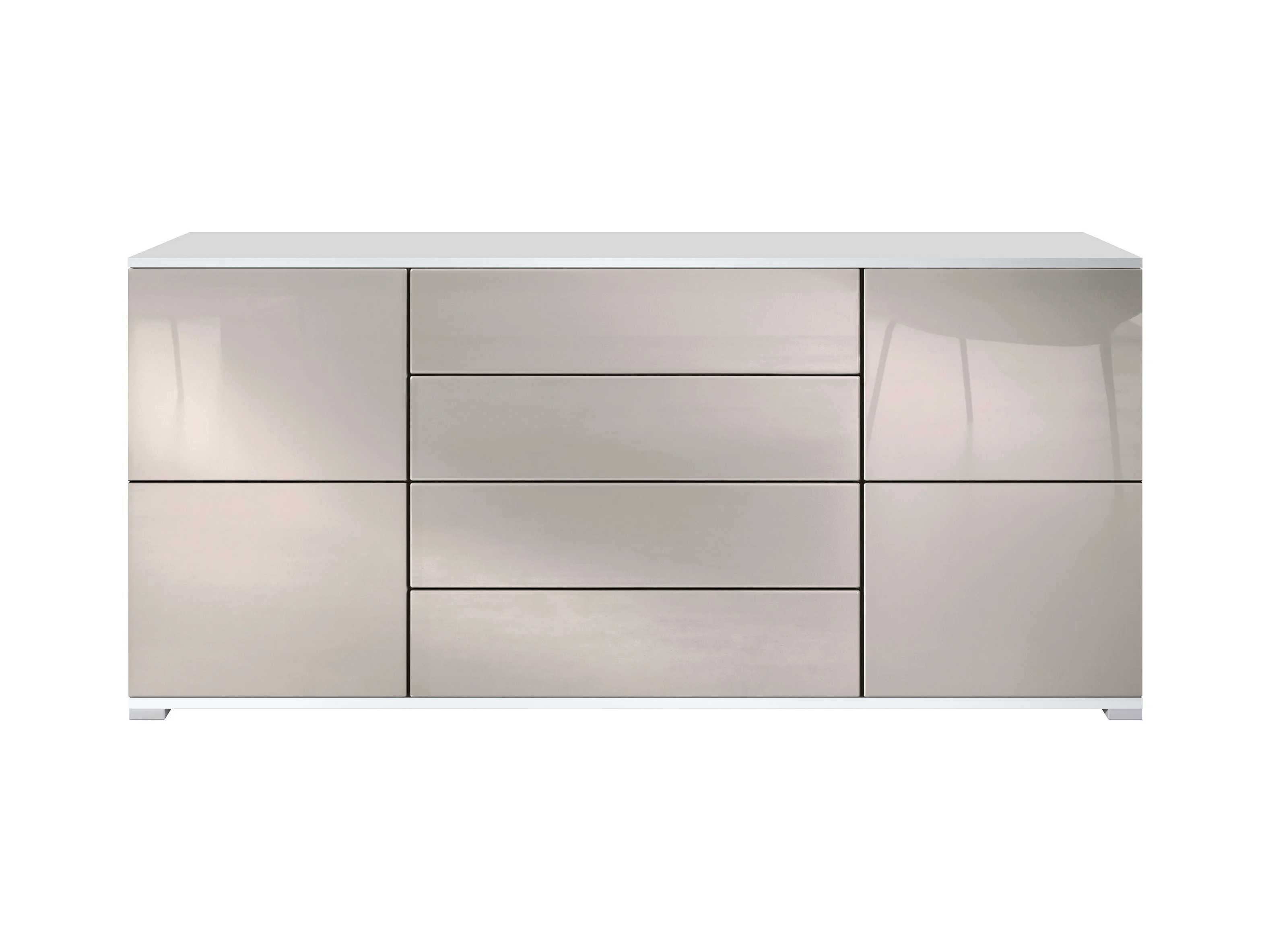 Buffet Rova V2 – Meuble avec 4 Portes et 4 Tiroirs, blanc mat/gris sable haute brillance (166,5 x 75,5 x 35)