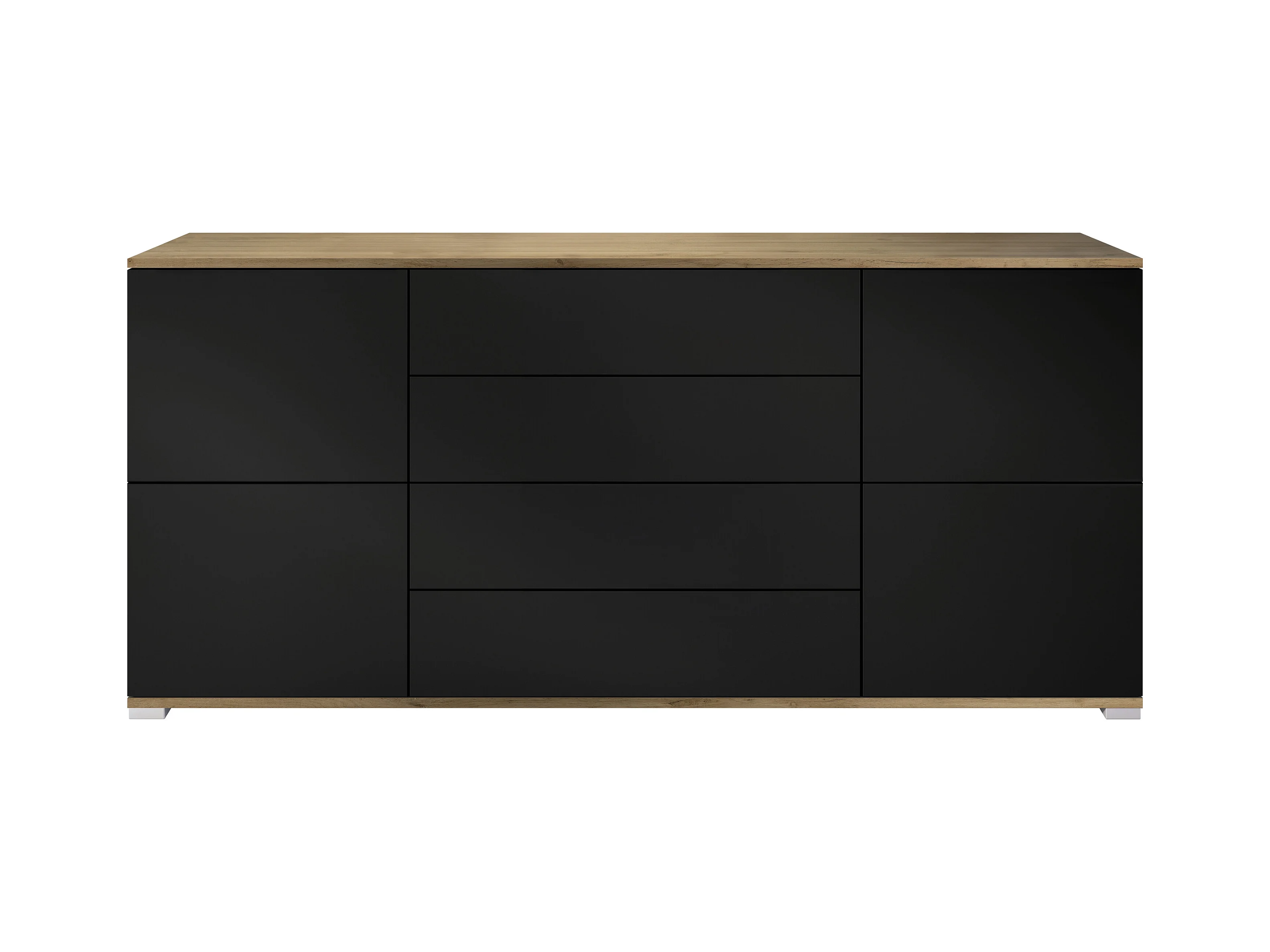 Buffet Rova V2 – Meuble avec 4 Portes et 4 Tiroirs, Chêne Evoke/noir mat (166,5 x 75,5 x 35)