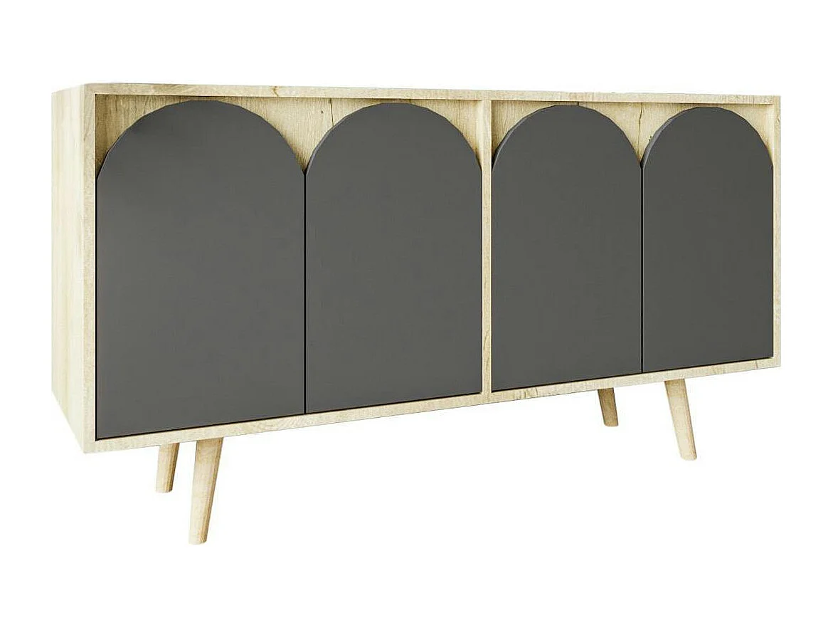 Buffet salle à manger effet bois 4 portes courbes grises VAREN