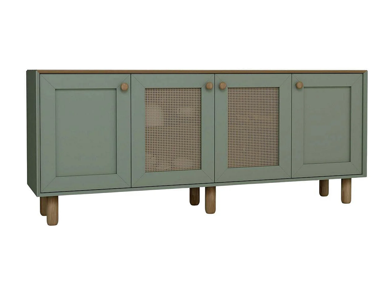 Buffet salle à manger vert sauge, cannage et effet bois VAREN