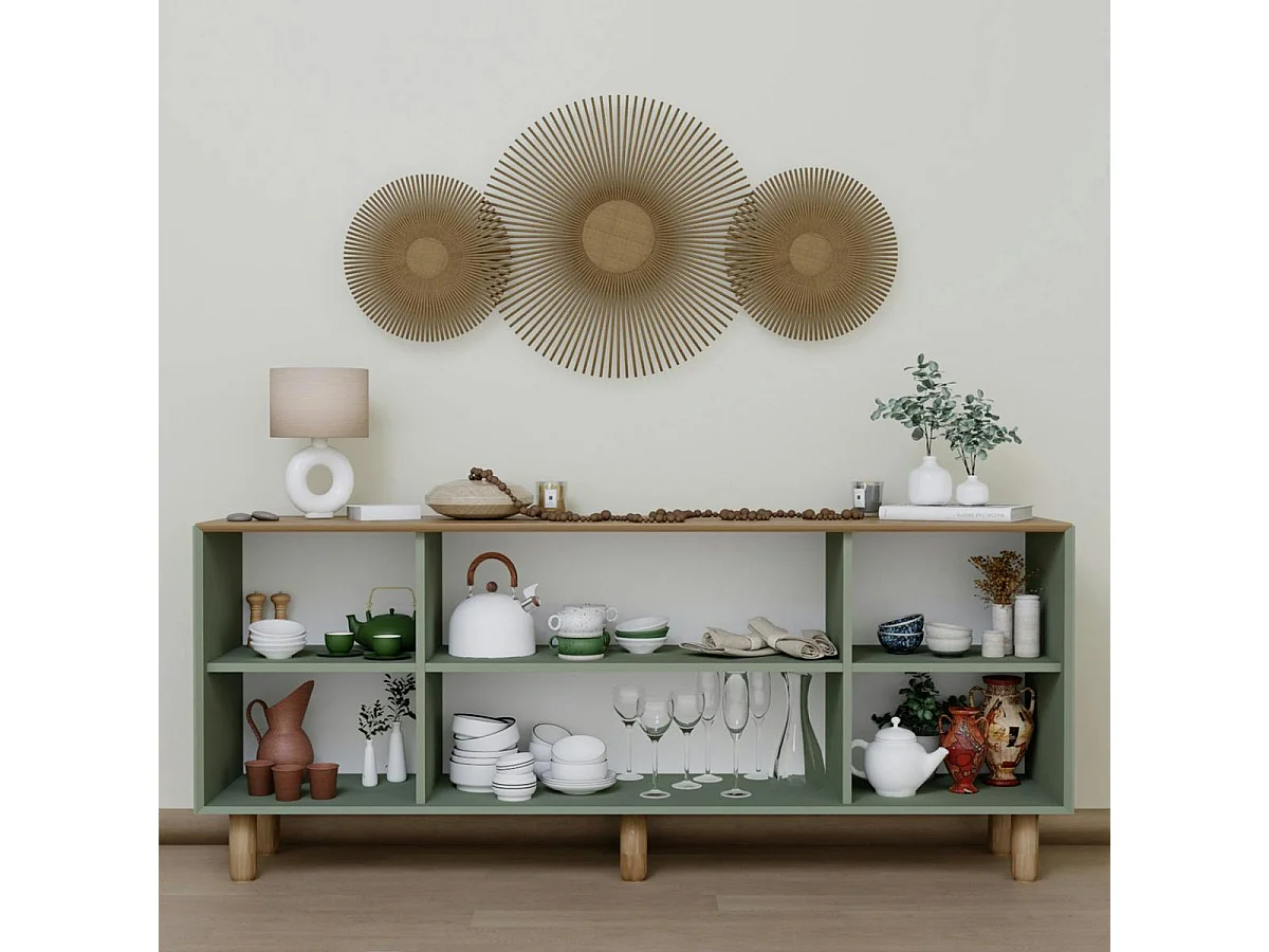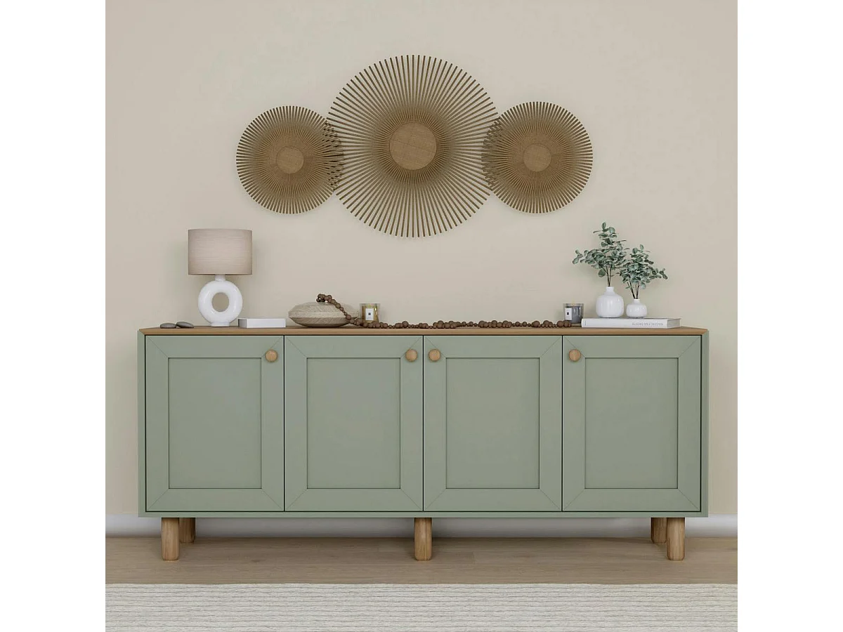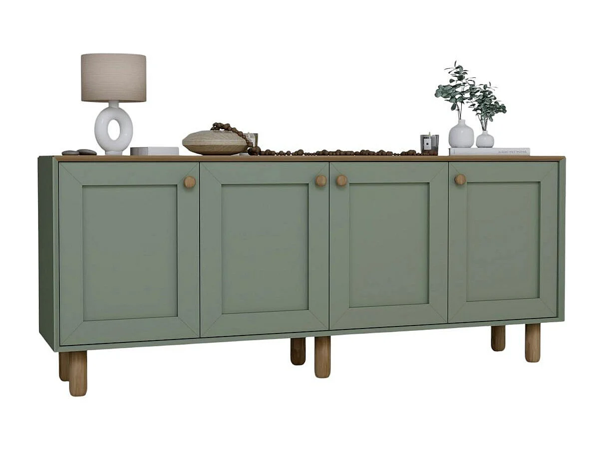 Buffet salle à manger vert sauge, plateau effet bois VAREN